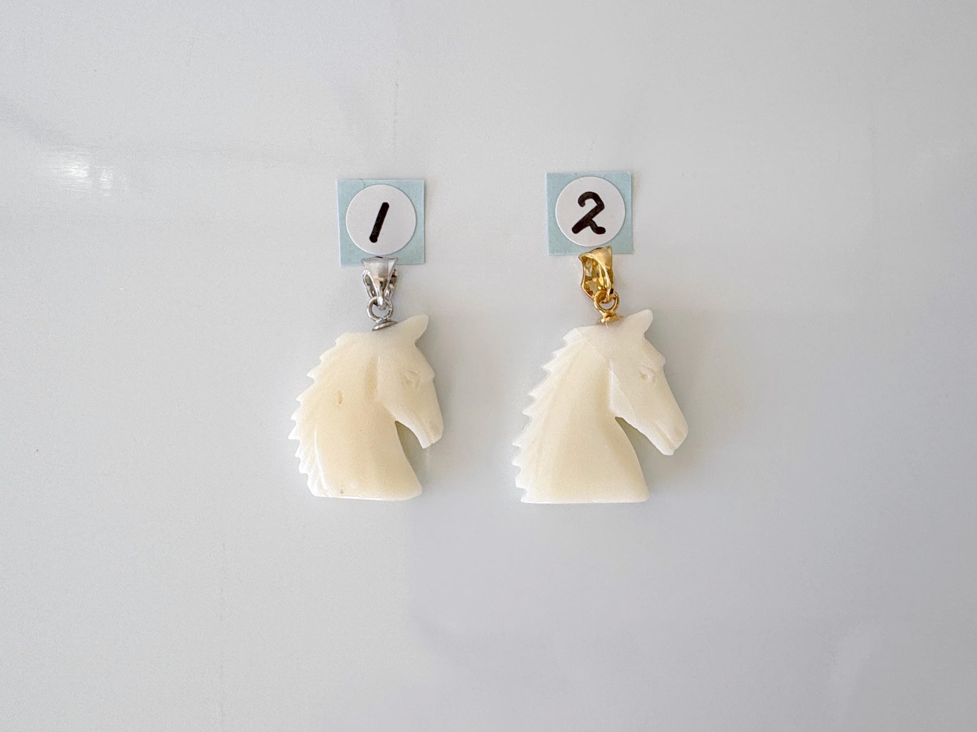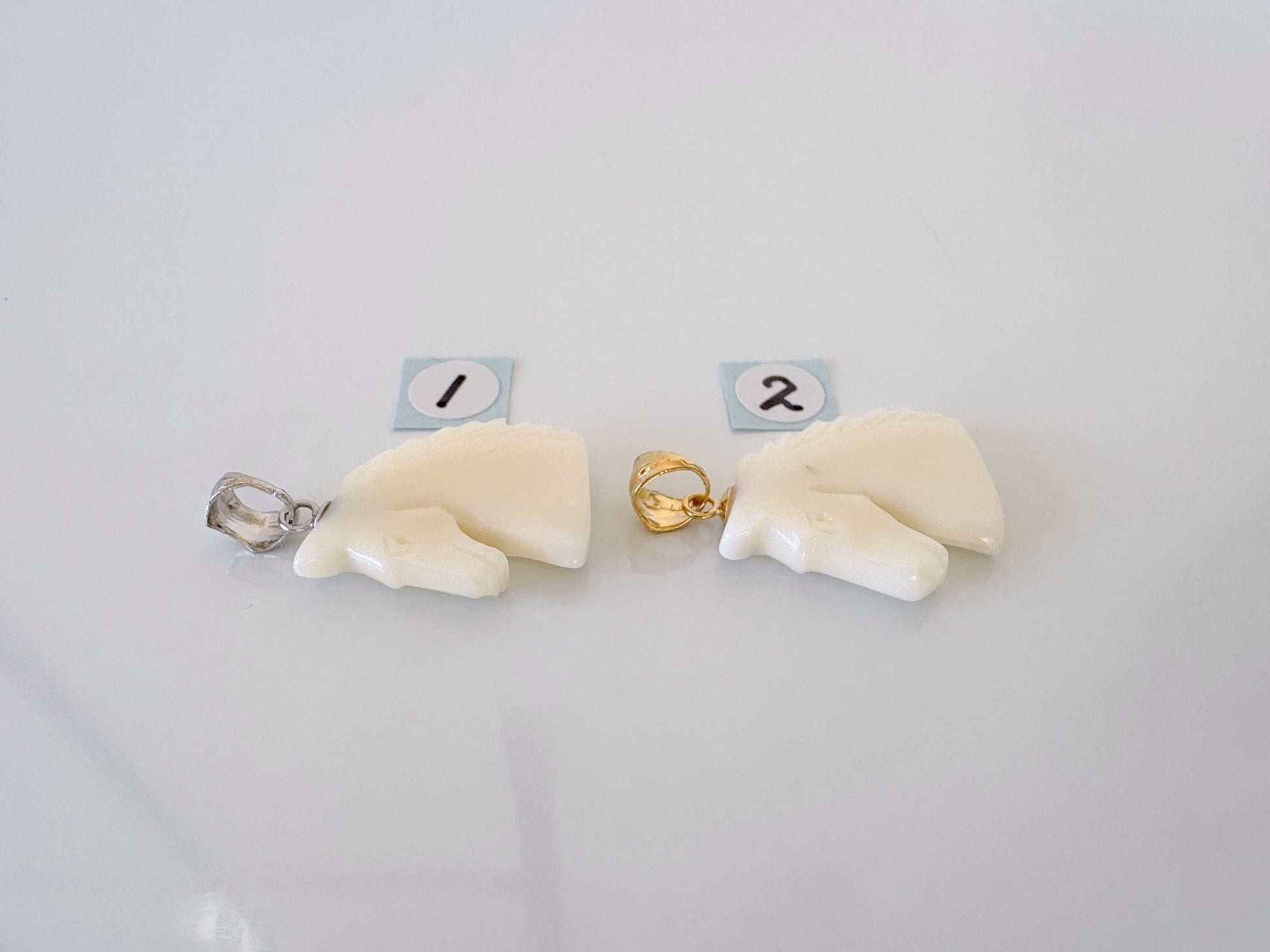 Natural White Coral Horse Carving Pendant, Carved on both sides, Silver bail, Price per Piece