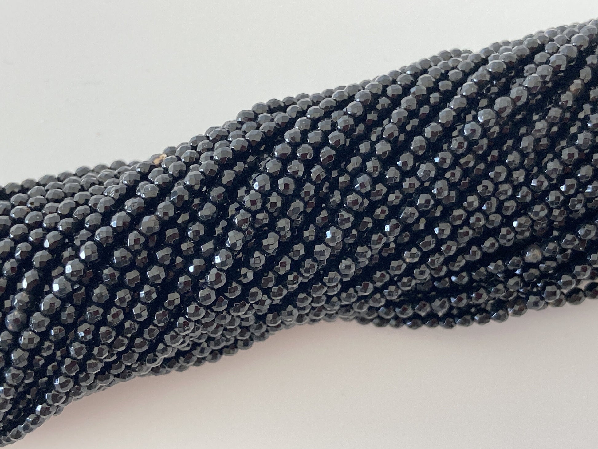 Onyx beads, Black Agate, Onyx 2mm faceted beads strands, fine quality, 15.5inches, 39cm, Price per strand
