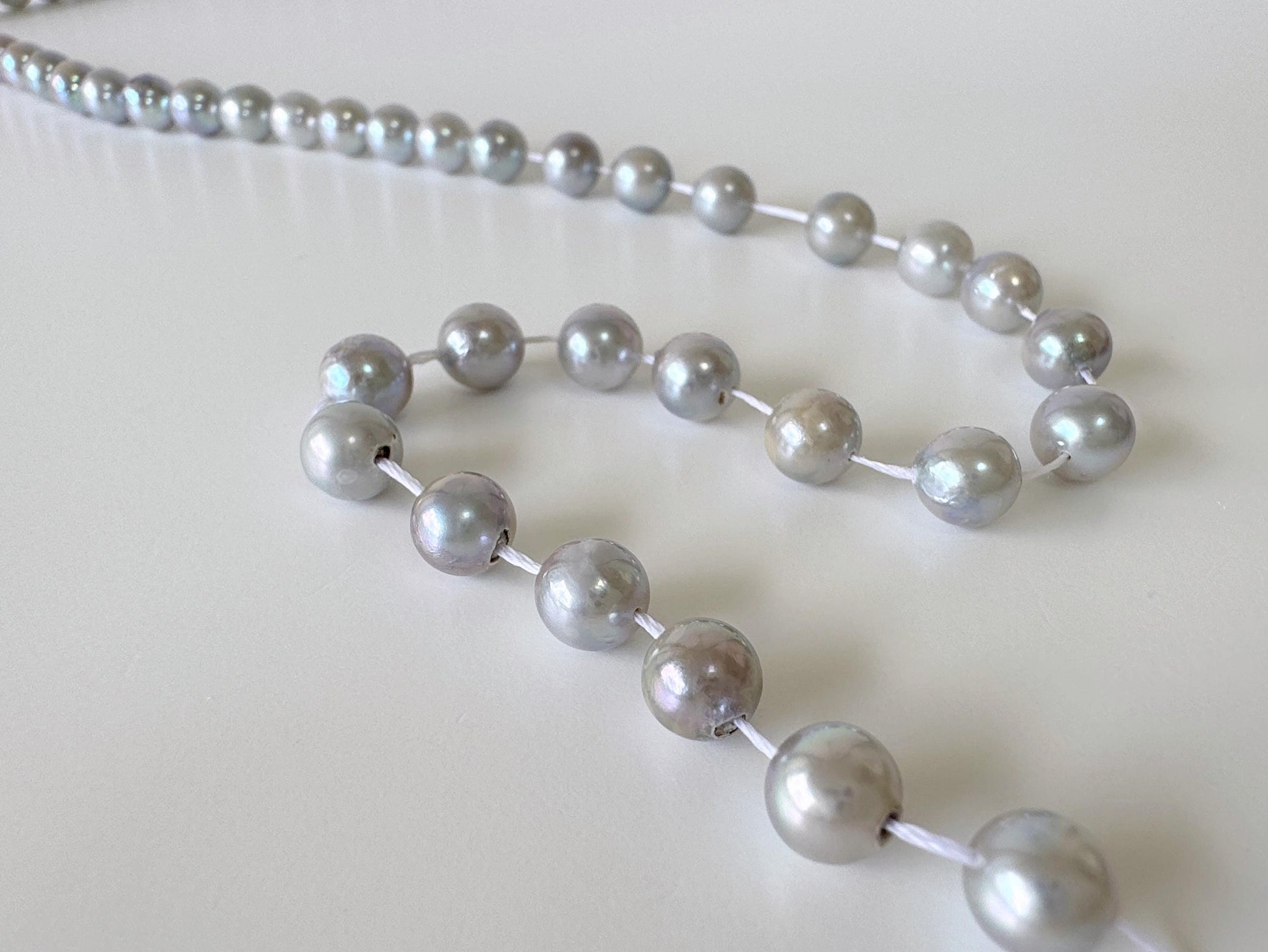 6.5-7mm Cobalt Treated Akoya Pearl Strand: Blue Silver Japanese Saltwater Beads