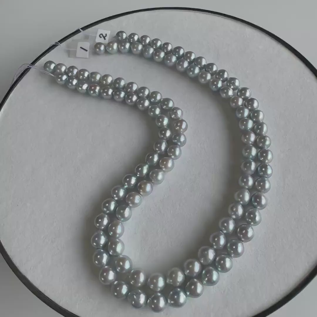 7.5-8mm Japanese Akoya Pearl Beads, Natural Blue/Silver color pearl, Genuine Akoya Pearl, Full Strand 40cm , 15.7", Salt water pearl