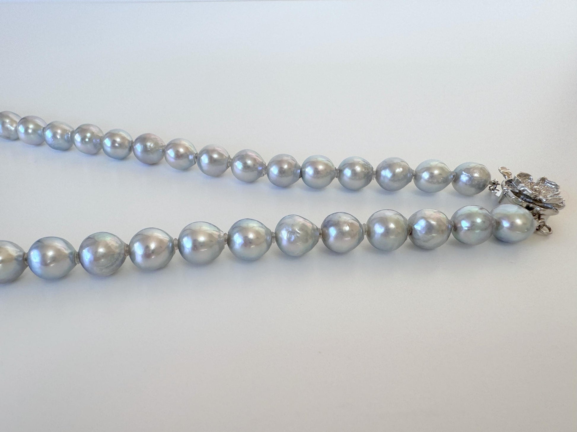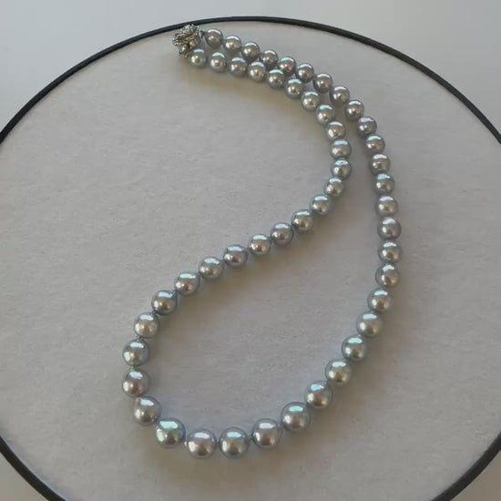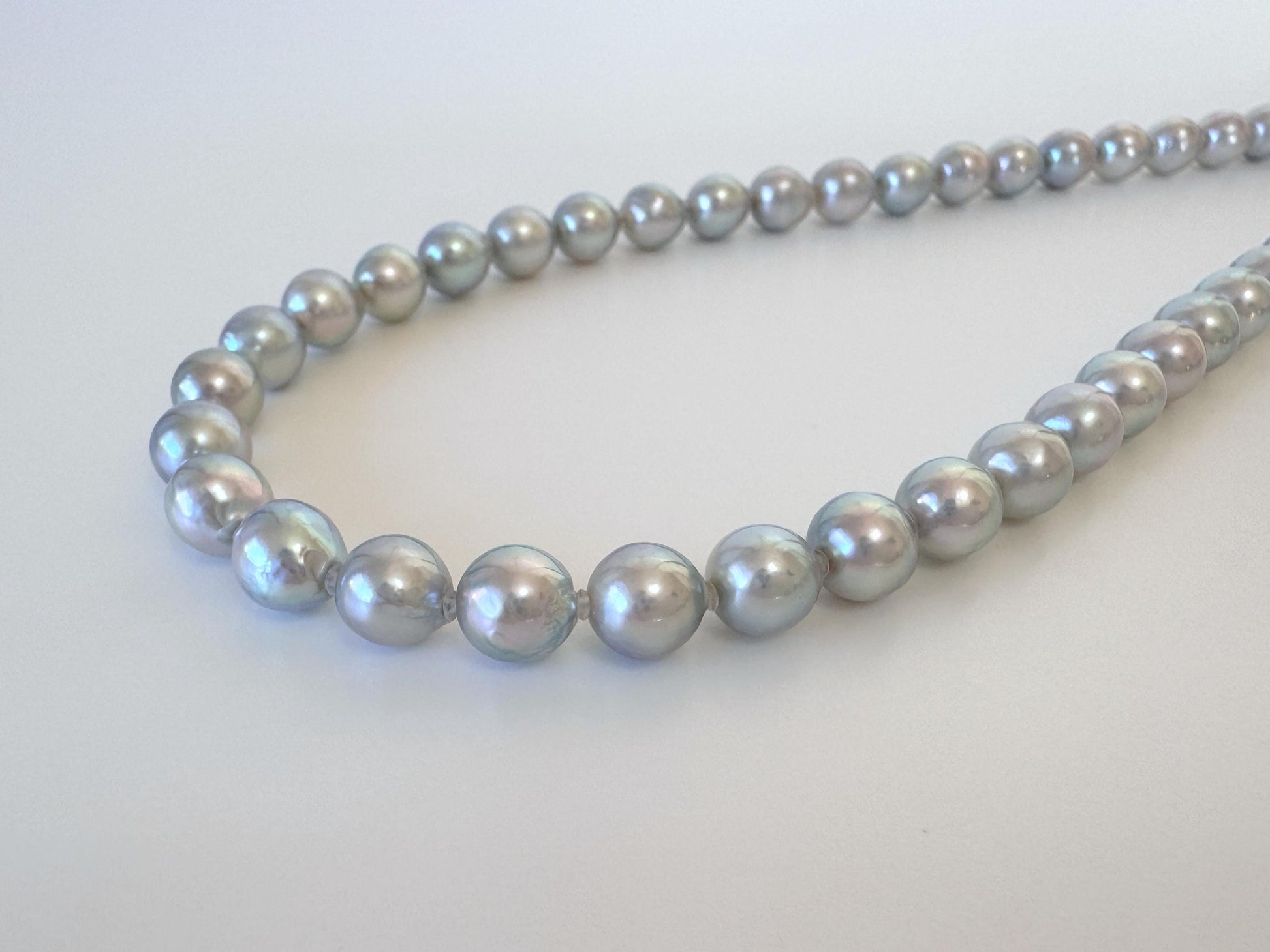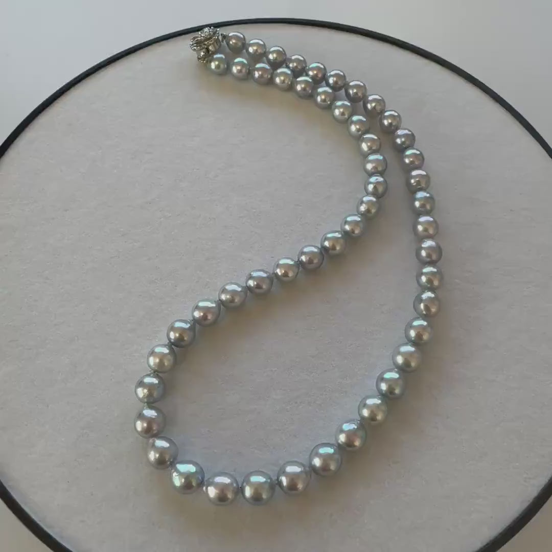 Akoya Pearl Necklace - 7.3-8mm Natural Blue Silver Cultured Saltwater Pearls with Silver Clasp