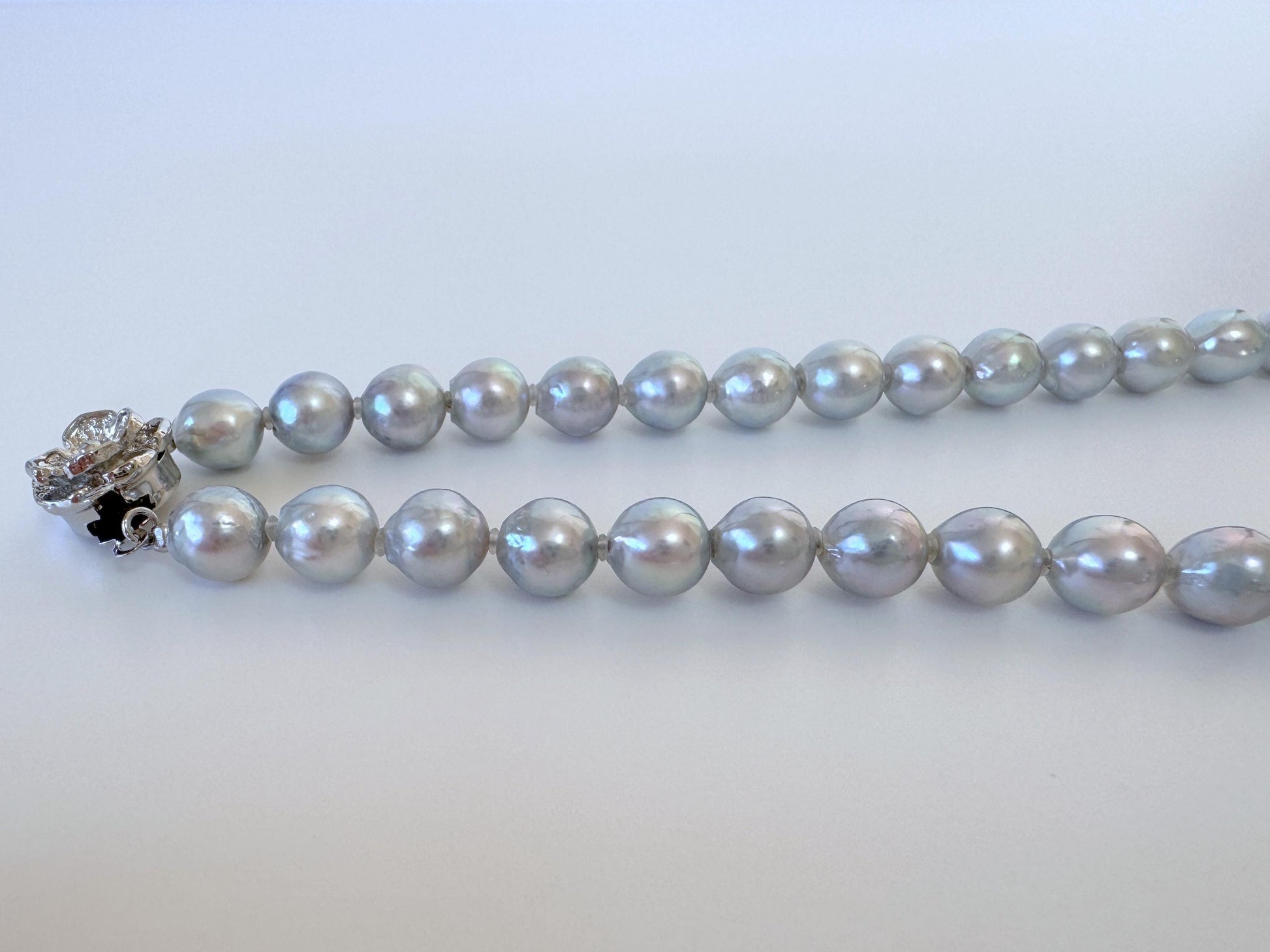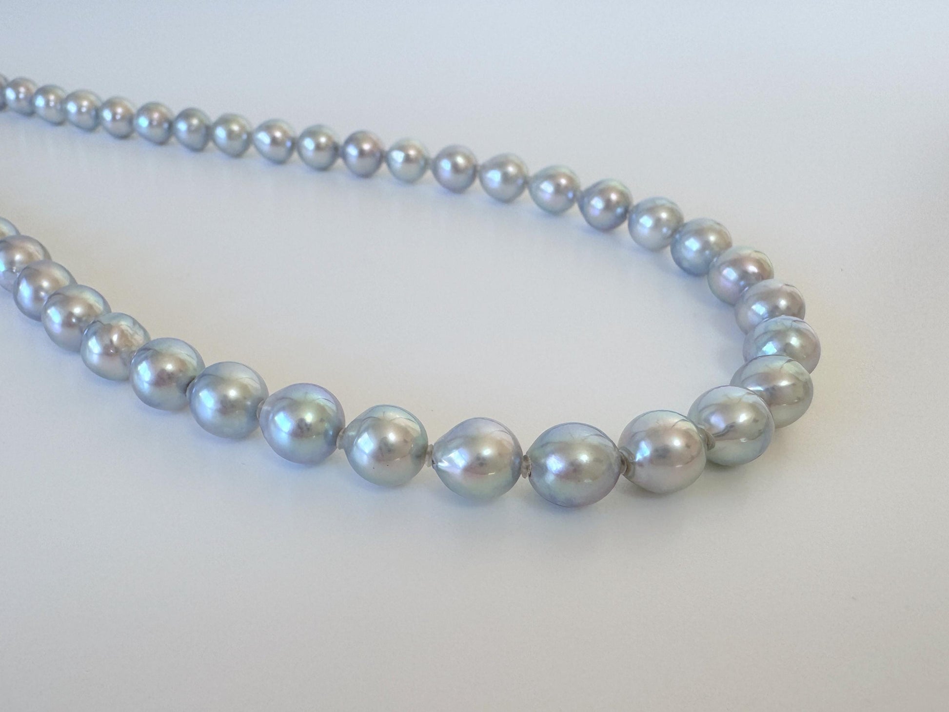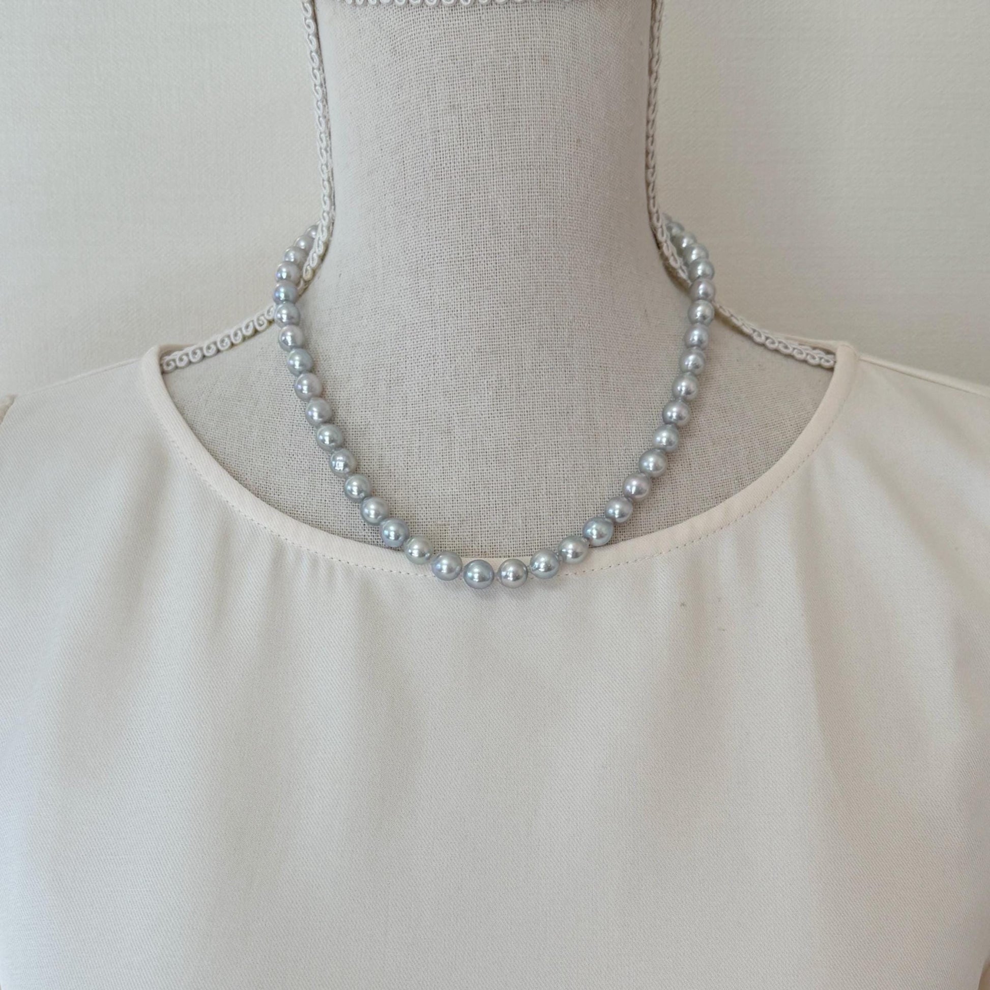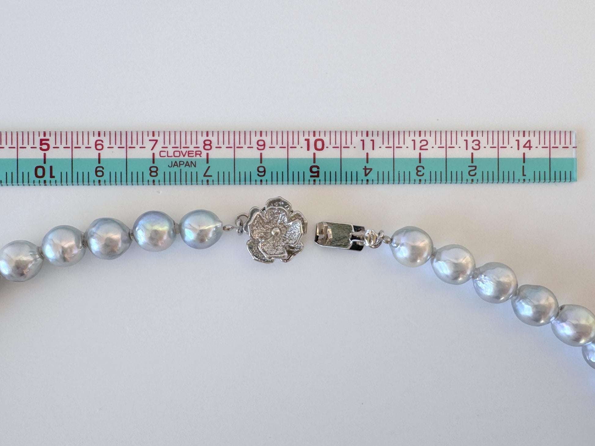 Akoya Pearl Necklace - 7.3-8mm Natural Blue Silver Cultured Saltwater Pearls with Silver Clasp