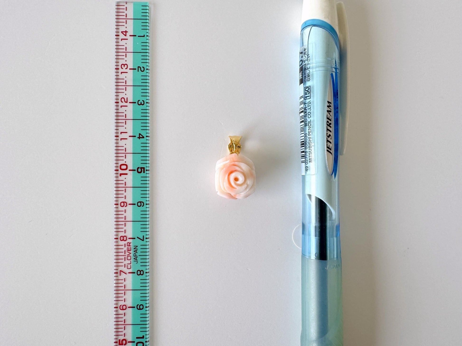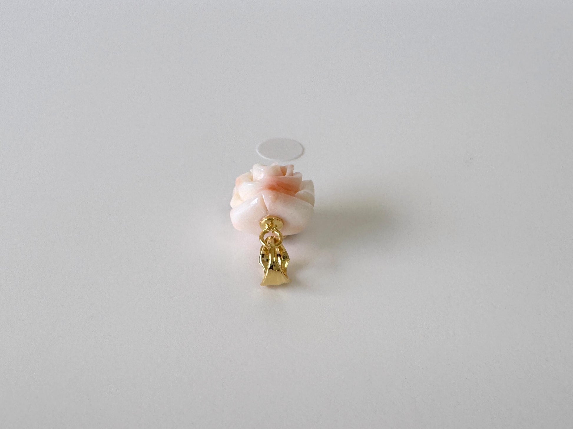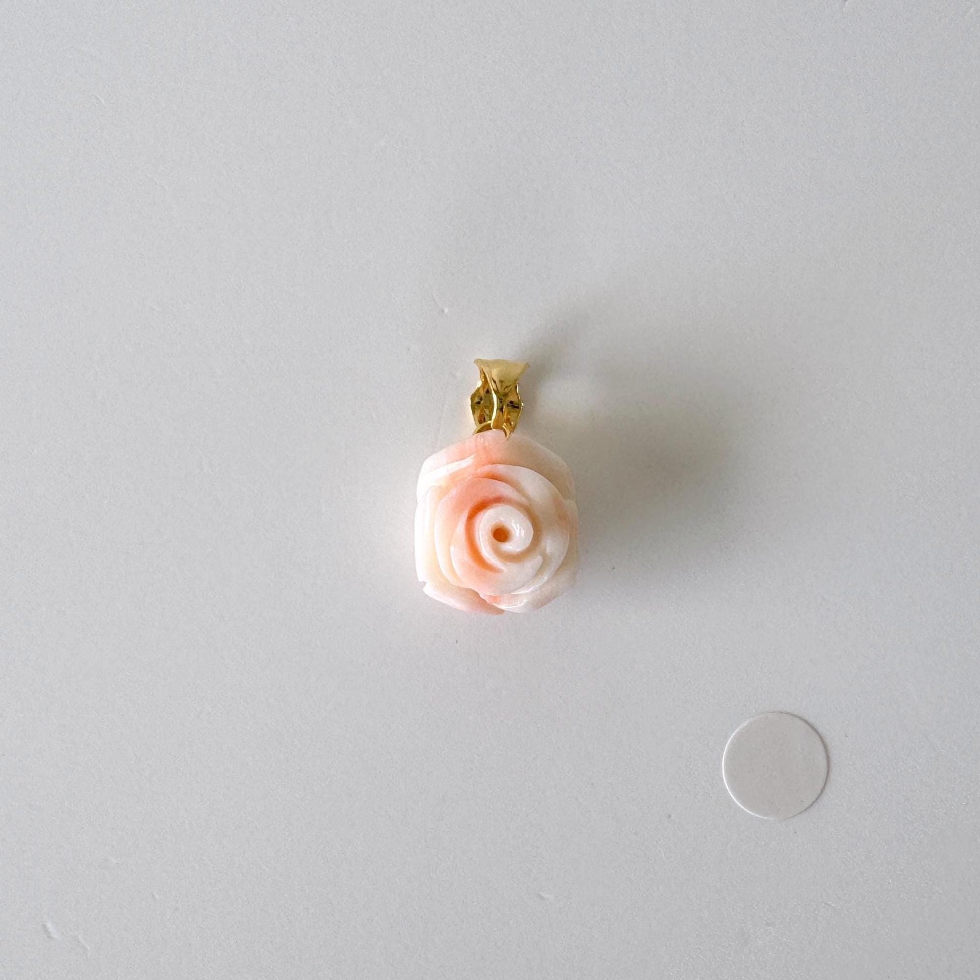 Deep Sea Coral Rose carved Pendant, 13.5x11.4mm, Natural Pink/White Color Coral, Silver (gold plated) bail, Genuine Coral Pendant