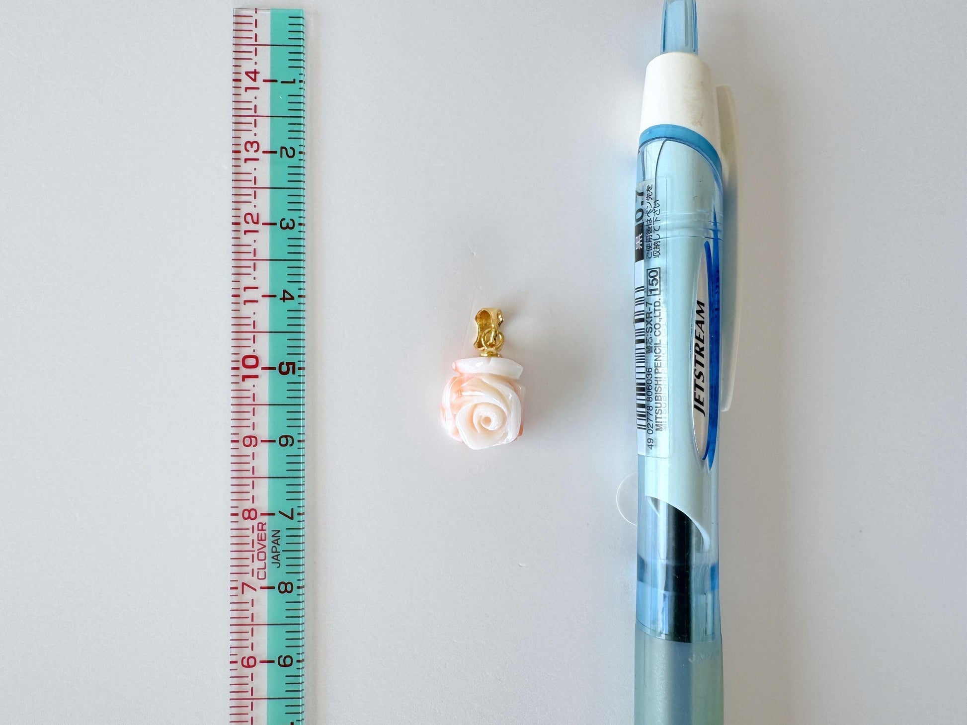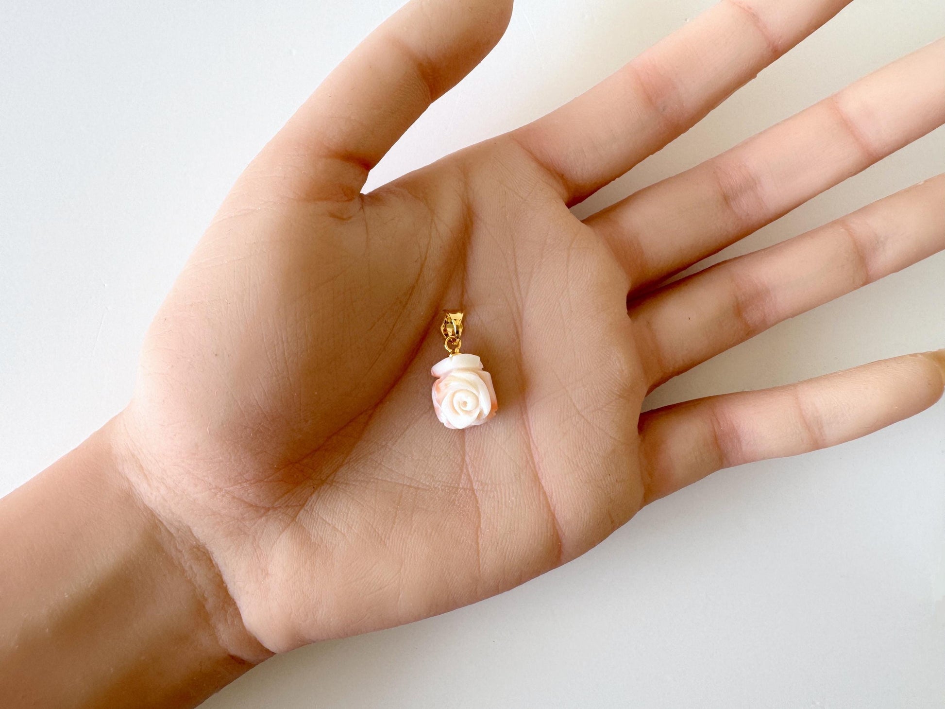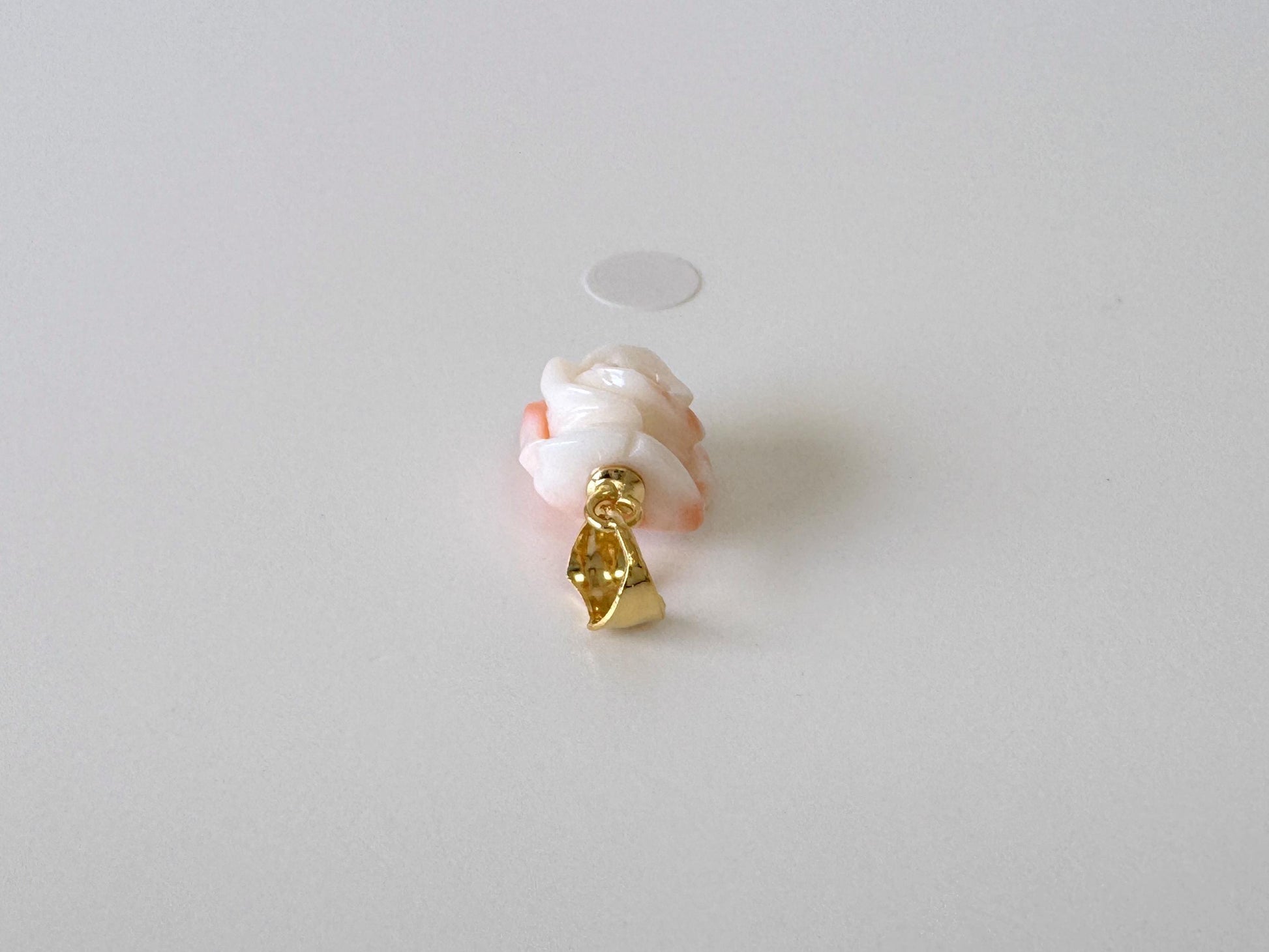 Deep Sea Coral Rose carved Pendant, 13.8x11.3mm, Natural Pink/White Color Coral, Silver (gold plated) bail, Genuine Coral Pendant