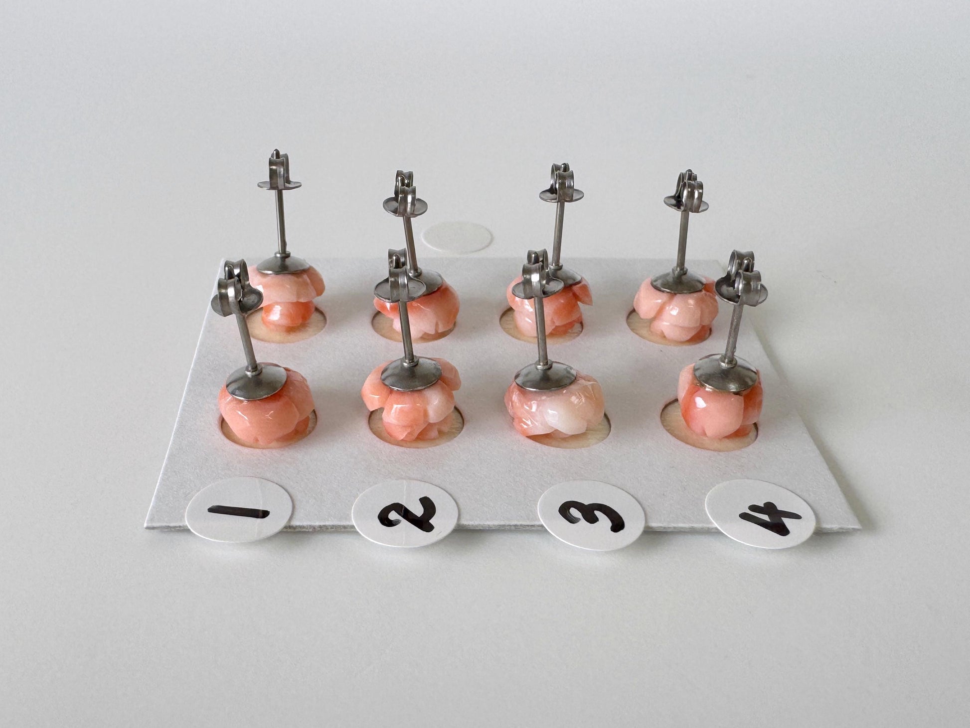 Natural Coral Rose Stud Earrings, Coral studs, Genuine Pink/Orange Color Coral, Titanium, Hand-Carved, Coral Accessory