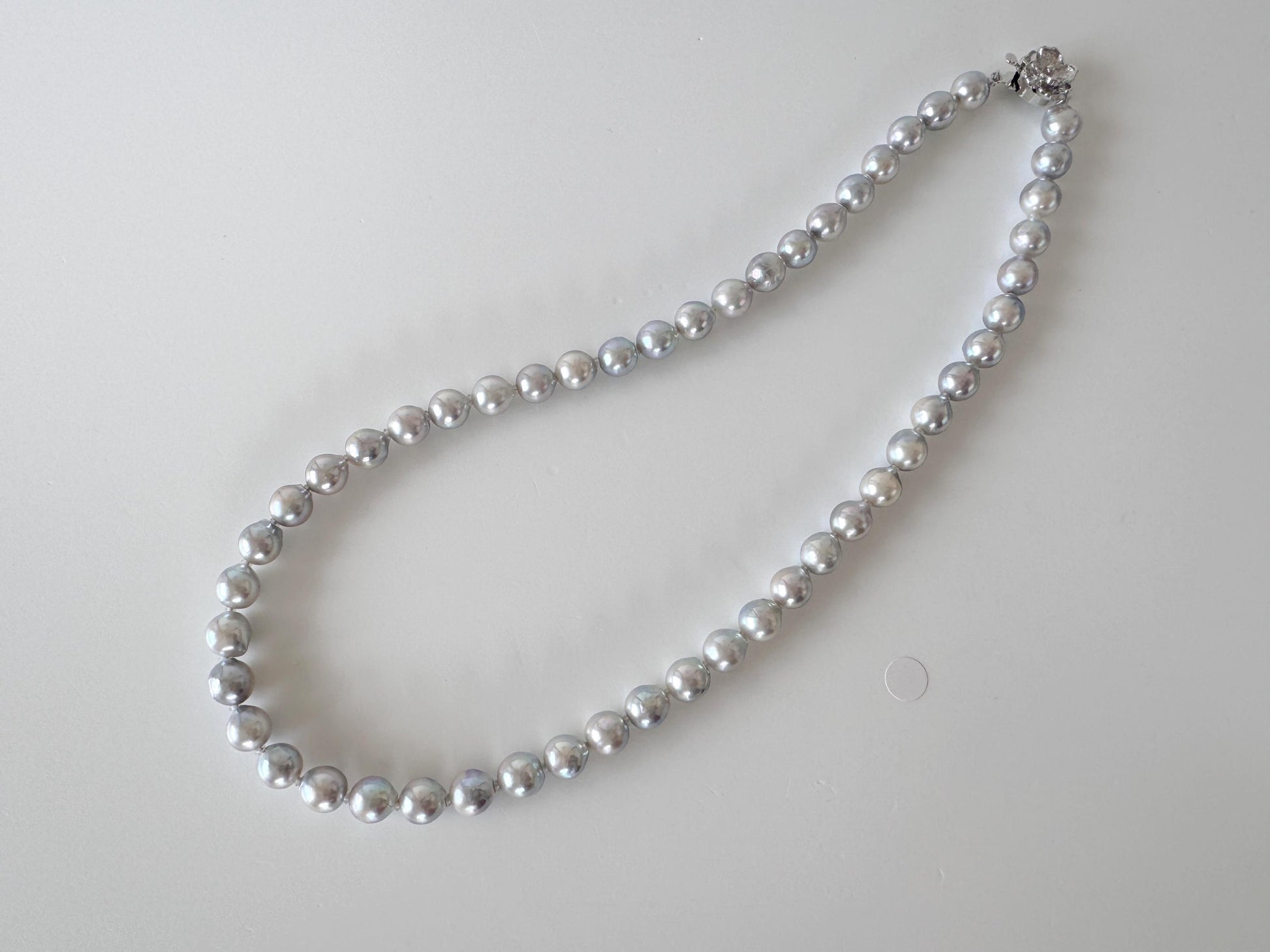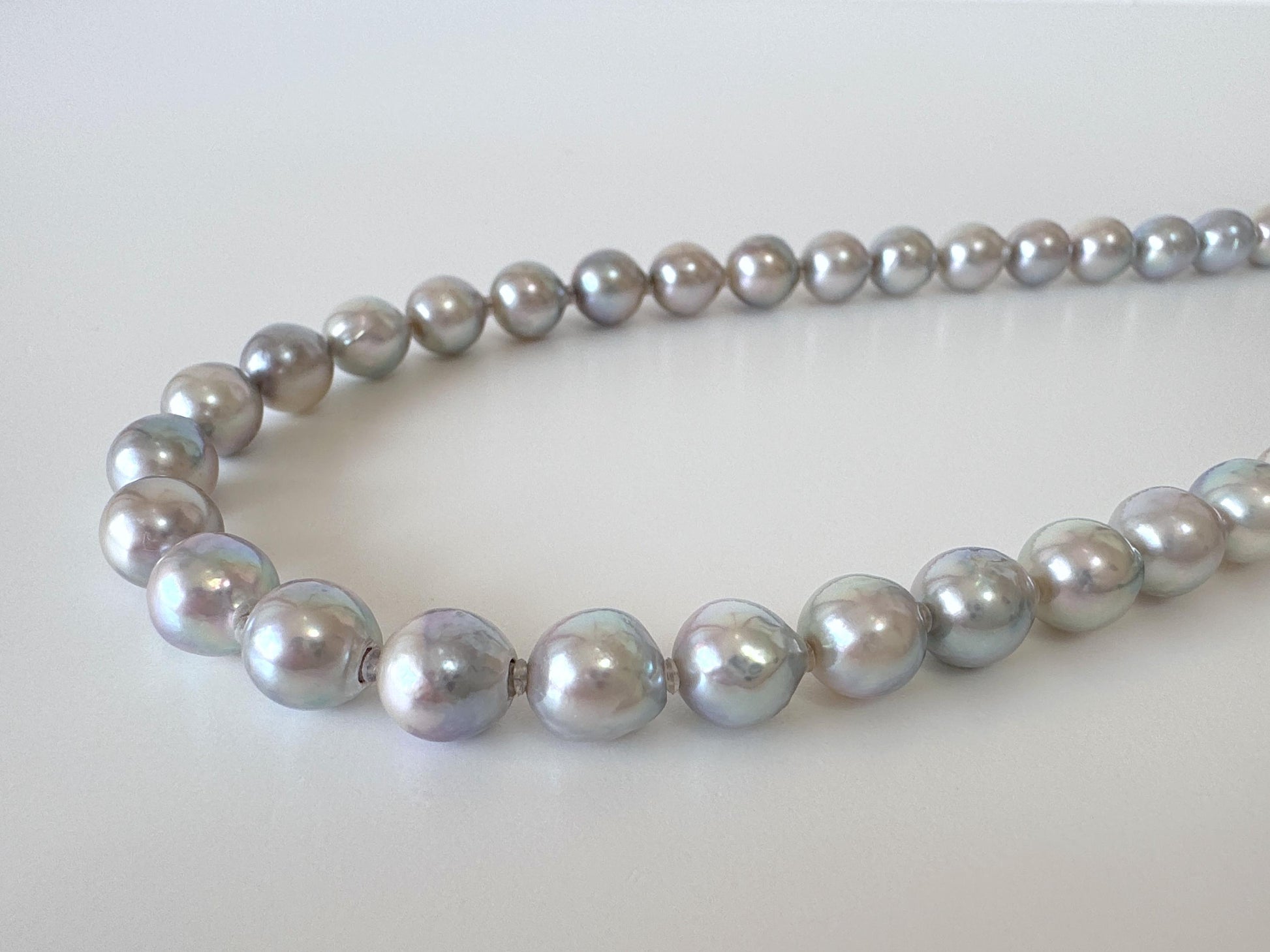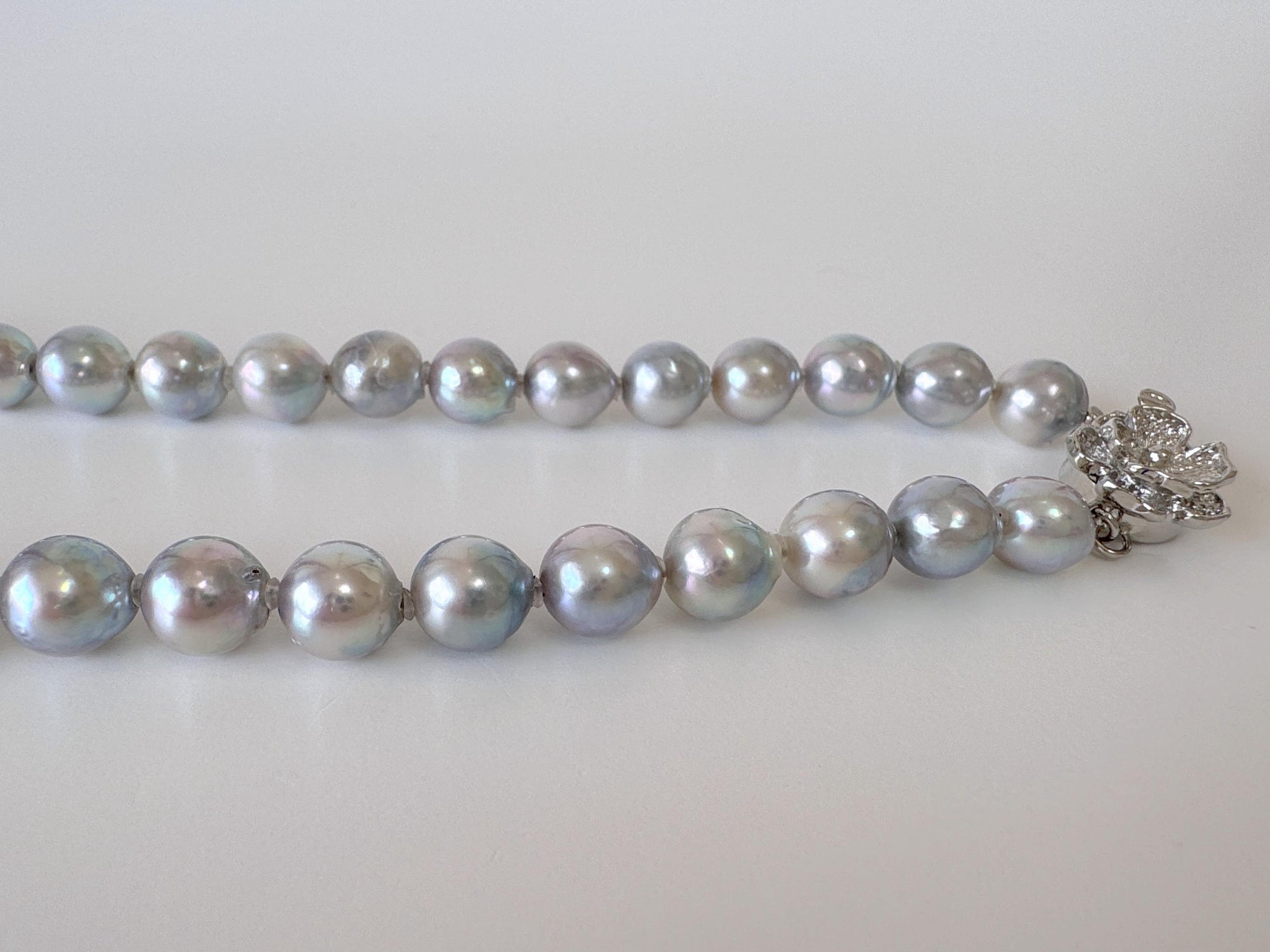 Japanese Akoya Pearl : Natural Blue Silver Color - Cultured Saltwater Pearls, 7.5-8mm Beads, Silver Clasp Necklace