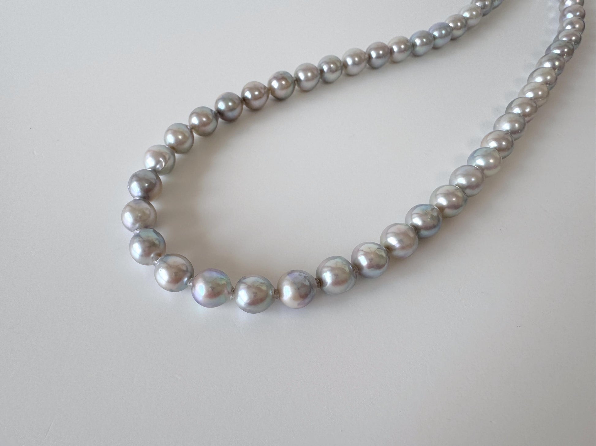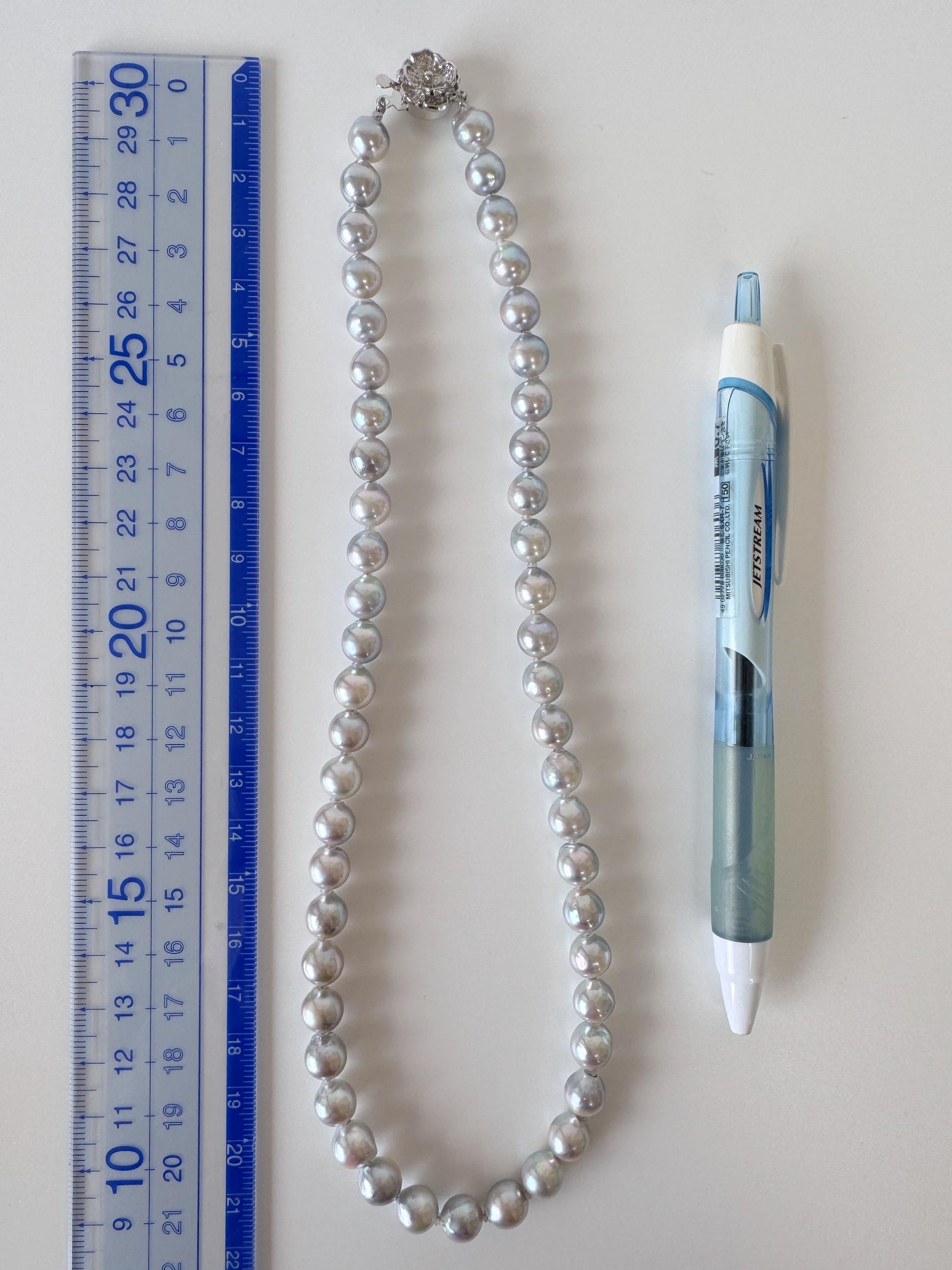Necklace, 7.3-8mm Japanese Natural Blue/Silver Akoya Pearl Necklace with Silver Clasp, Genuine Akoya Pearl, 45cm, 17.7in, Cultured Salt water pearl