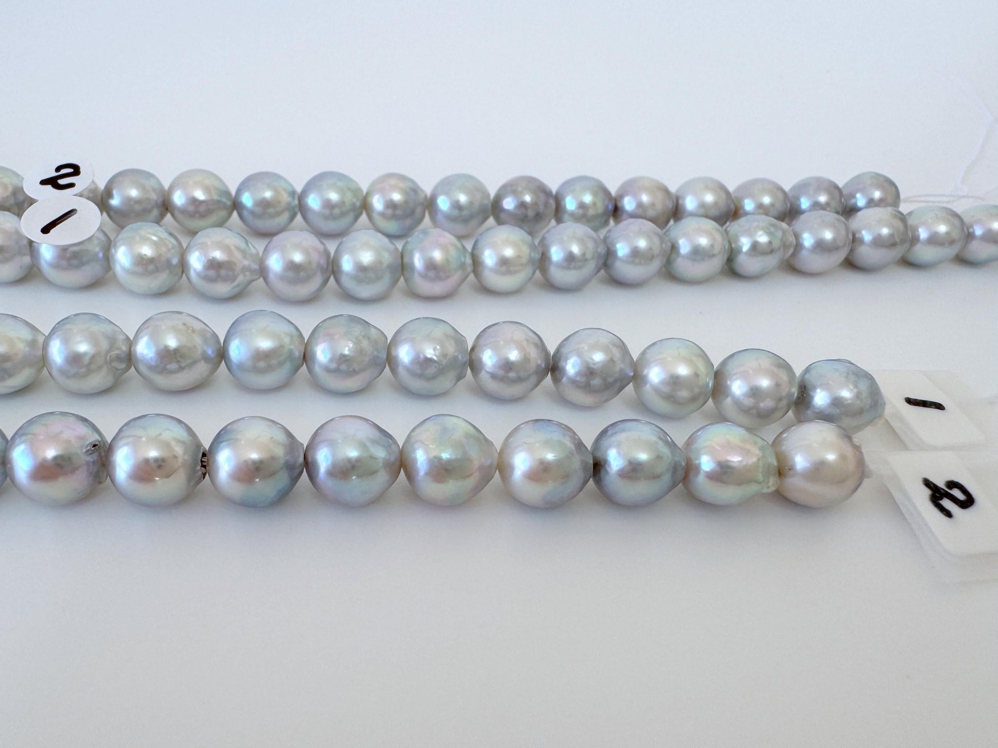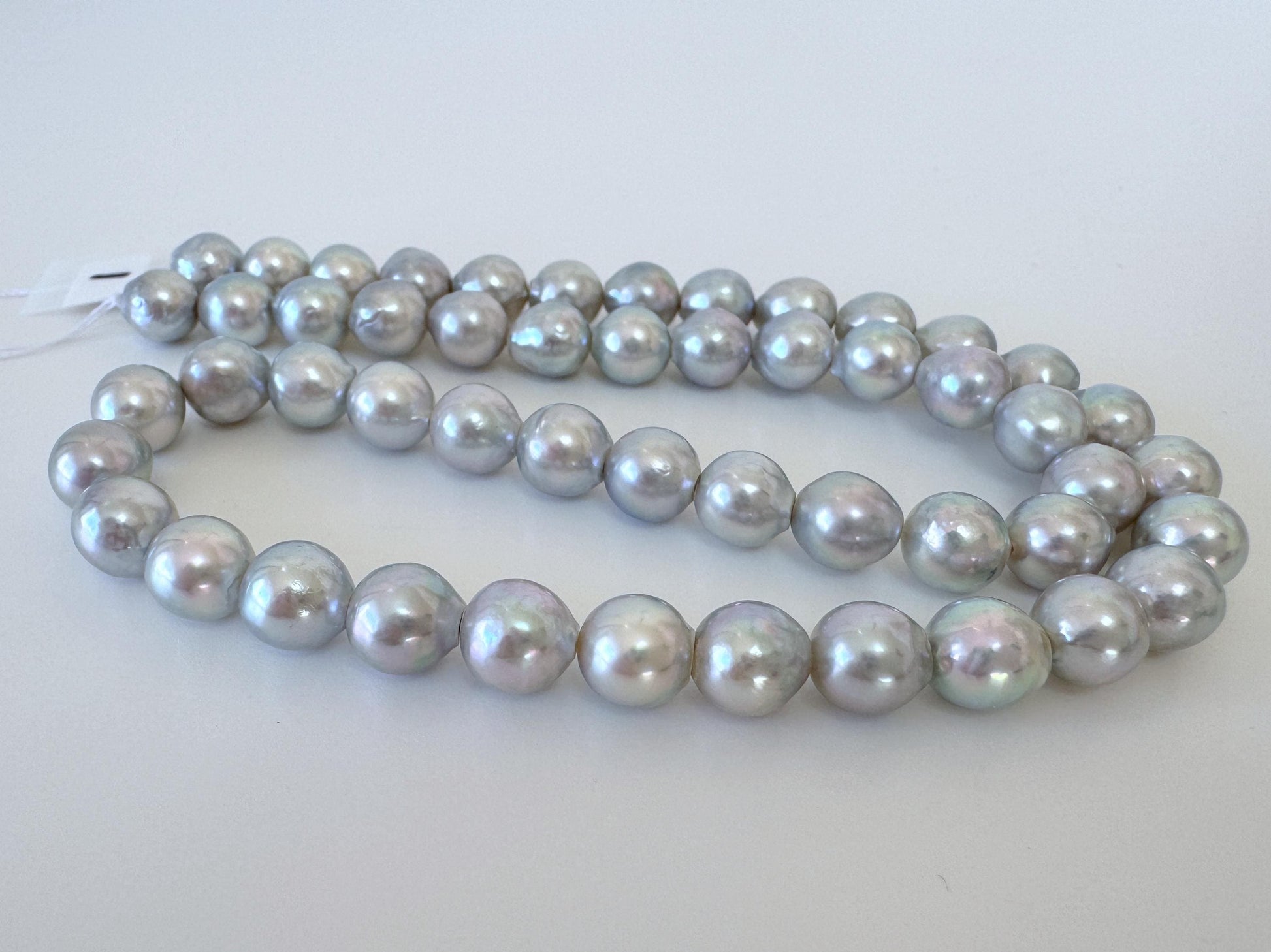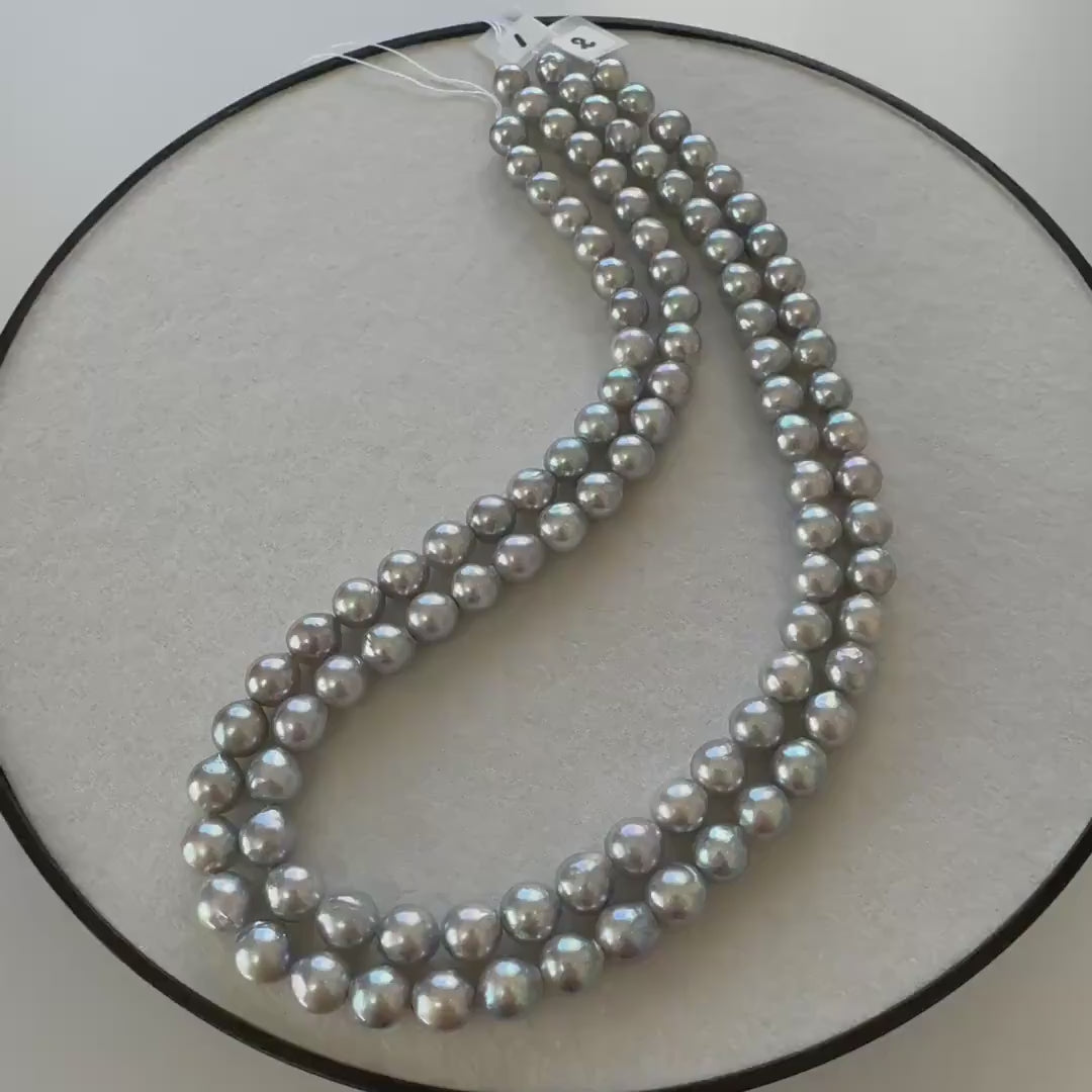 This full strand of cultured pearls showcases the captivating blue silver hue that makes Akoya pearls a favorite for fine jewelry.