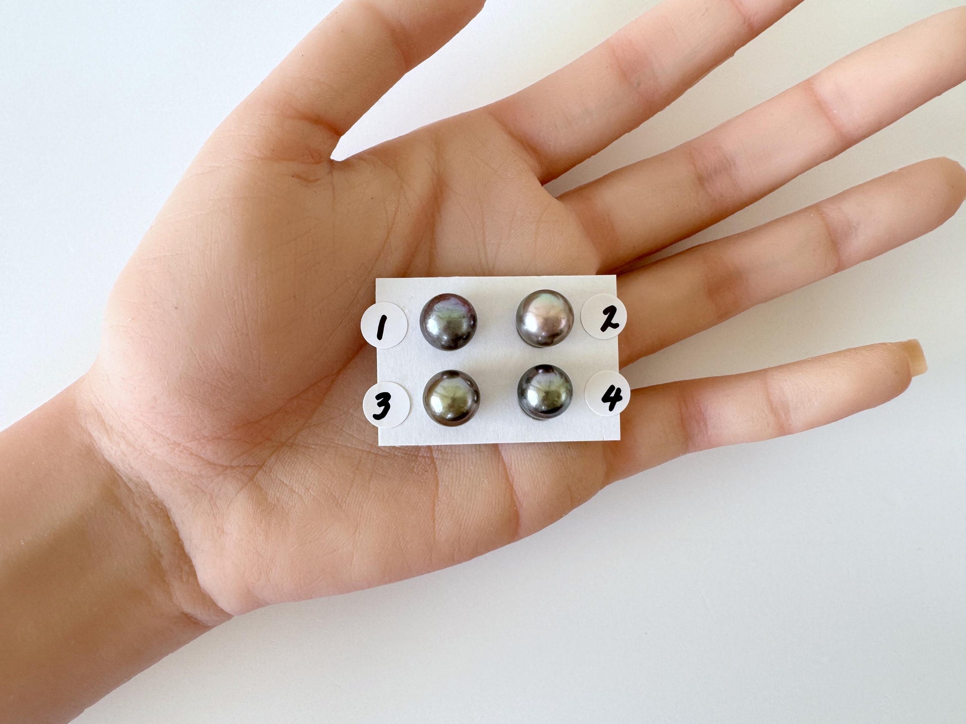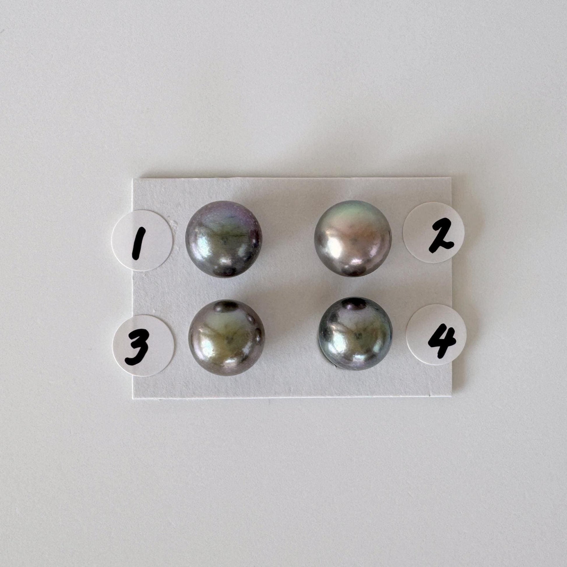 Japanese Black/Peacock Black Akoya Pearl 9.3-9.7mm, Half-Drilled Round loose, Price per Piece, Salt water pearl