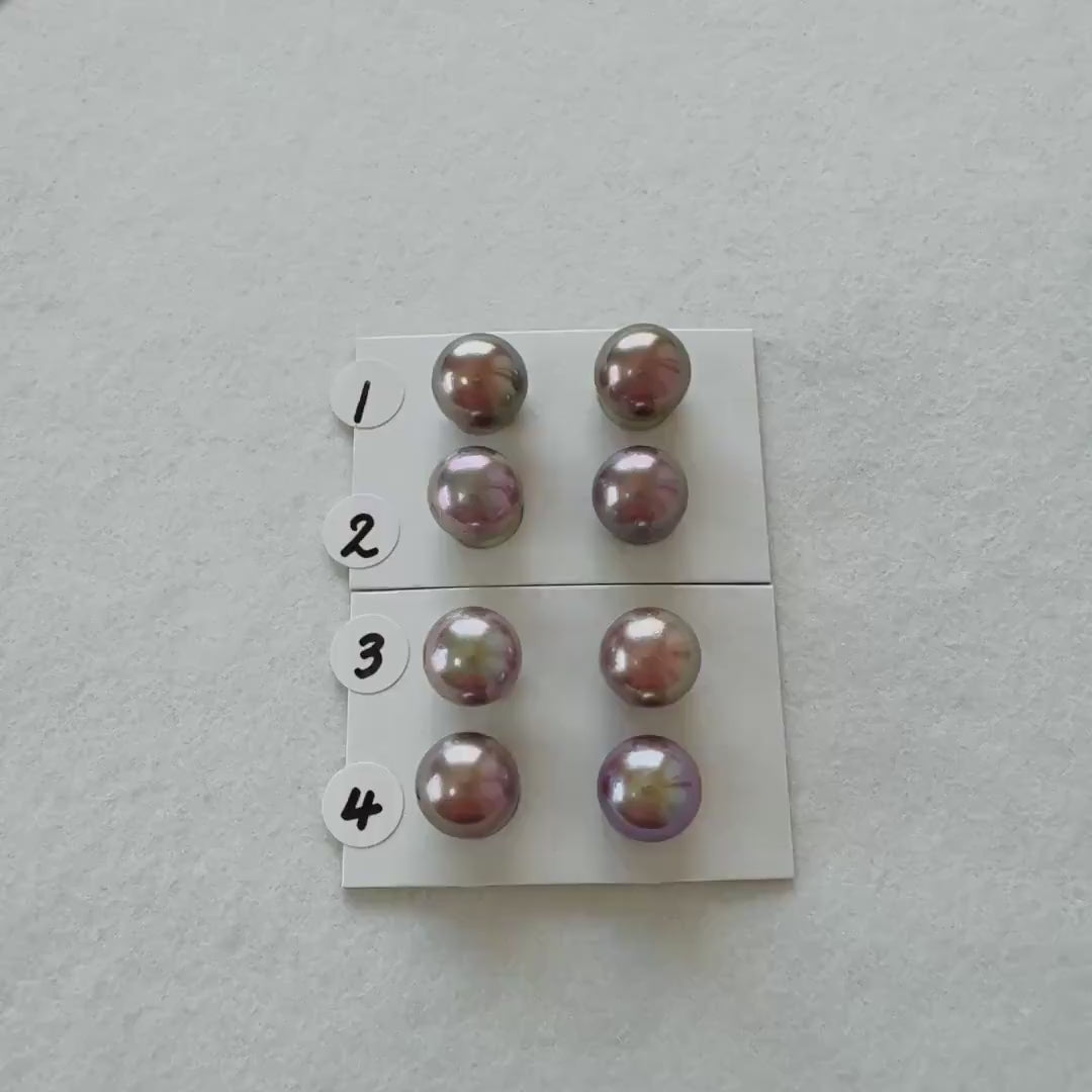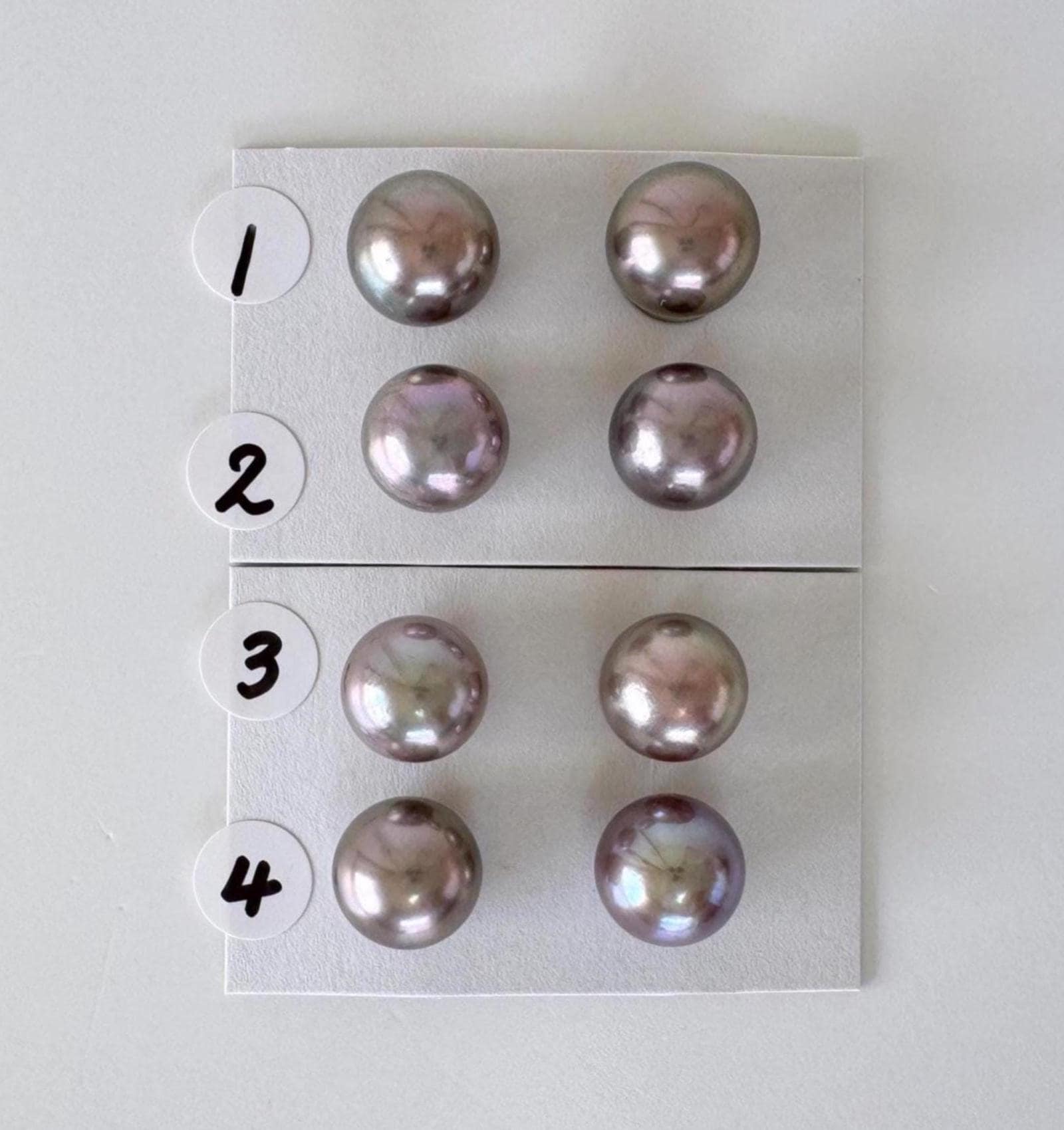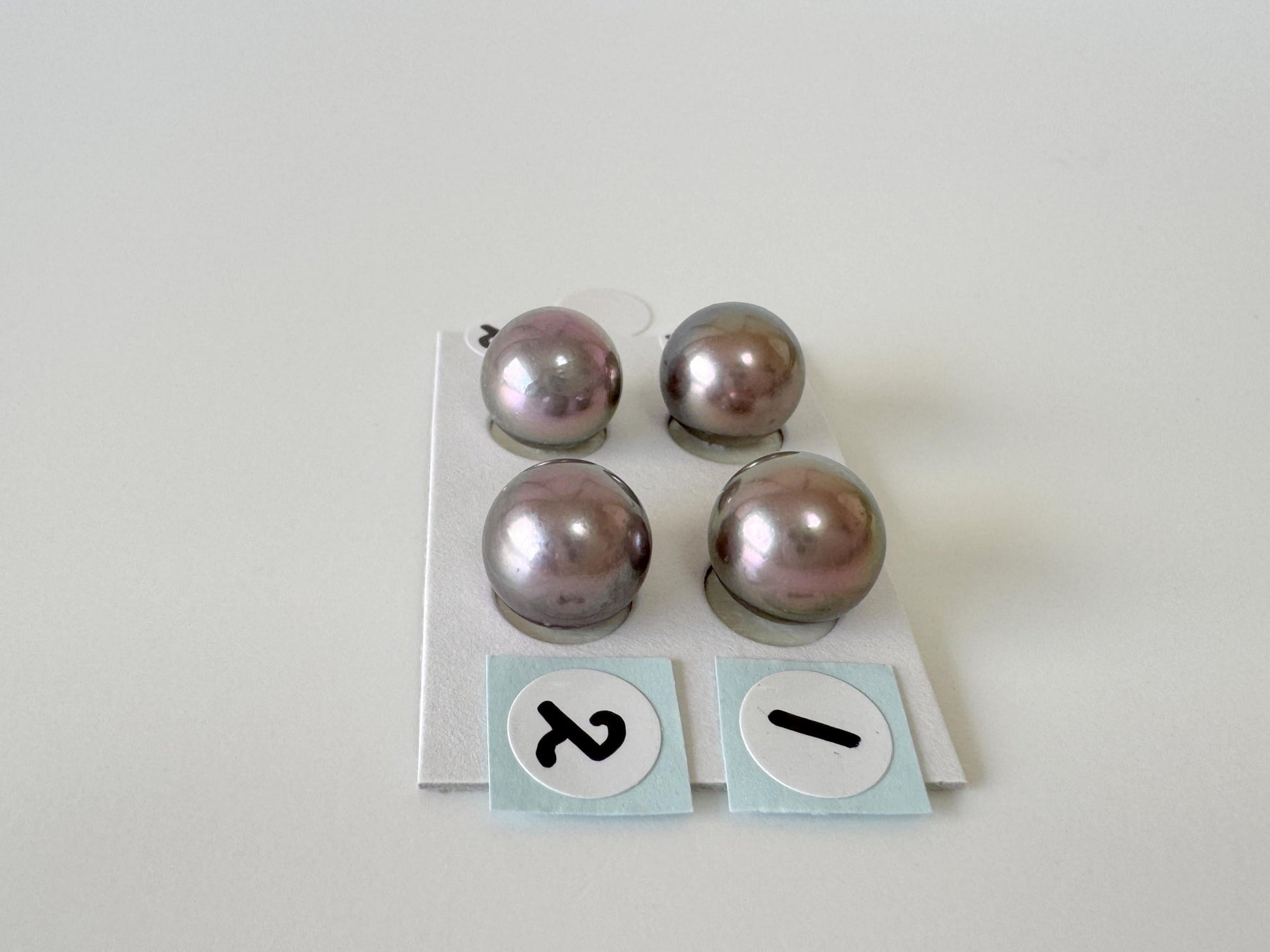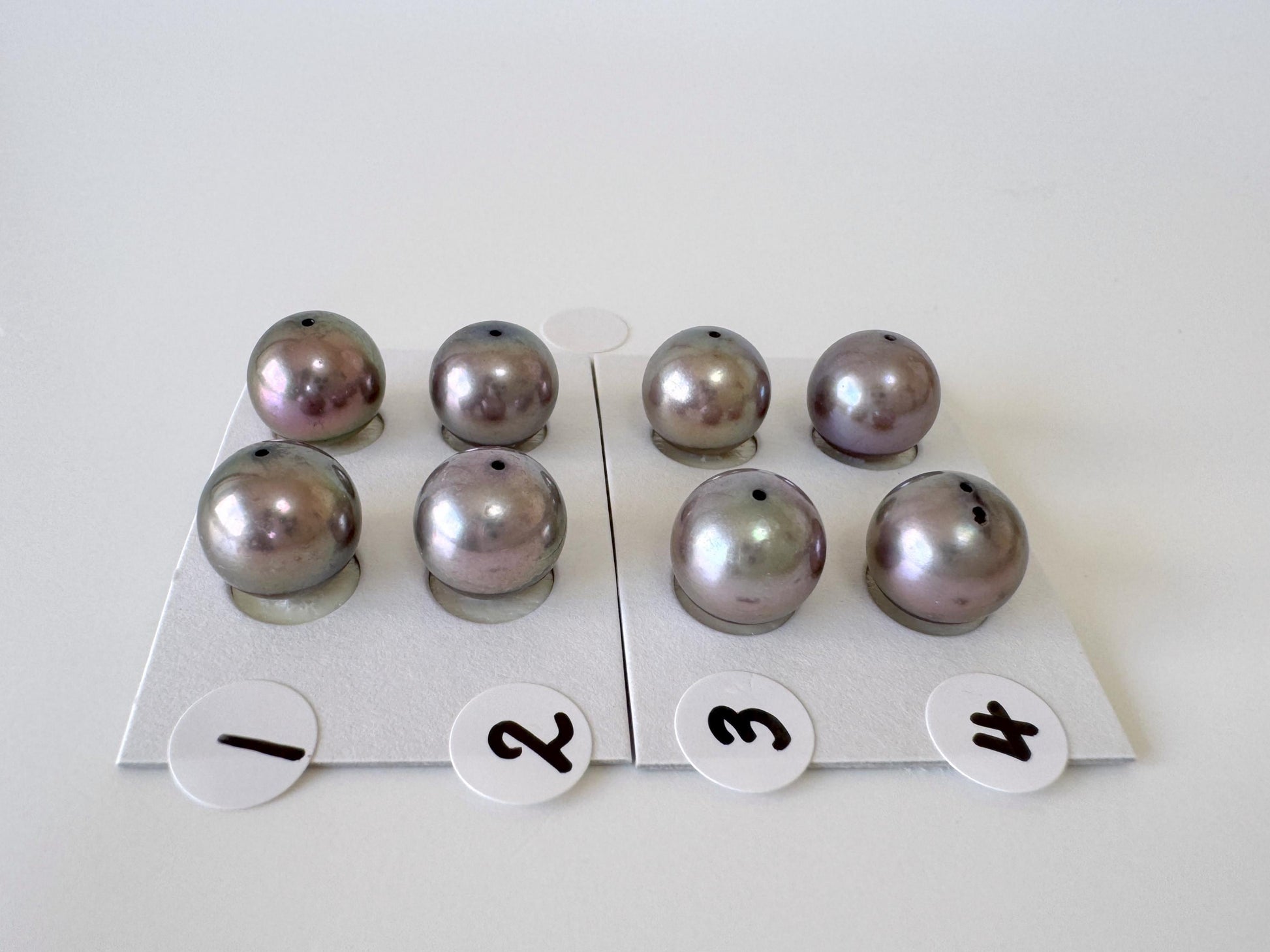Japanese Black/Peacock Black Akoya Pearl 9.5-10mm, Half-Drilled Round loose, Price per pair, Salt water pearl