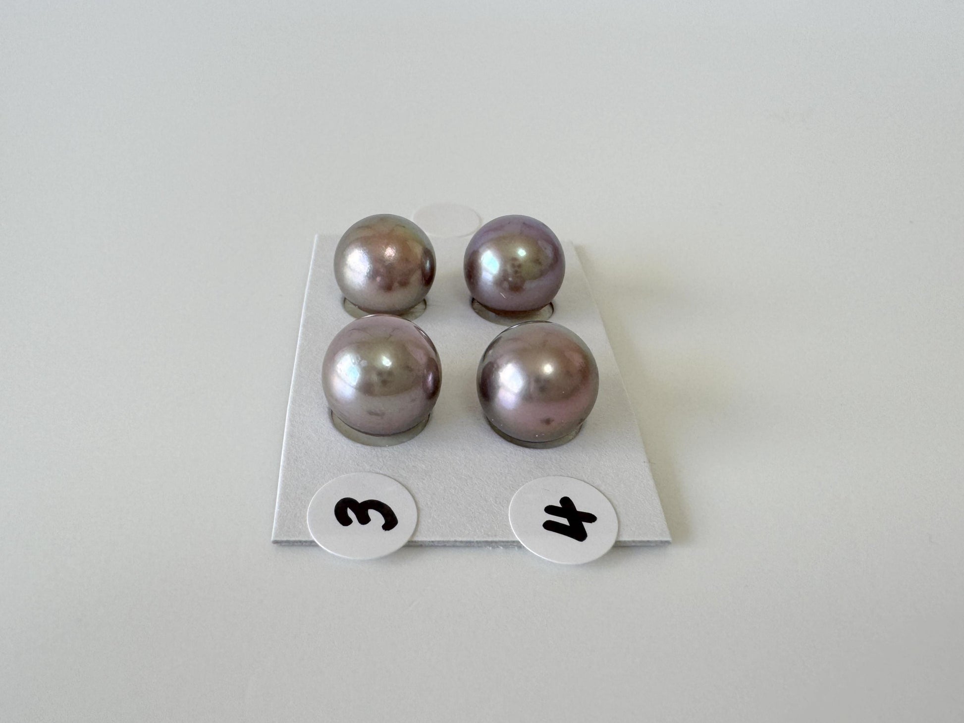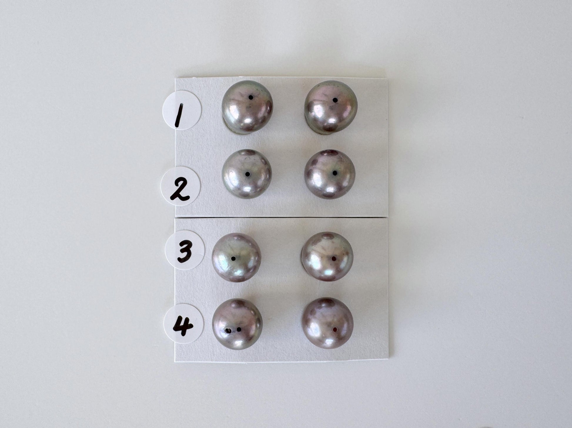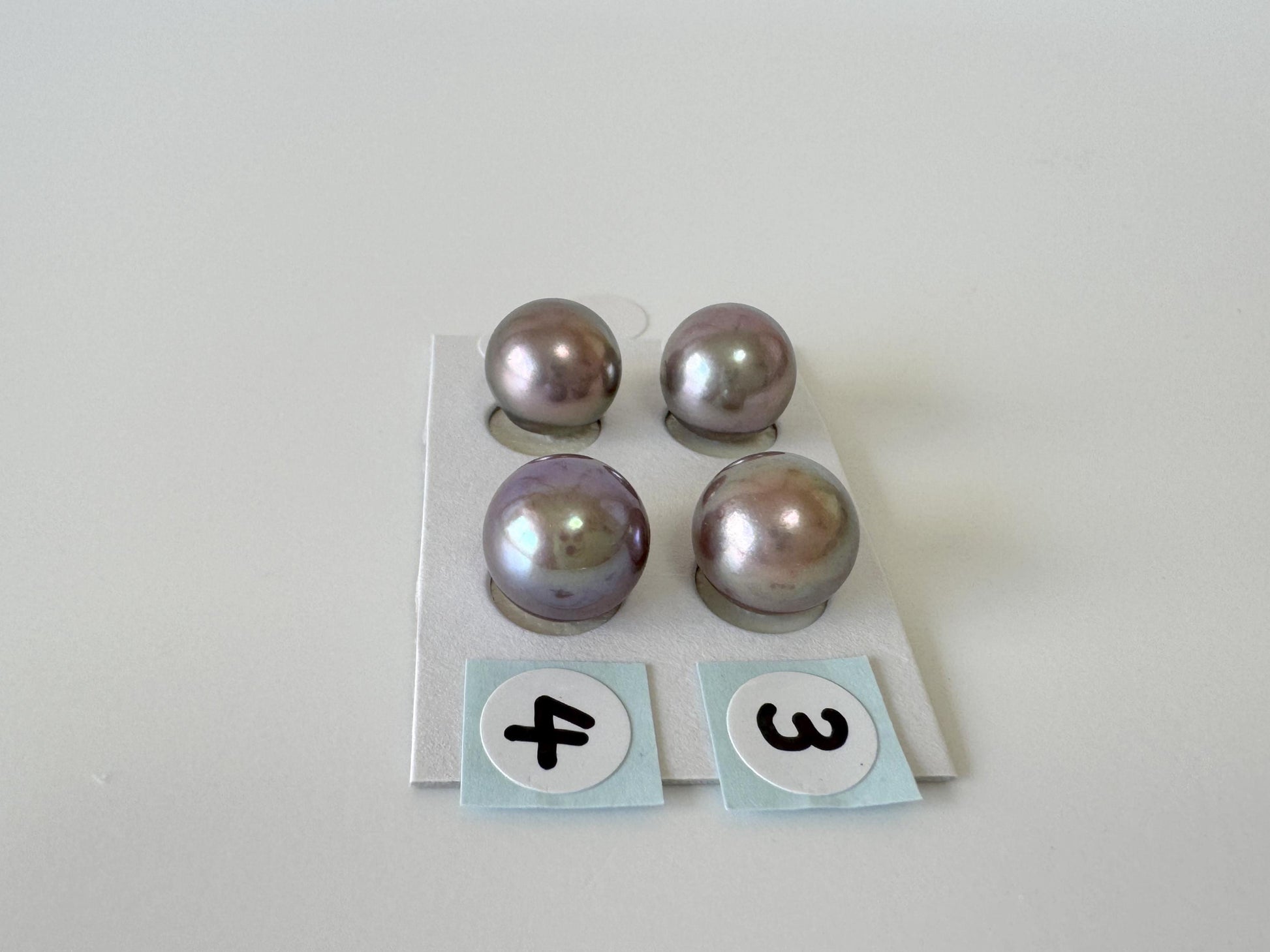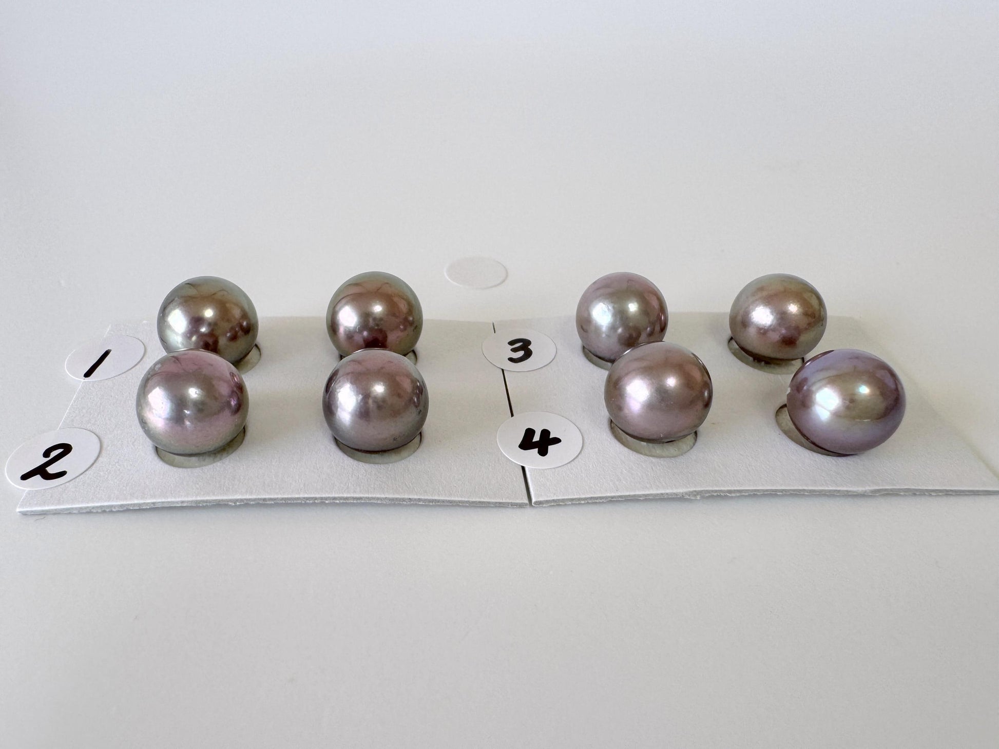 Japanese Black/Peacock Black Akoya Pearl 9.5-10mm, Half-Drilled Round loose, Price per pair, Salt water pearl