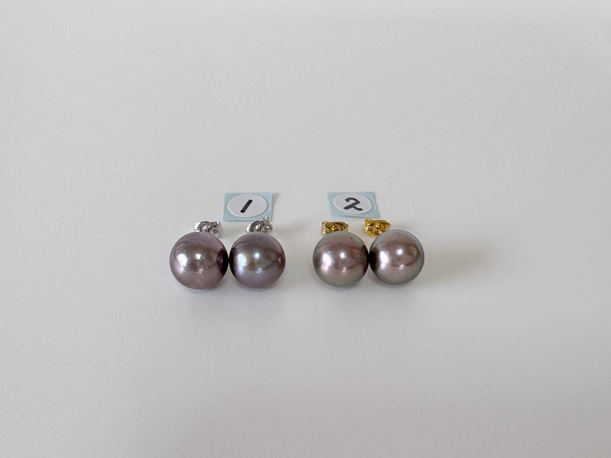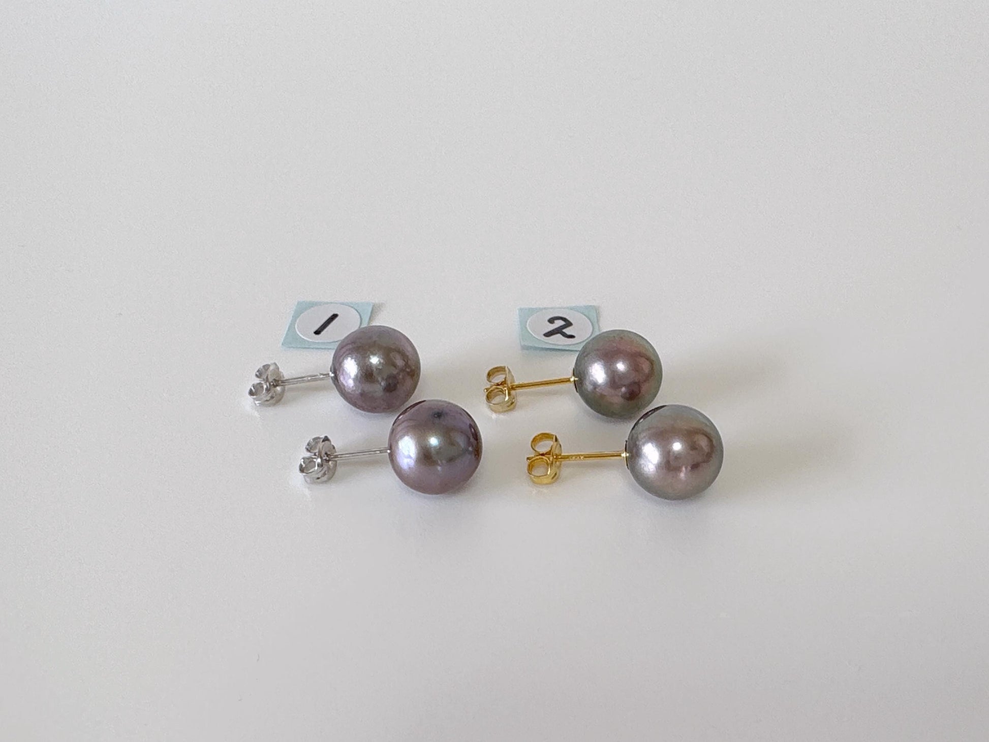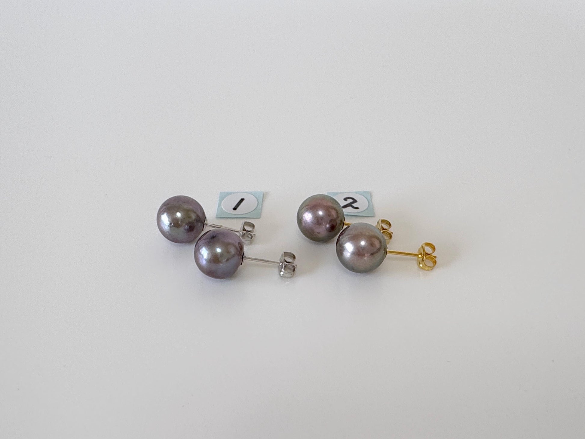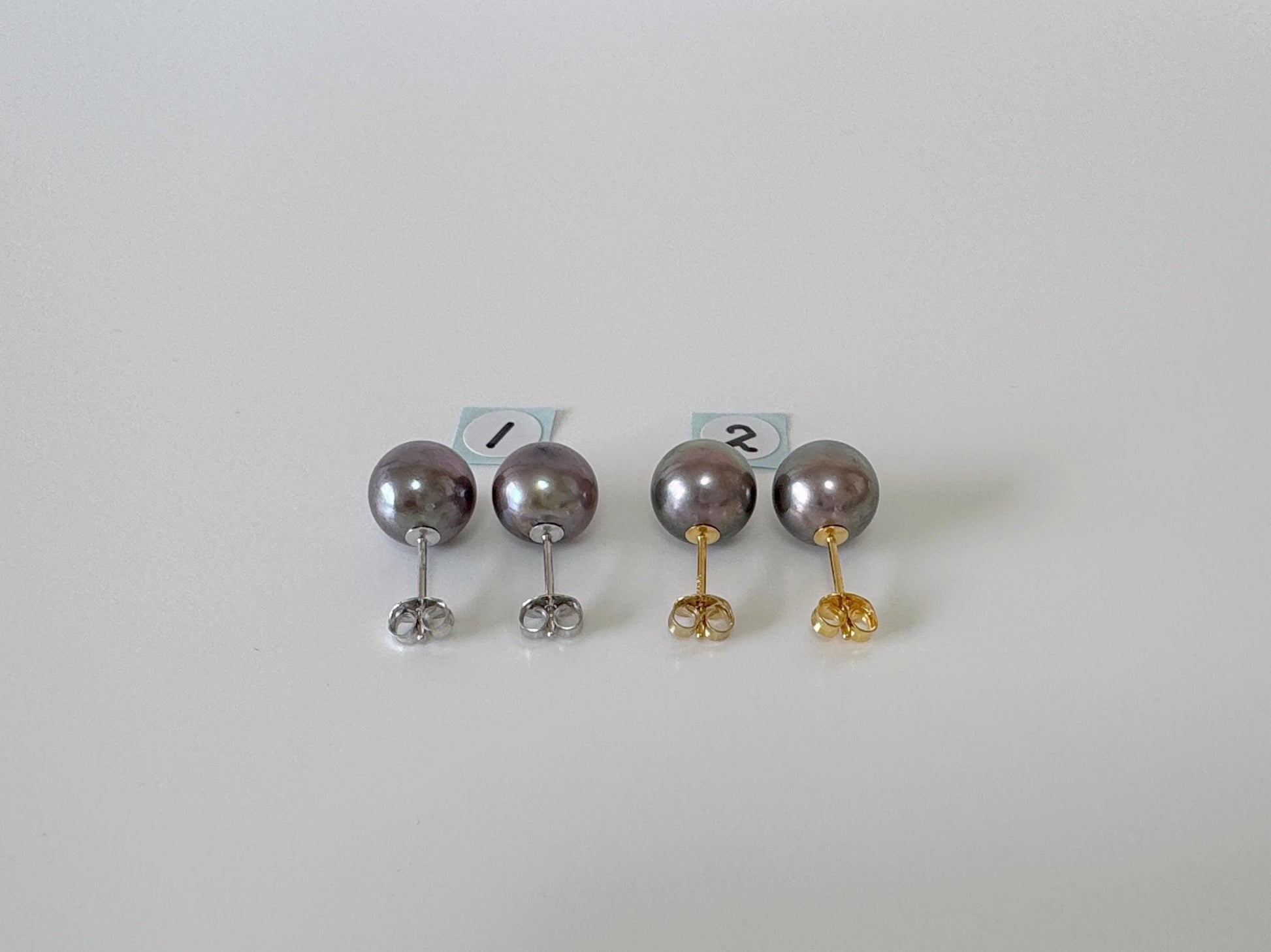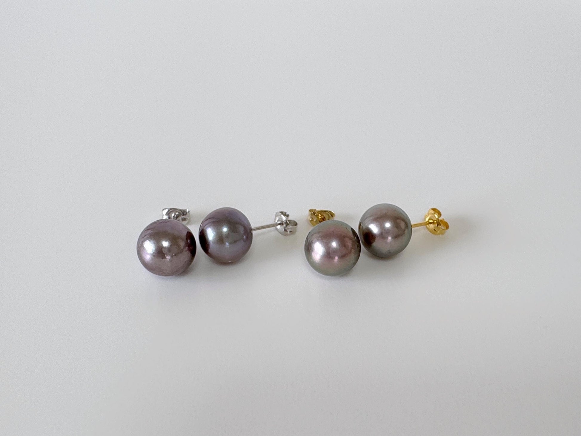 Japanese Black/Peacock Black Akoya Pearl Stud Earrings, 9.5mm, Silver 925 Post/Ear Nuts, Genuine Akoya Pearl, Salt water cultured pearl