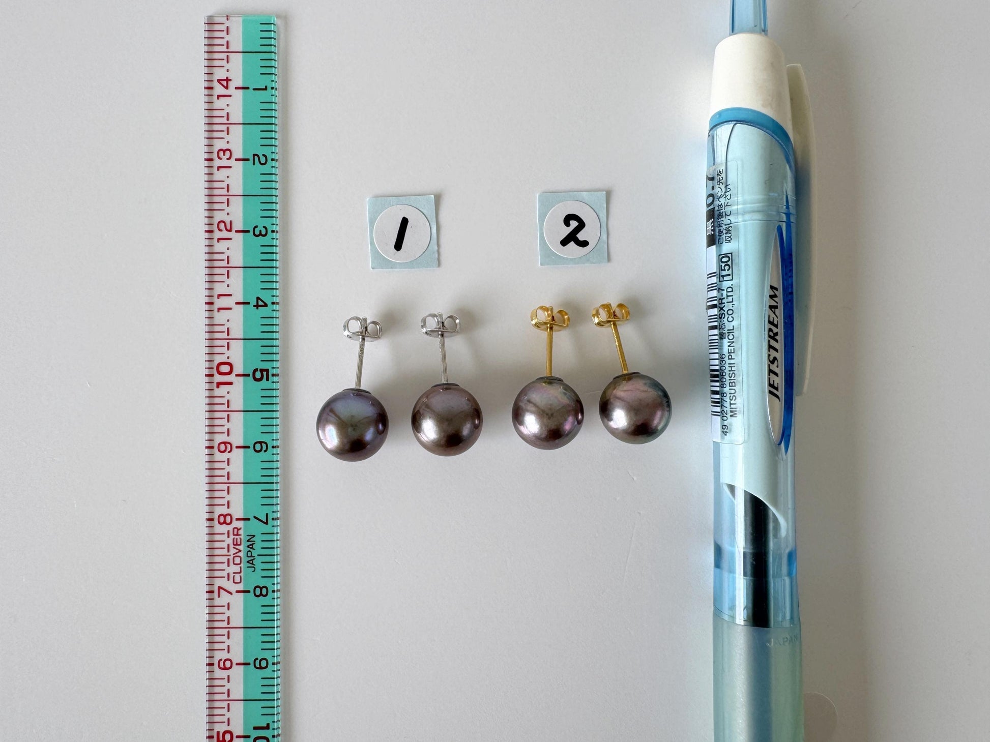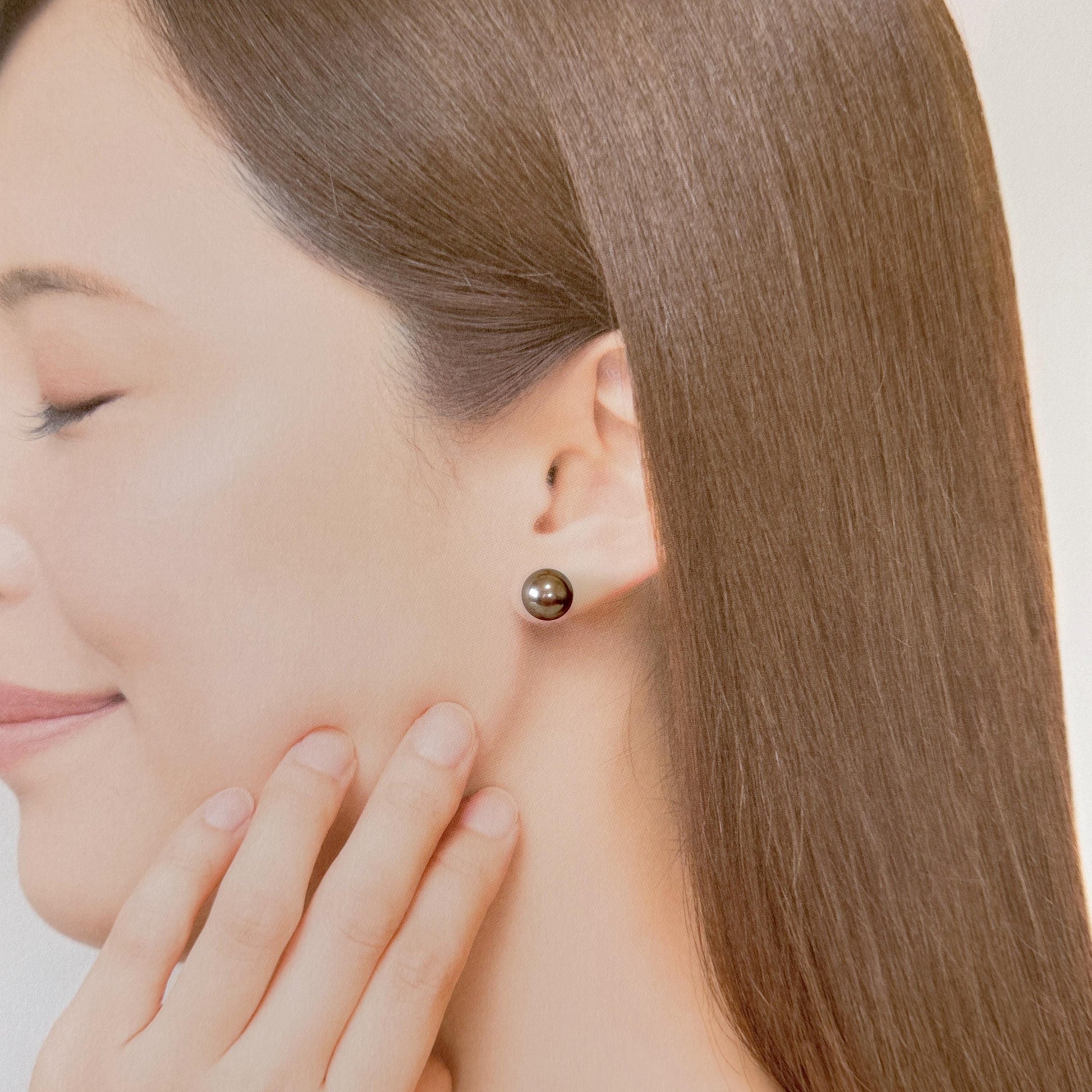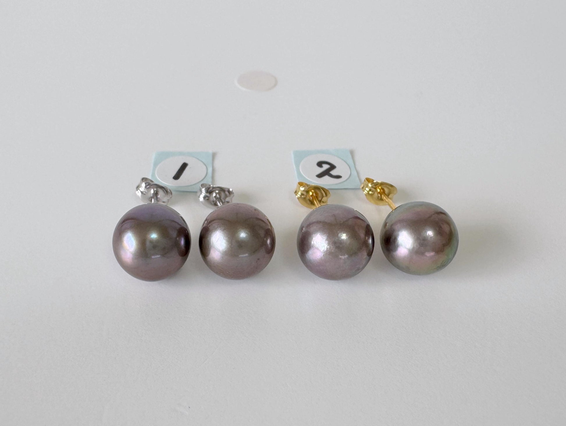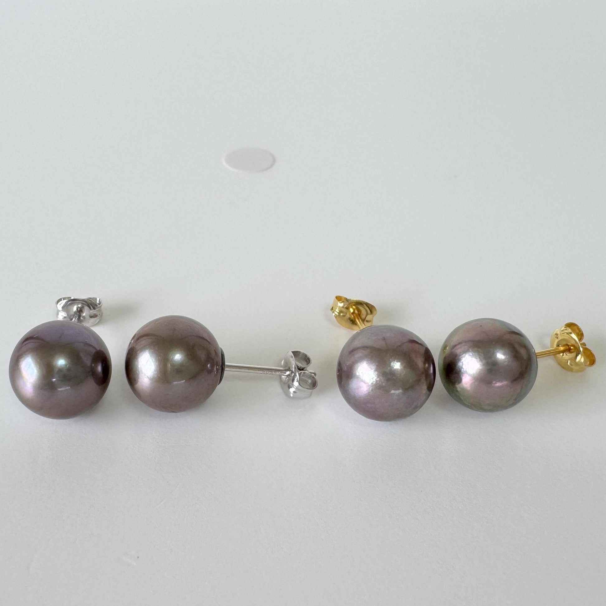 Japanese Black/Peacock Black Akoya Pearl Stud Earrings, 9.5mm, Silver 925 Post/Ear Nuts, Genuine Akoya Pearl, Salt water cultured pearl