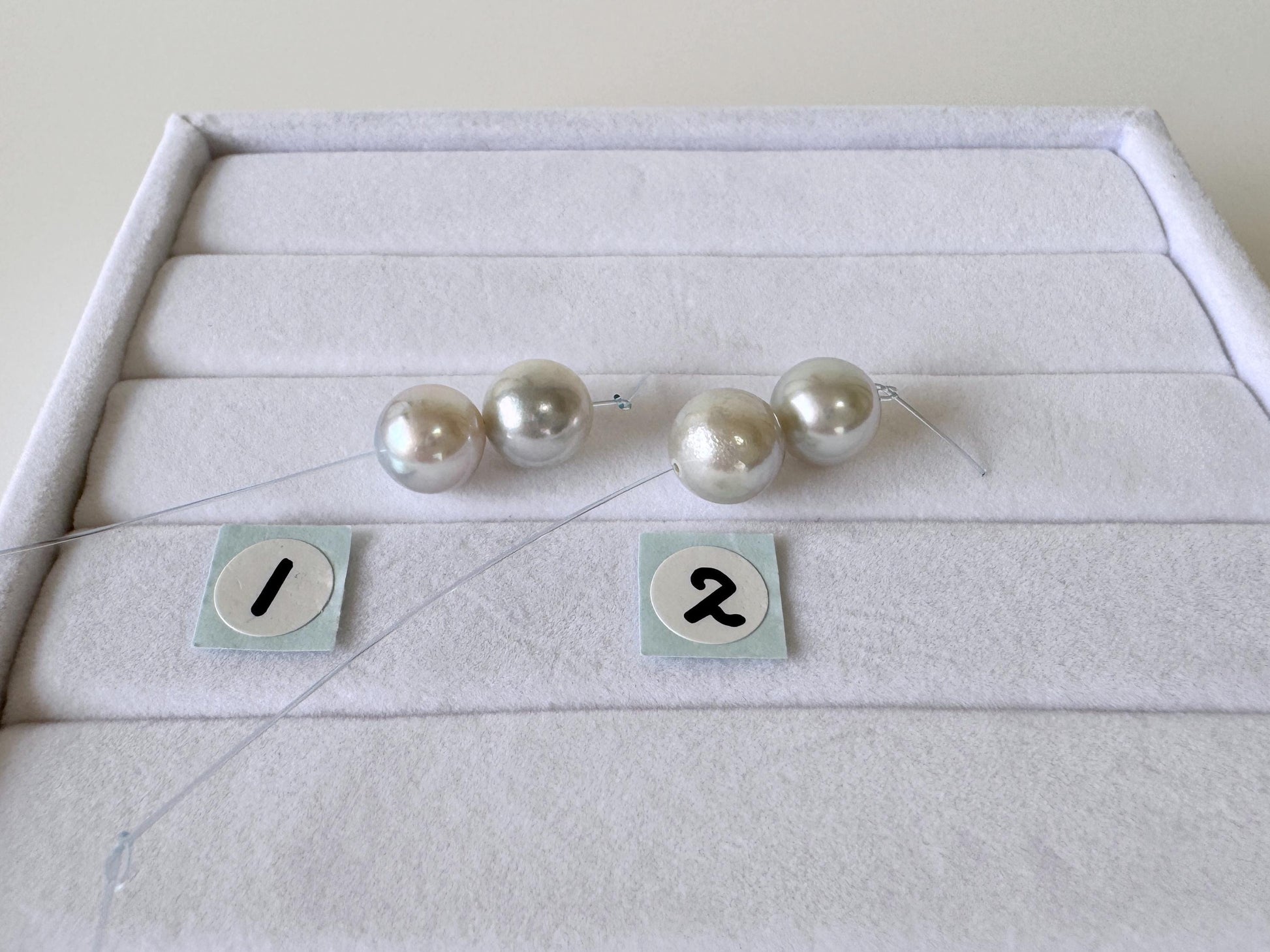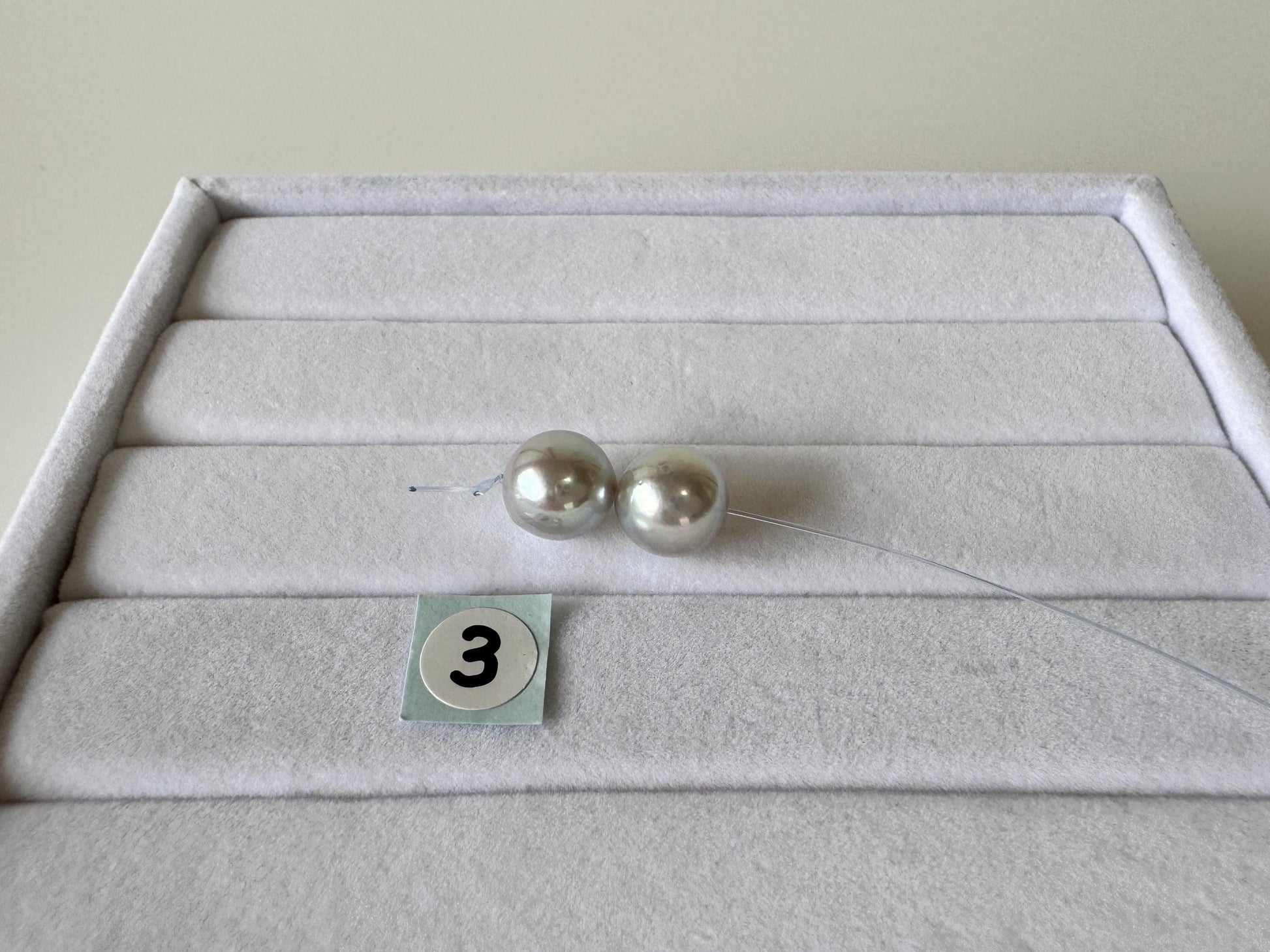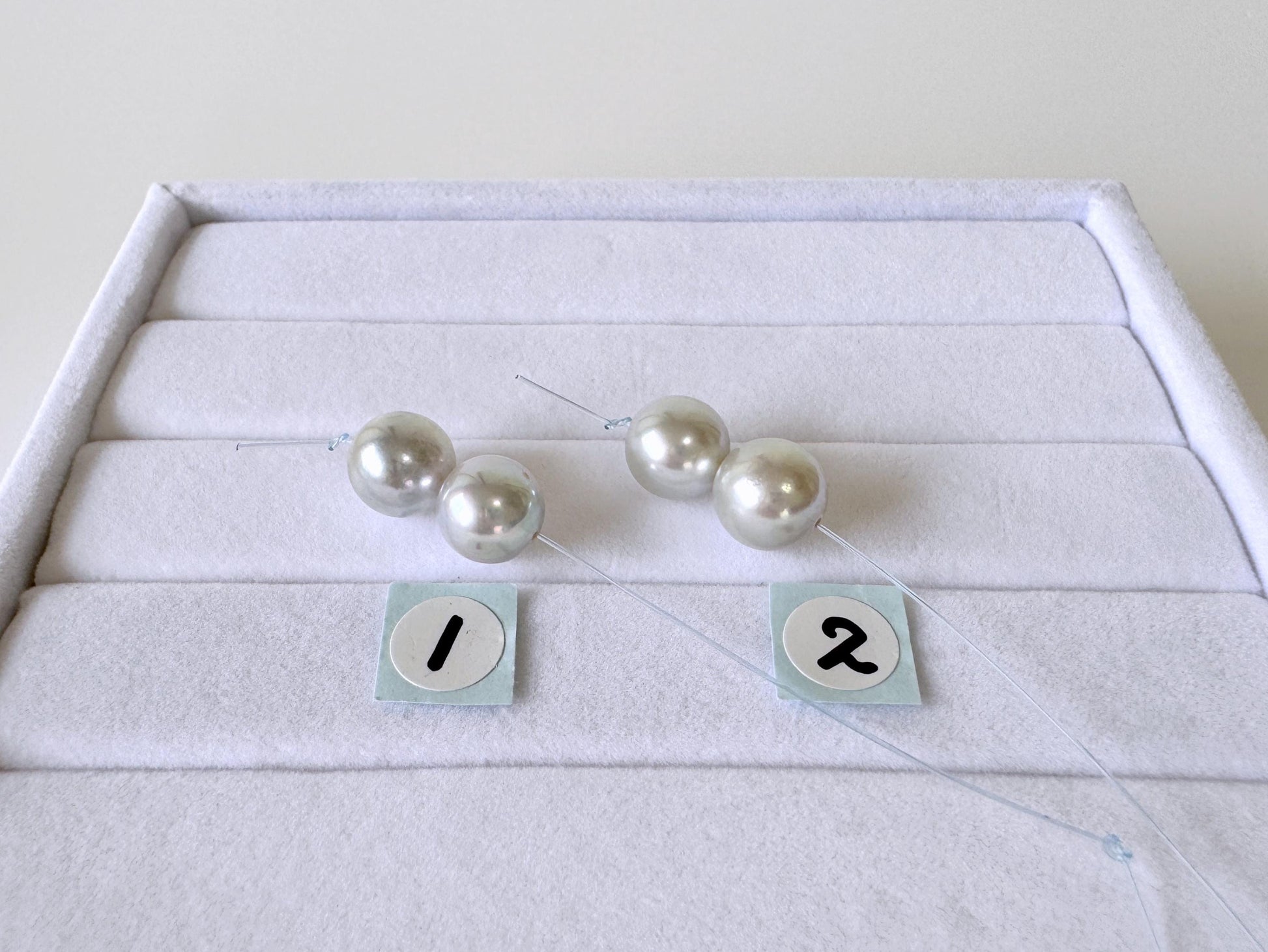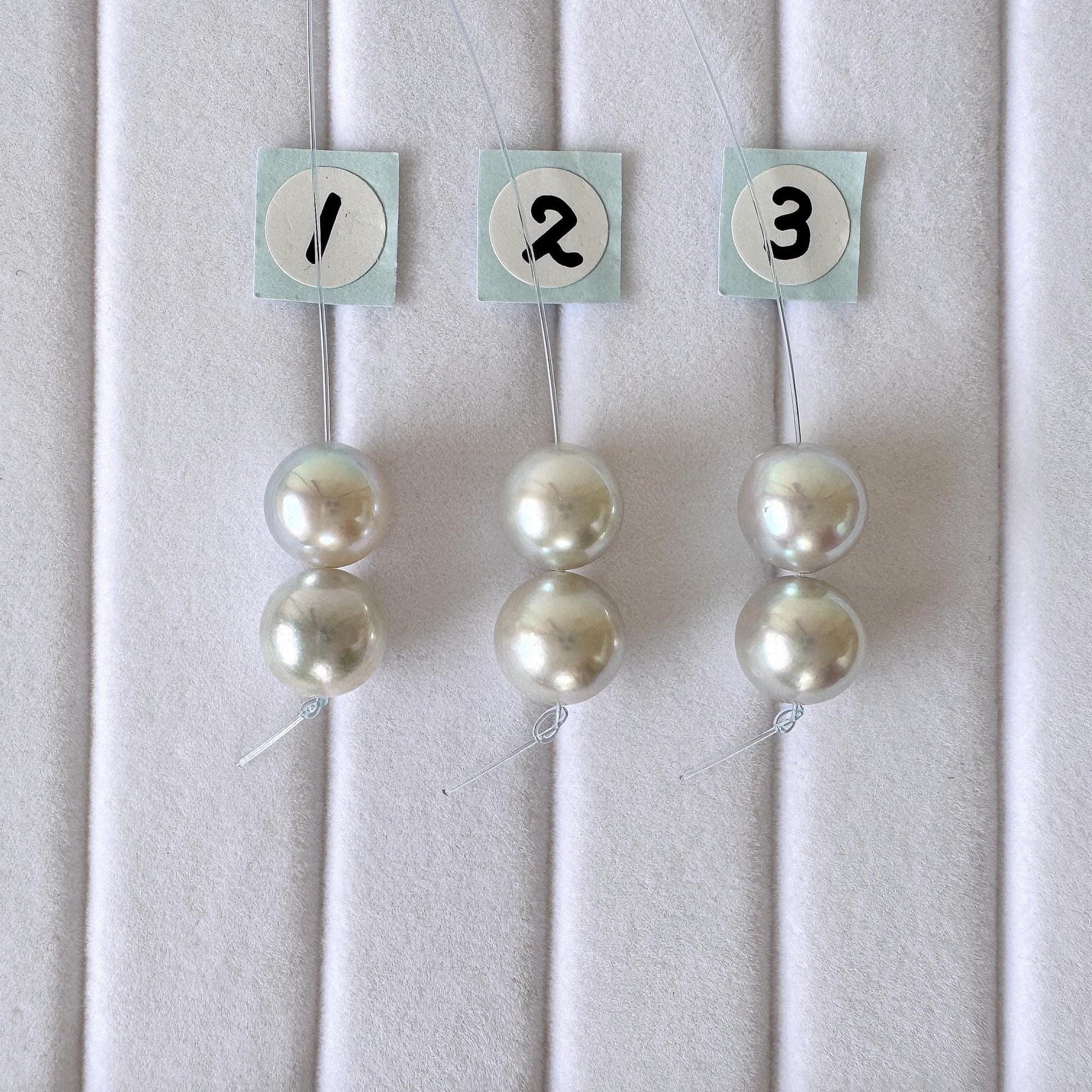 Japanese Blue/Silver (Natural color) Akoya Pearl Beads, 8-8.5mm, Mini Strand, 2 Pieces, Short Strand, Salt water pearl, Genuine Akoya Pearl