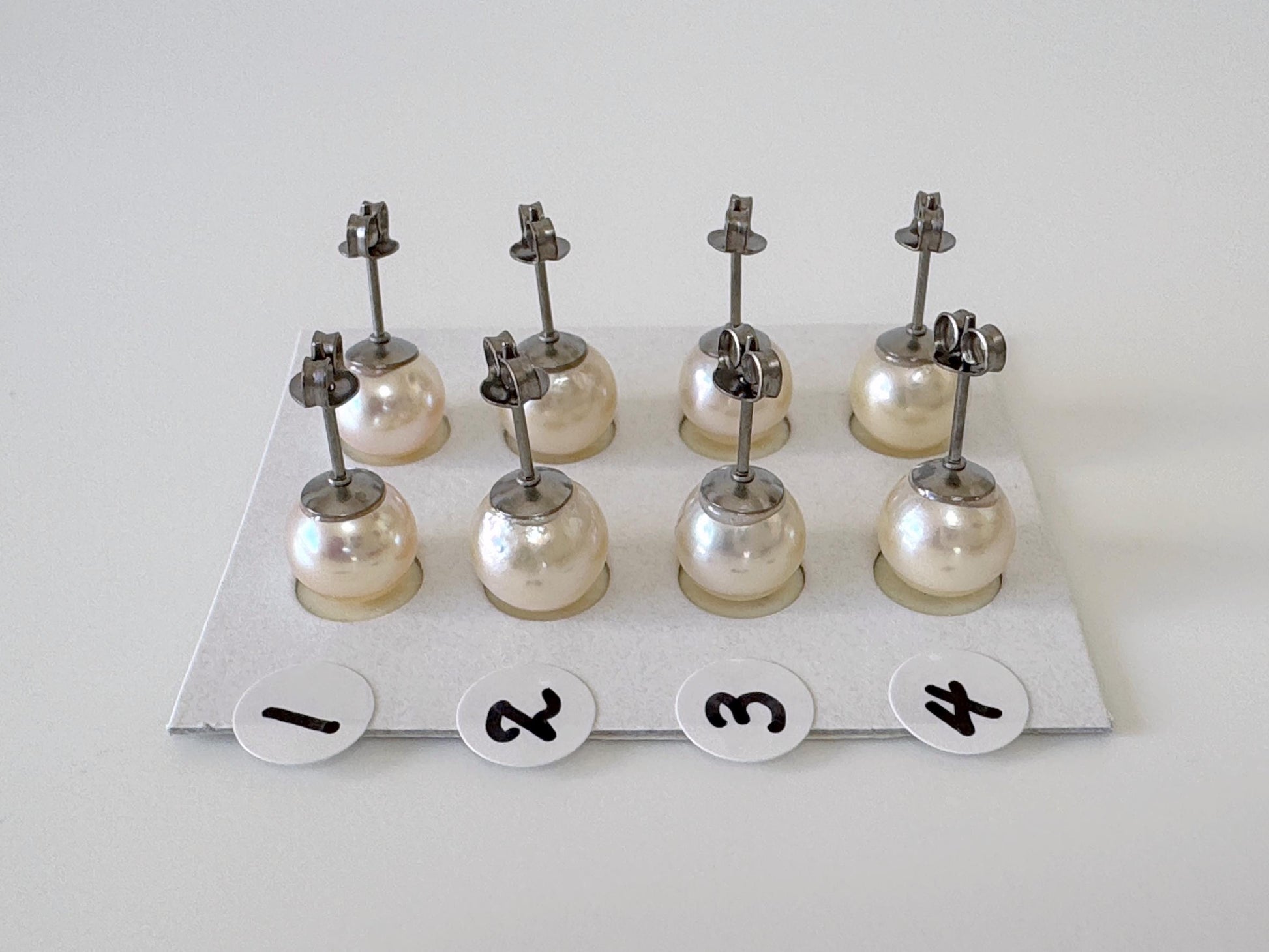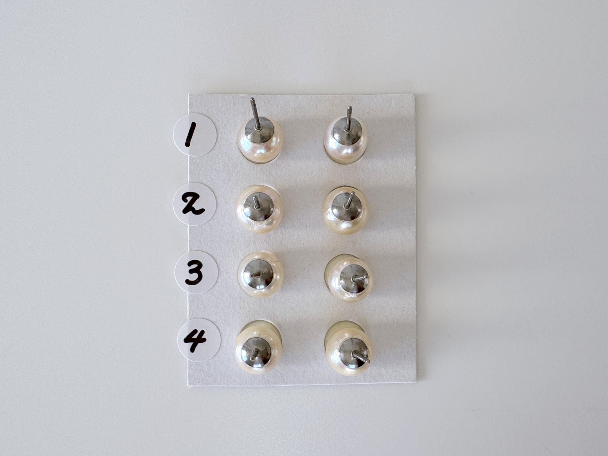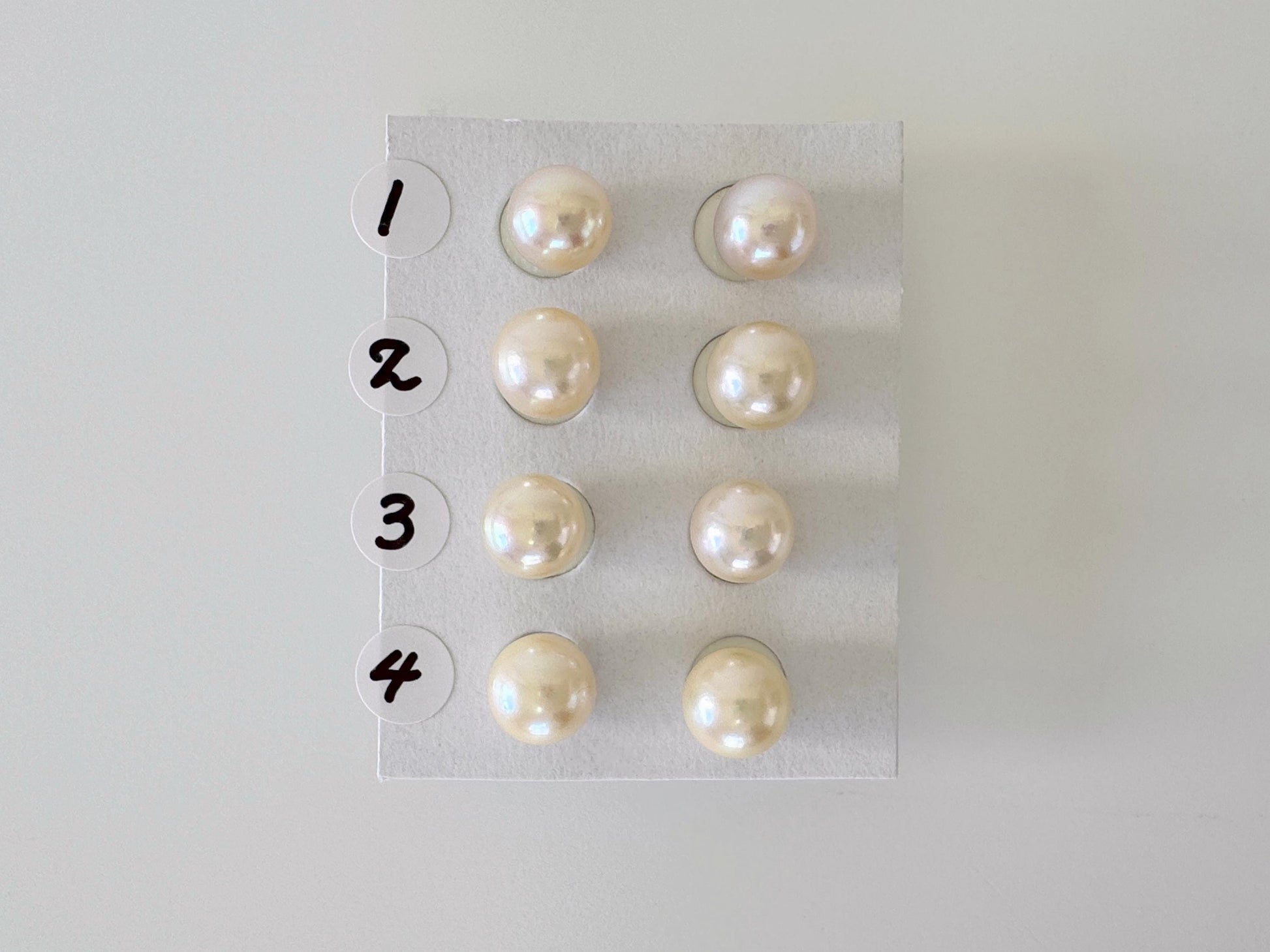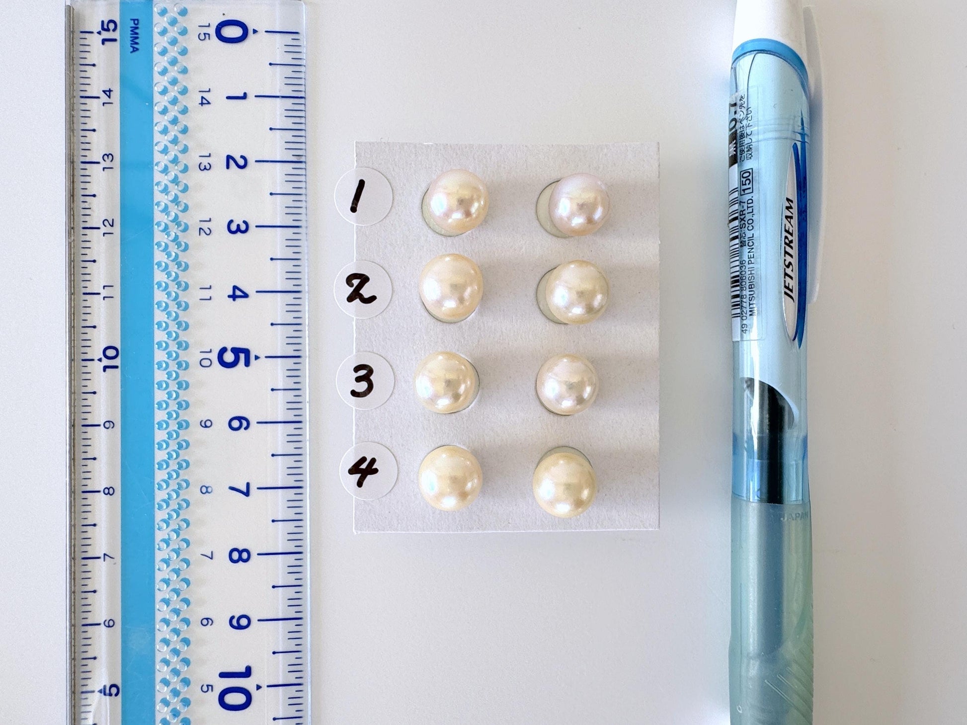 ※These Akoya pearl stud earrings are value-priced for the reason the bottoms of the pearls are grinded flat. (Please refer to the last photo)