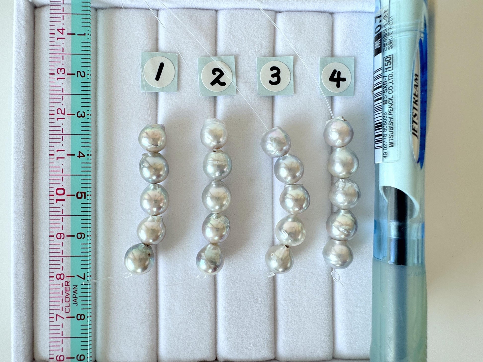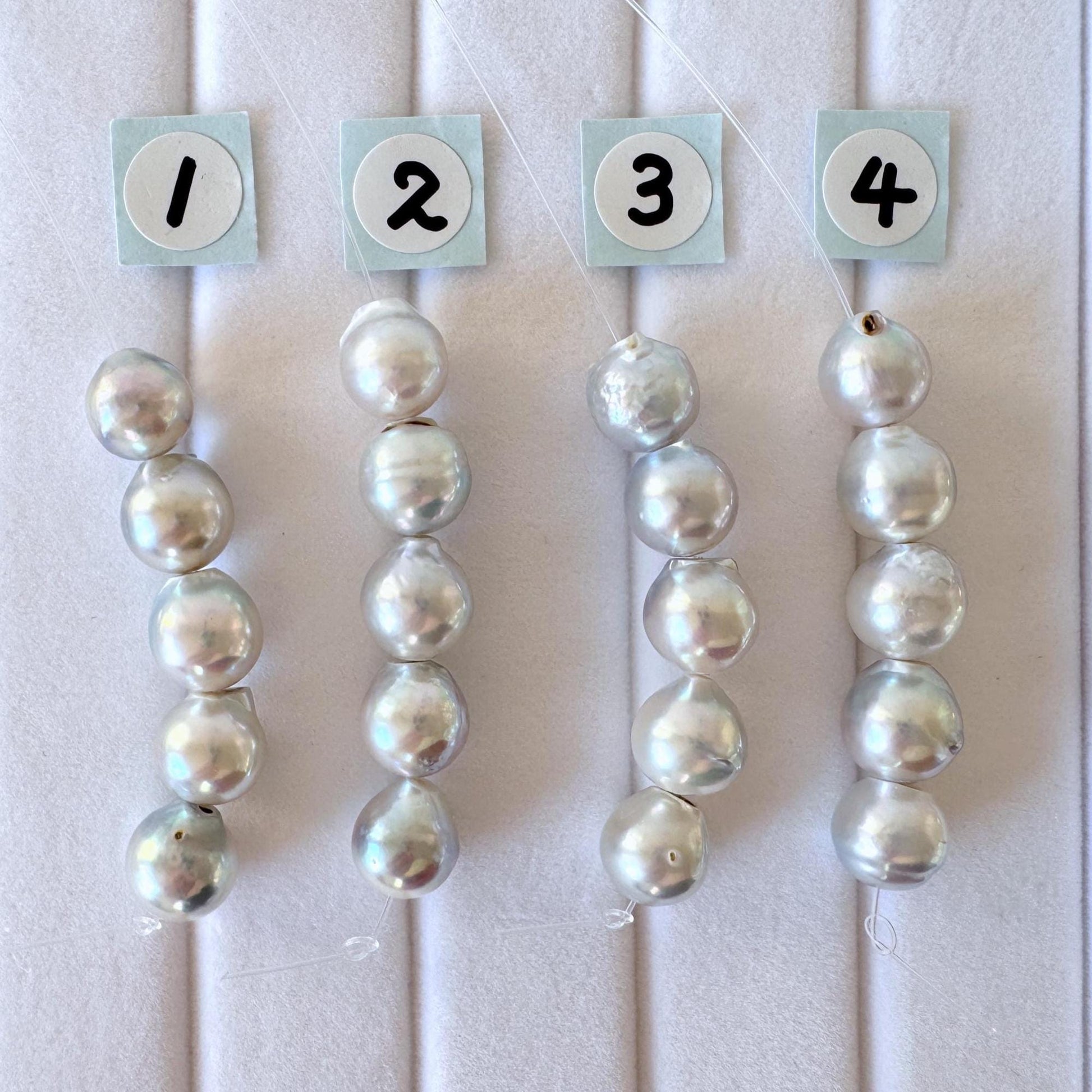 Japanese Natural blue/silver color Akoya Pearl Beads, 7-7.5mm, Mini Strand, Short Strand of 5 Pieces, Cultured in Sea Water