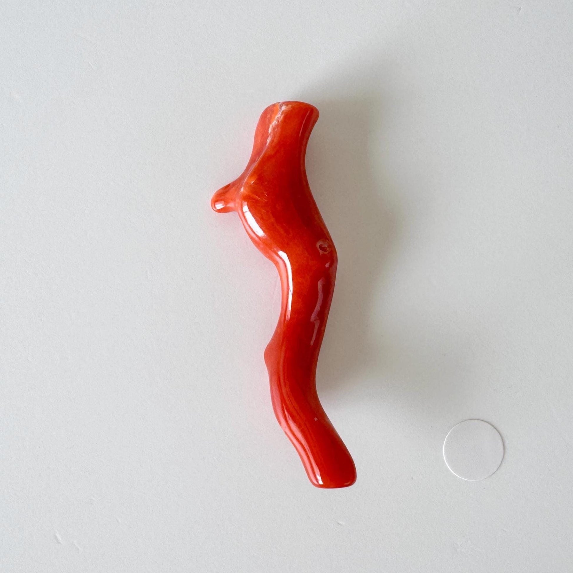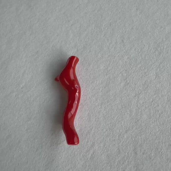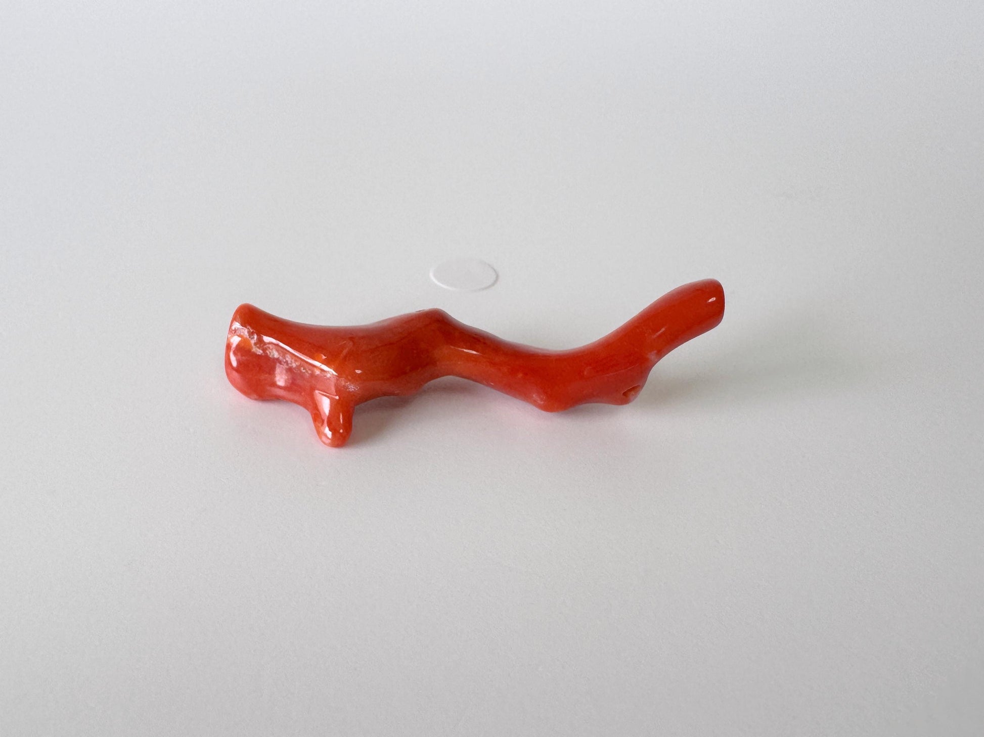 Japanese red(Aka) coral branch, 45mm, Hole on top, Natural red color coral for jewelry making