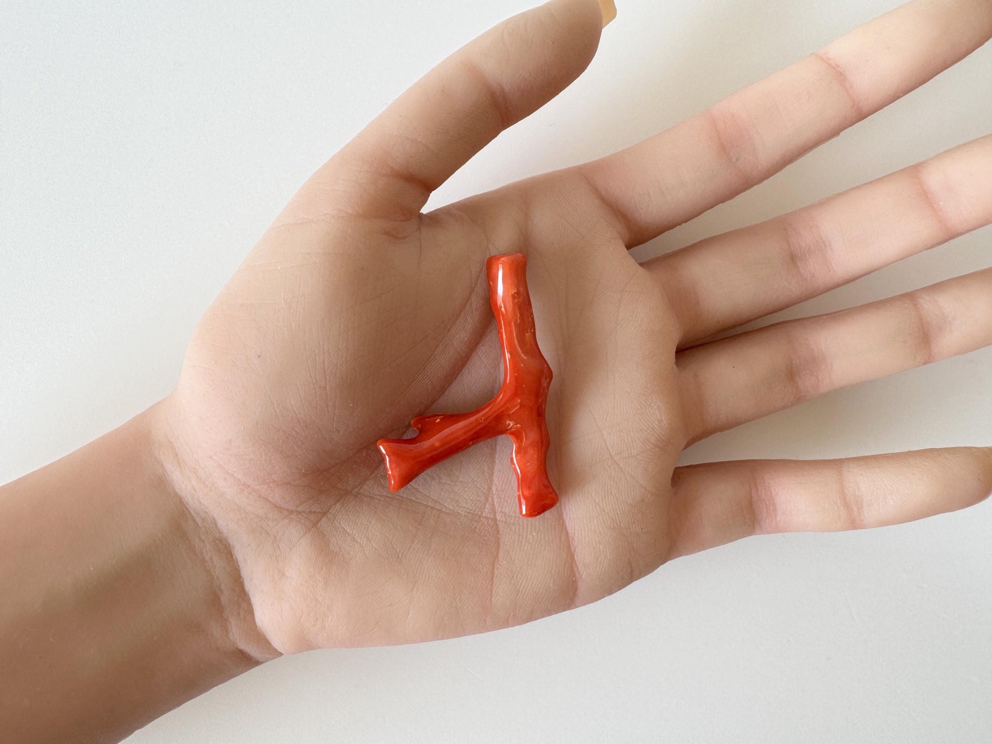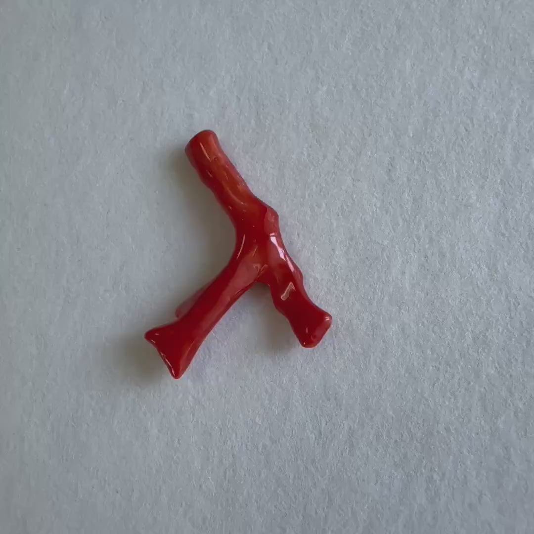 Japanese red(Aka) coral branch, 45mm, Hole on top, Natural red color coral for jewelry making