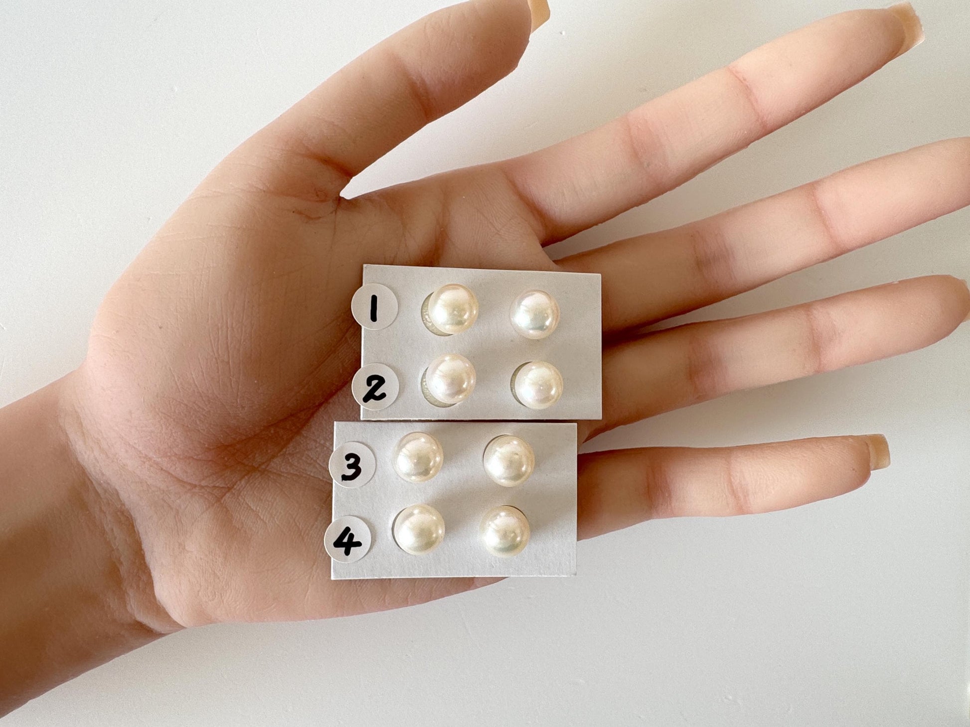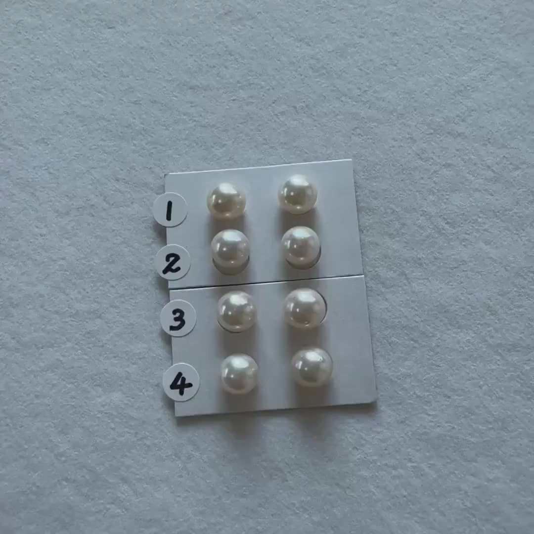 Japanese White Akoya Cultured Pearl 8.4-9mm, Genuine Akoya Pearl, Half-Drilled Round loose, Price per Pair, Salt water pearl