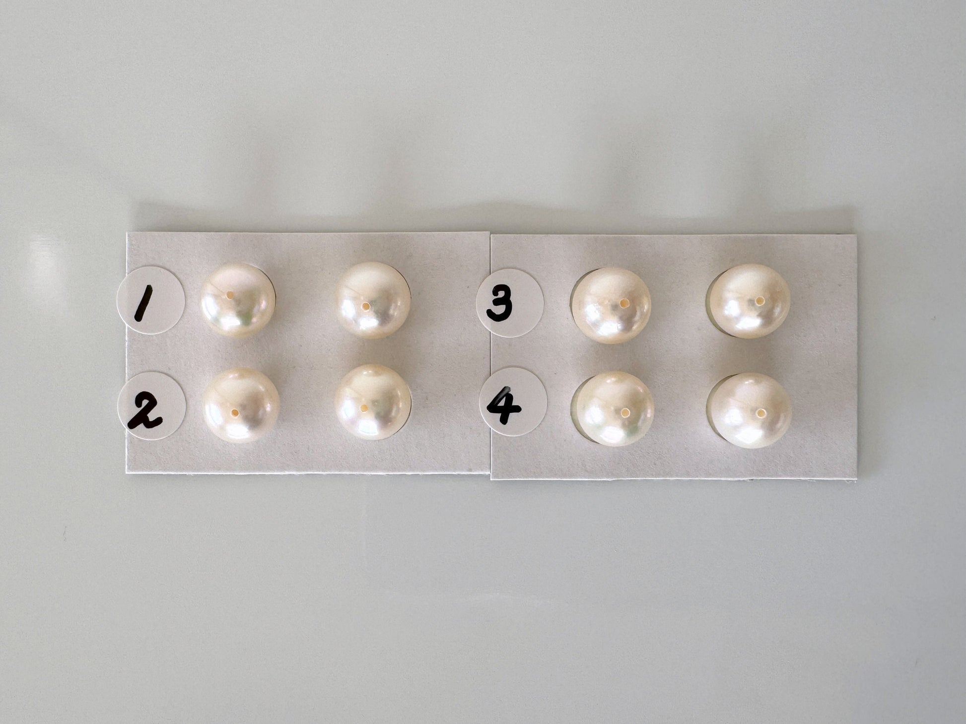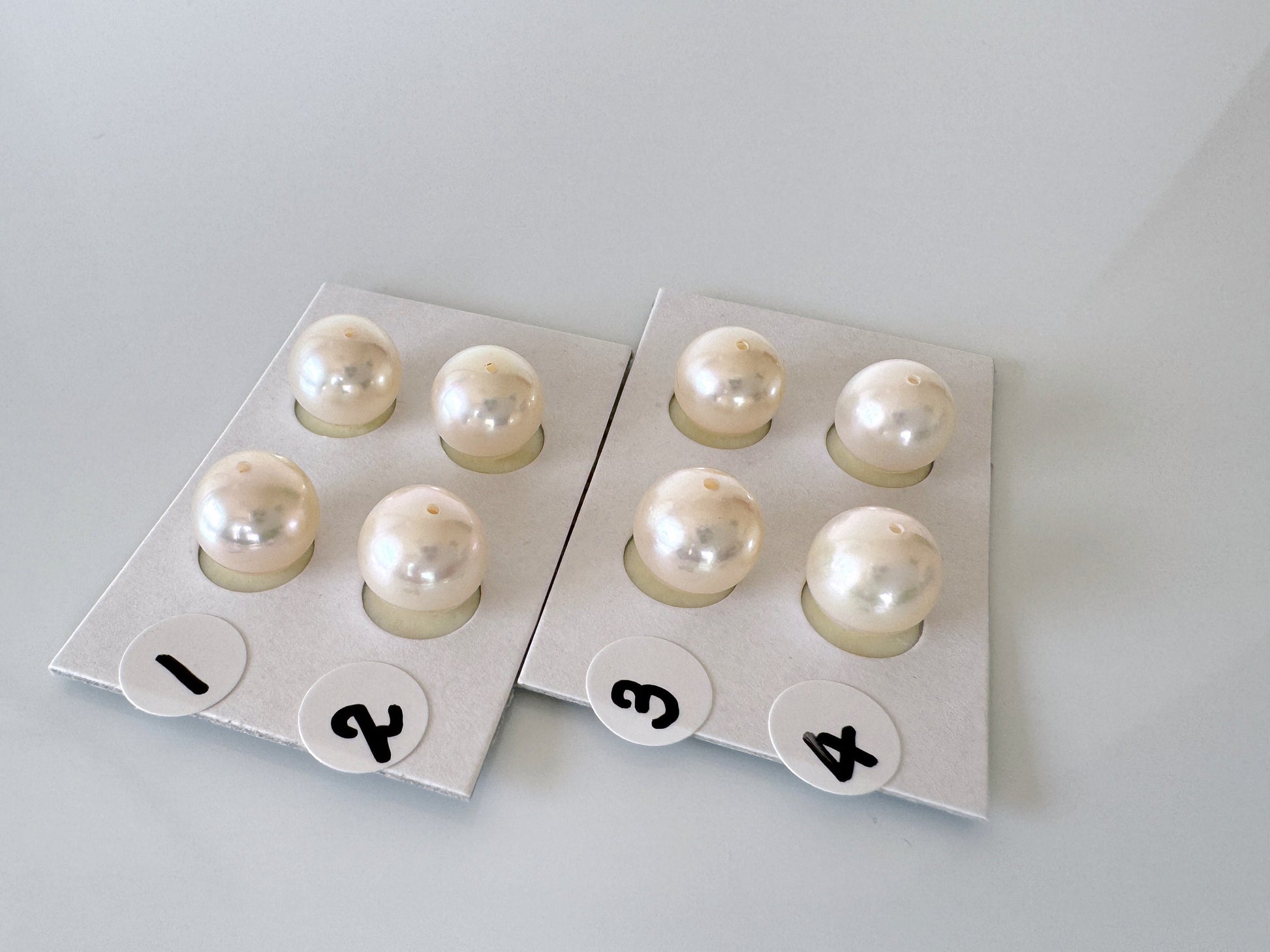 Japanese White Akoya Cultured Pearl 8.5-9mm, Genuine Akoya Pearl, Half-Drilled Round loose, Price per Pair, Salt water pearl