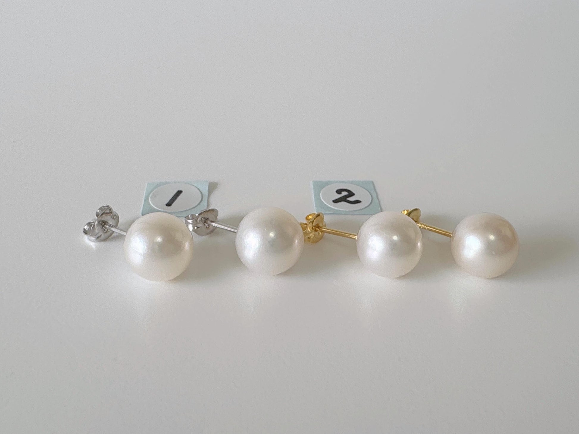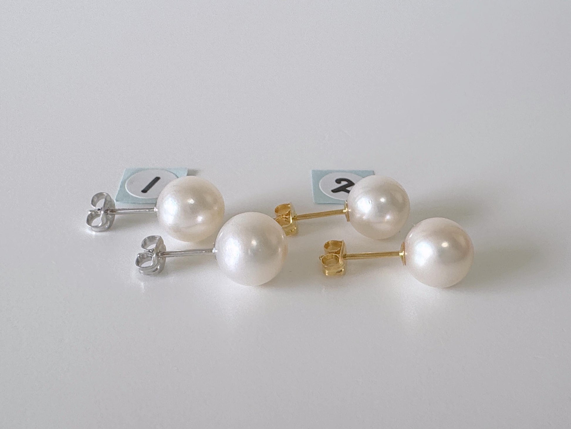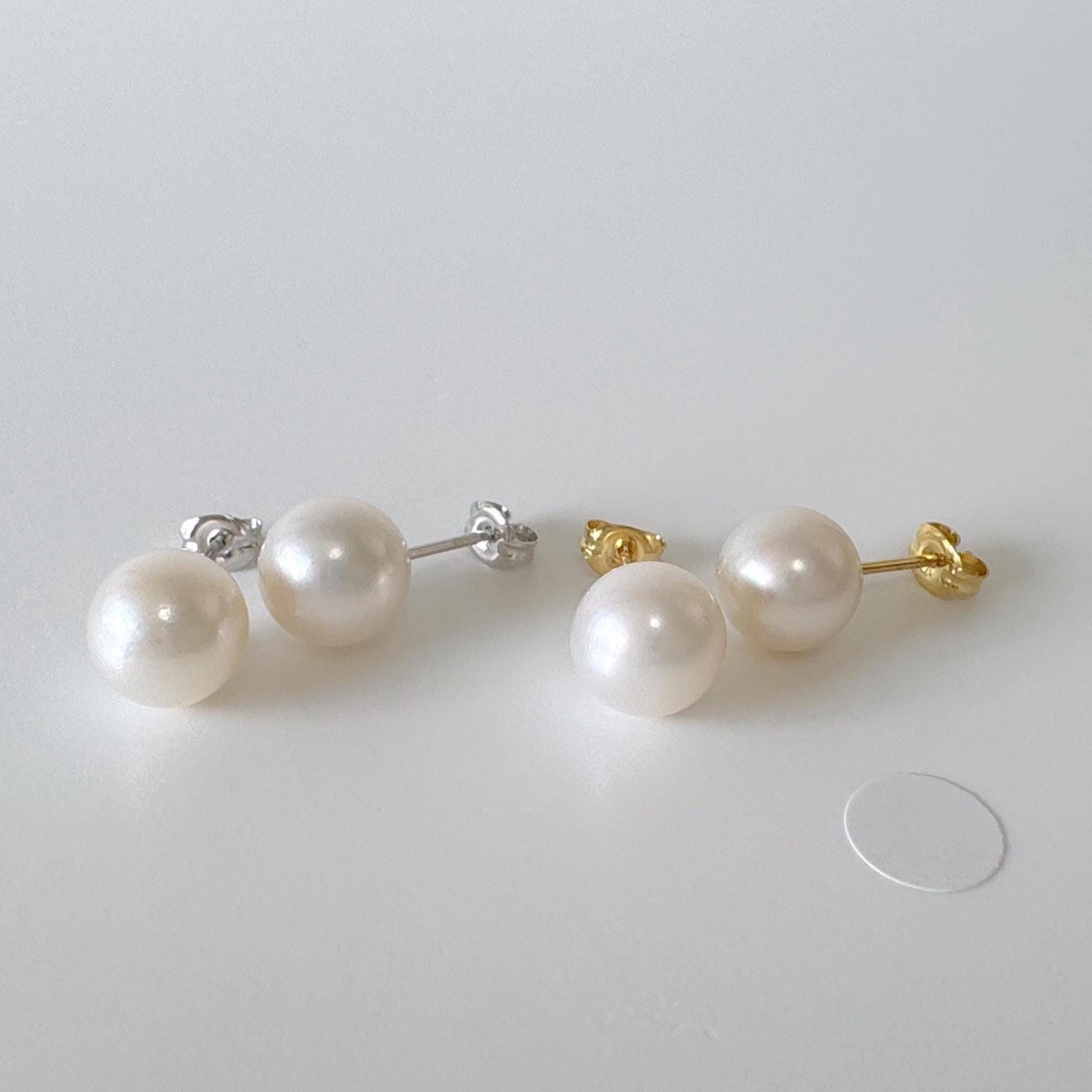 Japanese White Akoya Pearl Stud Earrings, 8.5mm, Silver 925 Post/Ear Nuts, Genuine Akoya Pearl, Salt water cultured pearl