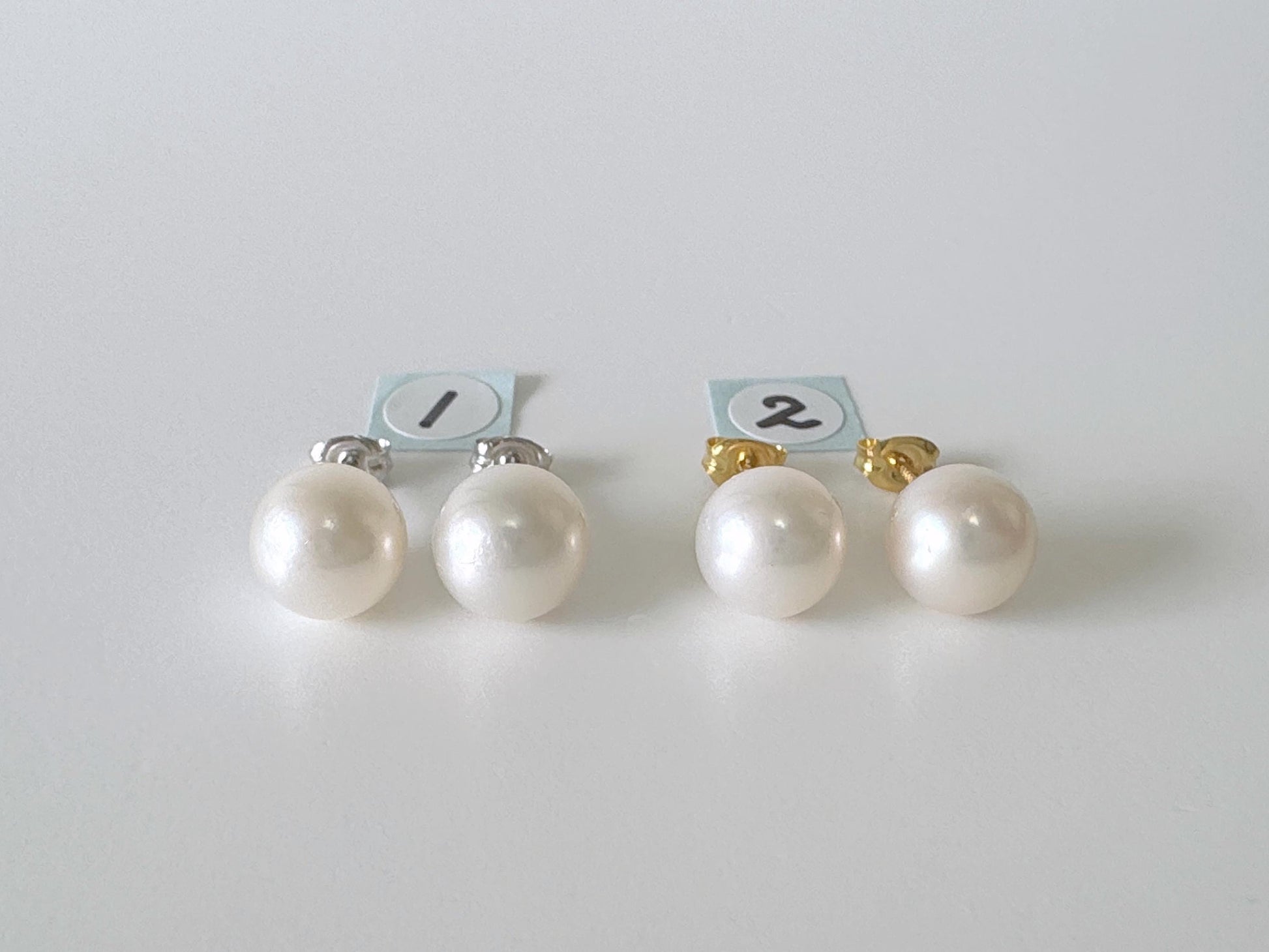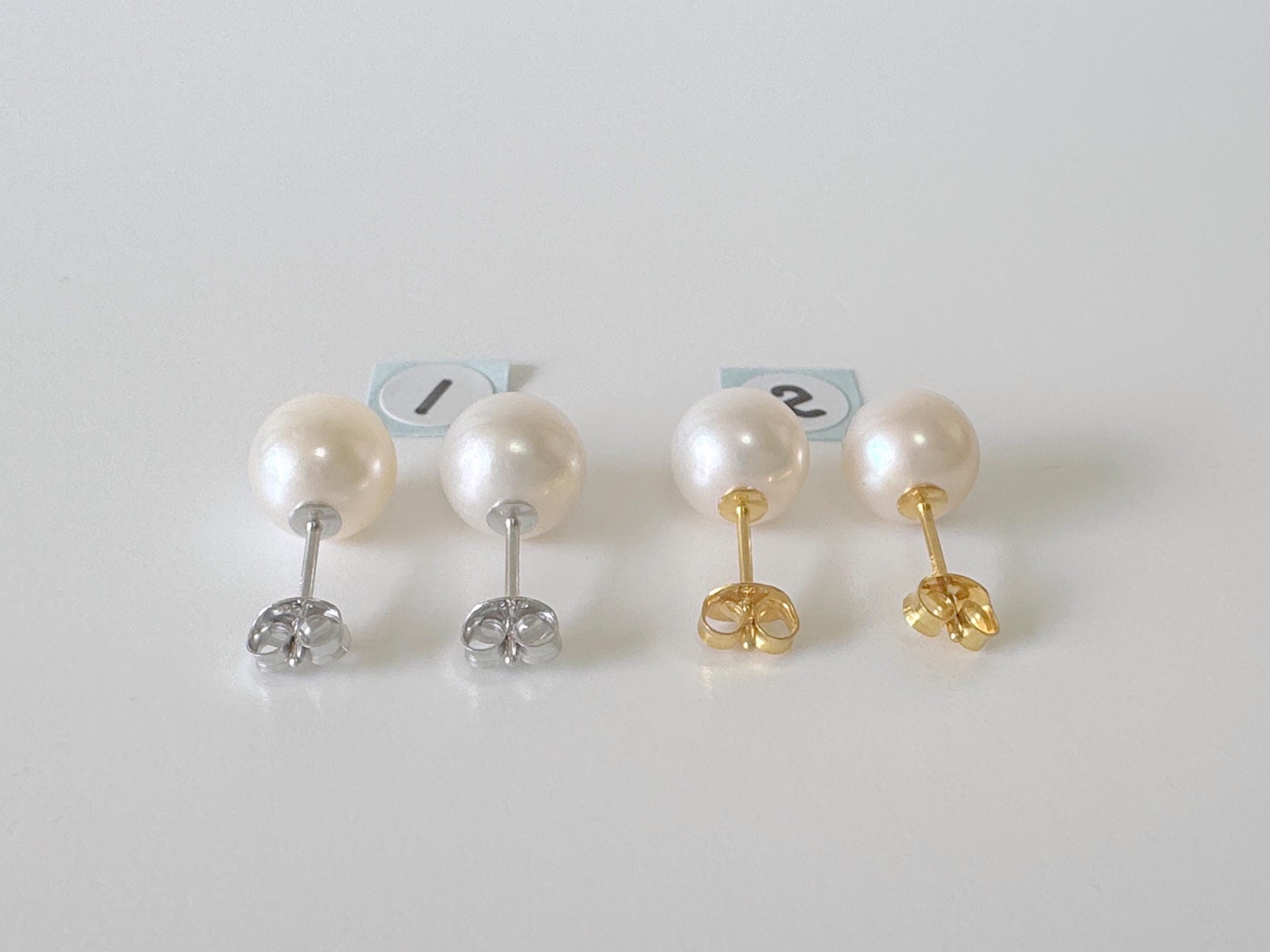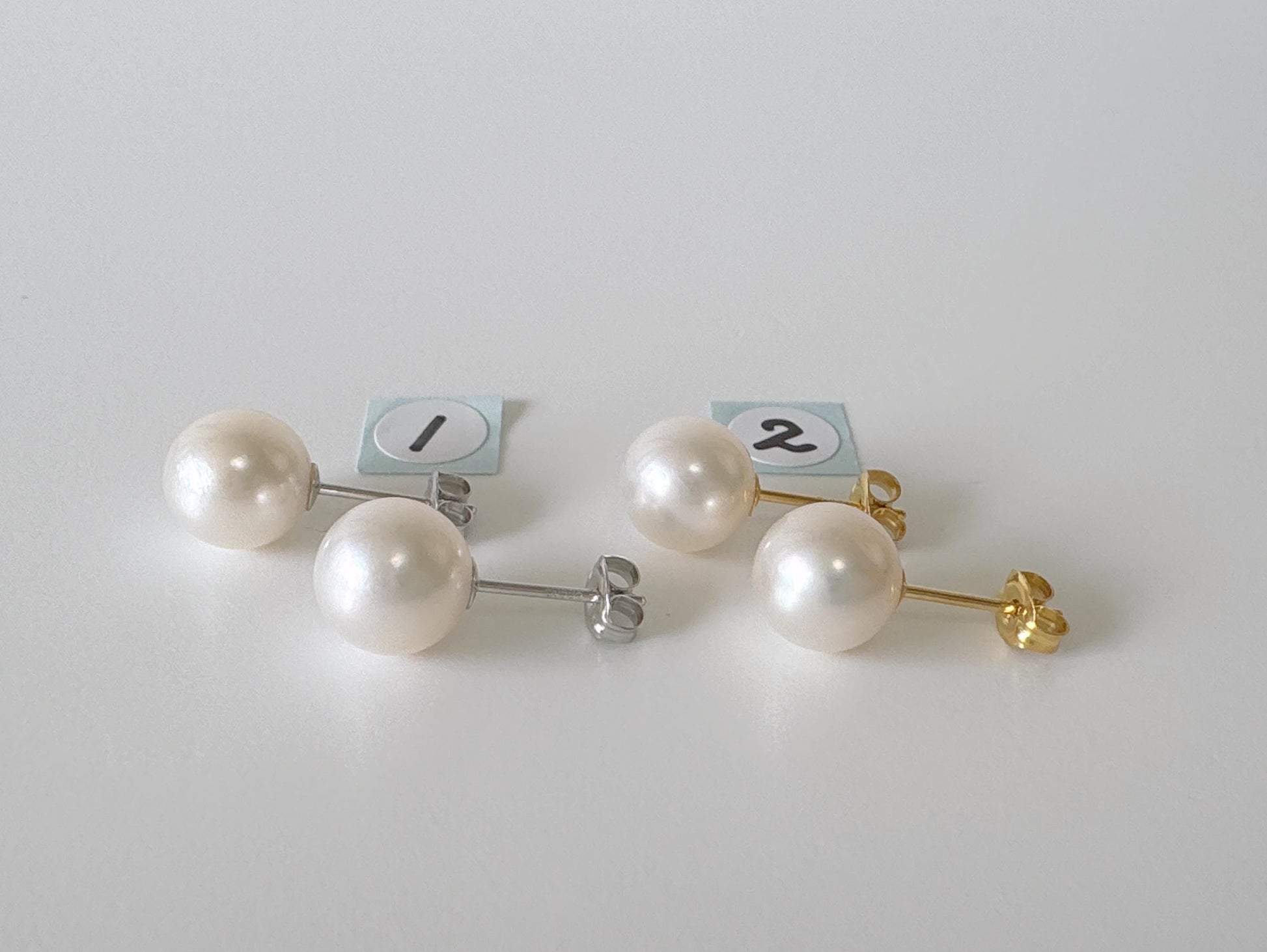 Japanese White Akoya Pearl Stud Earrings, 8.5mm, Silver 925 Post/Ear Nuts, Genuine Akoya Pearl, Salt water cultured pearl