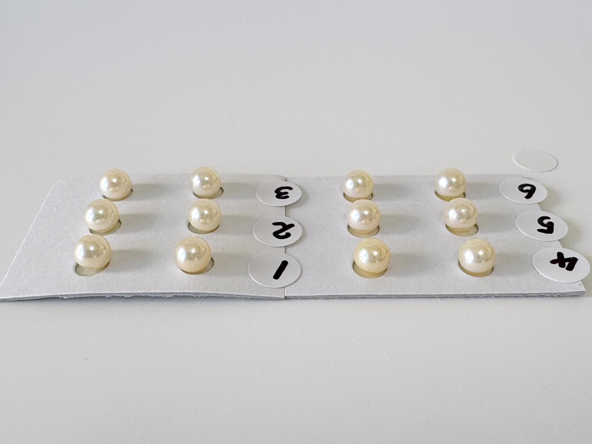Japanese White/Off-white Akoya Cultured Pearl 5-5.5mm, Genuine Akoya Pearl, Half-Drilled Round loose, Price per Pair, Salt water pearl