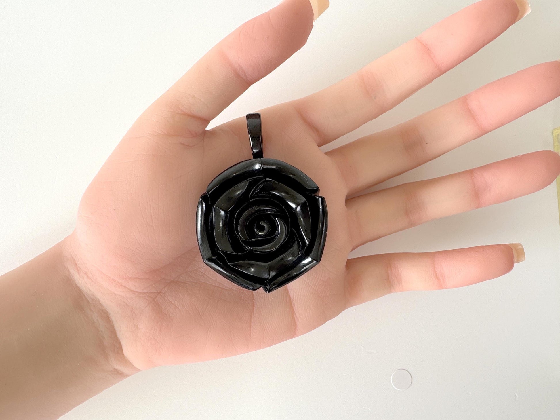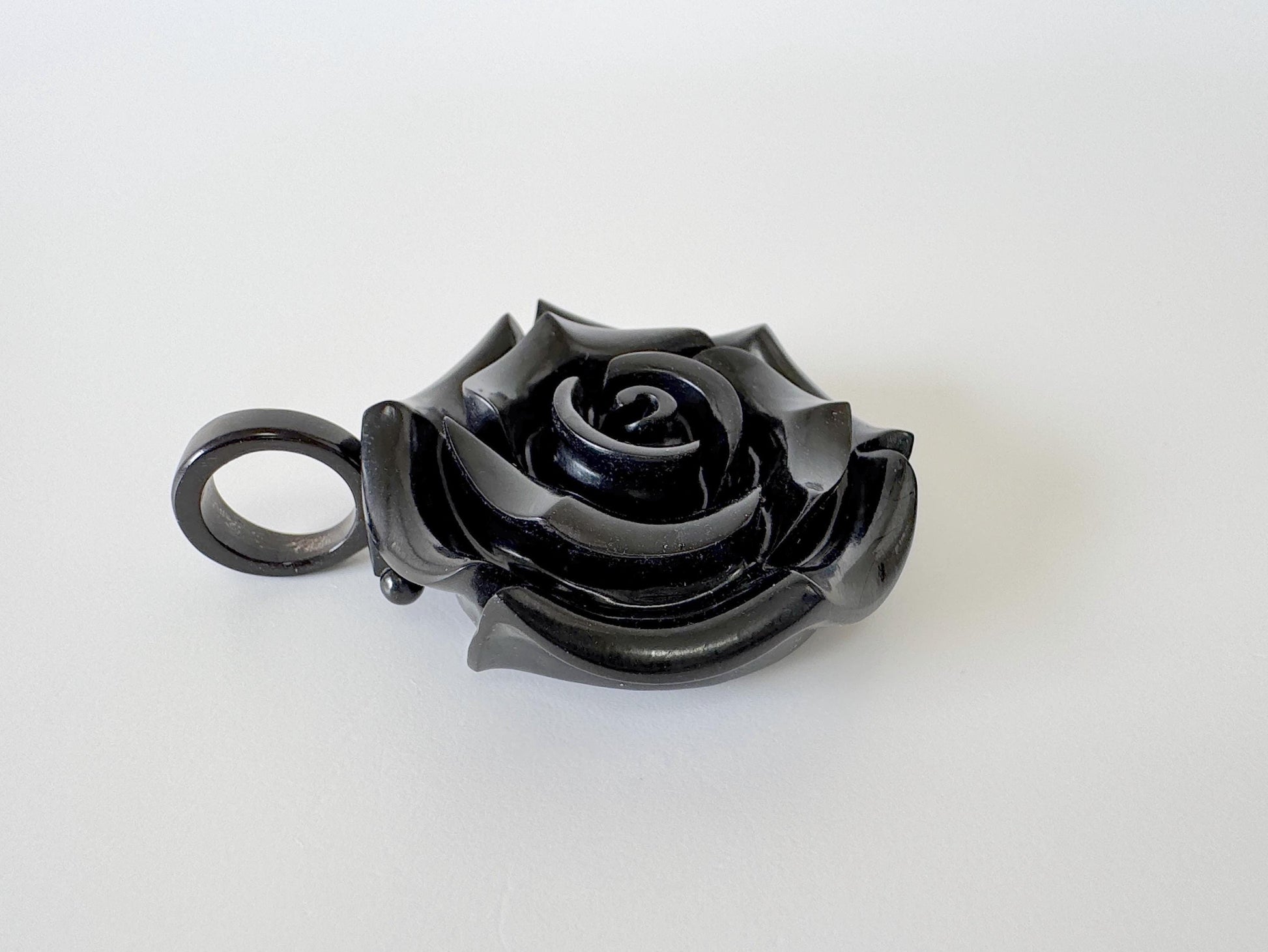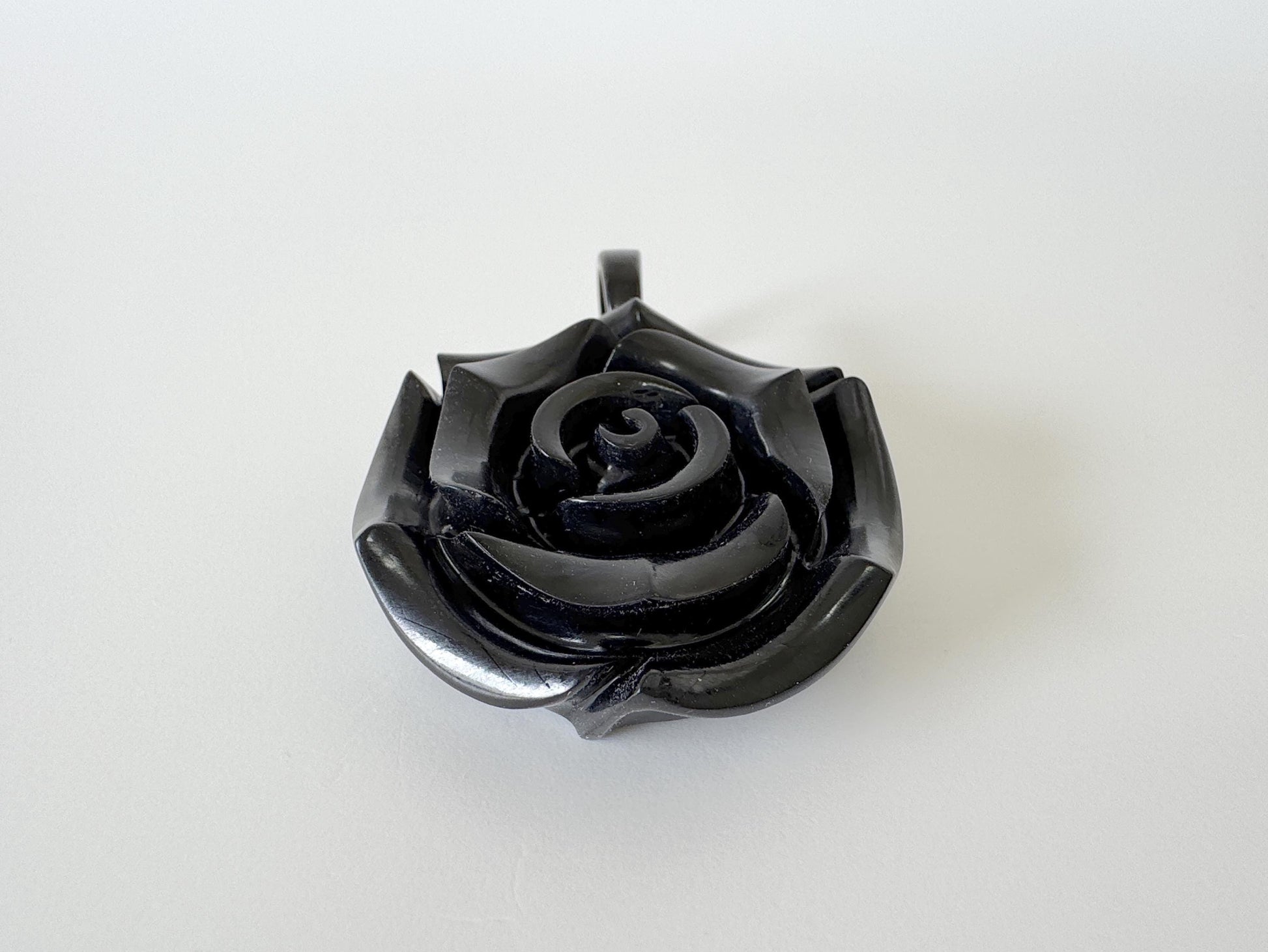 Jet Rose Carving Pendant, 40mm Diameter Rose, Price per Piece
