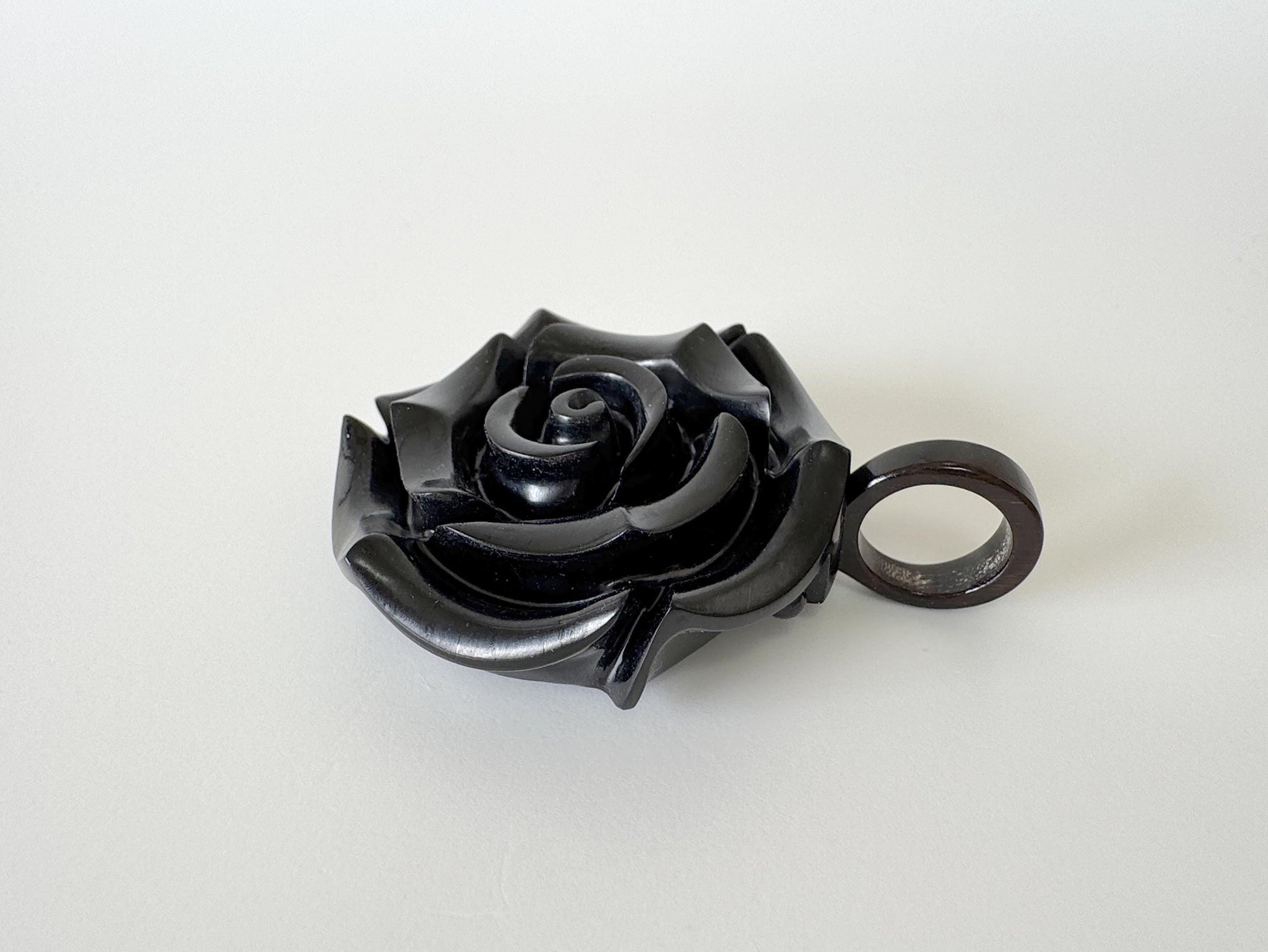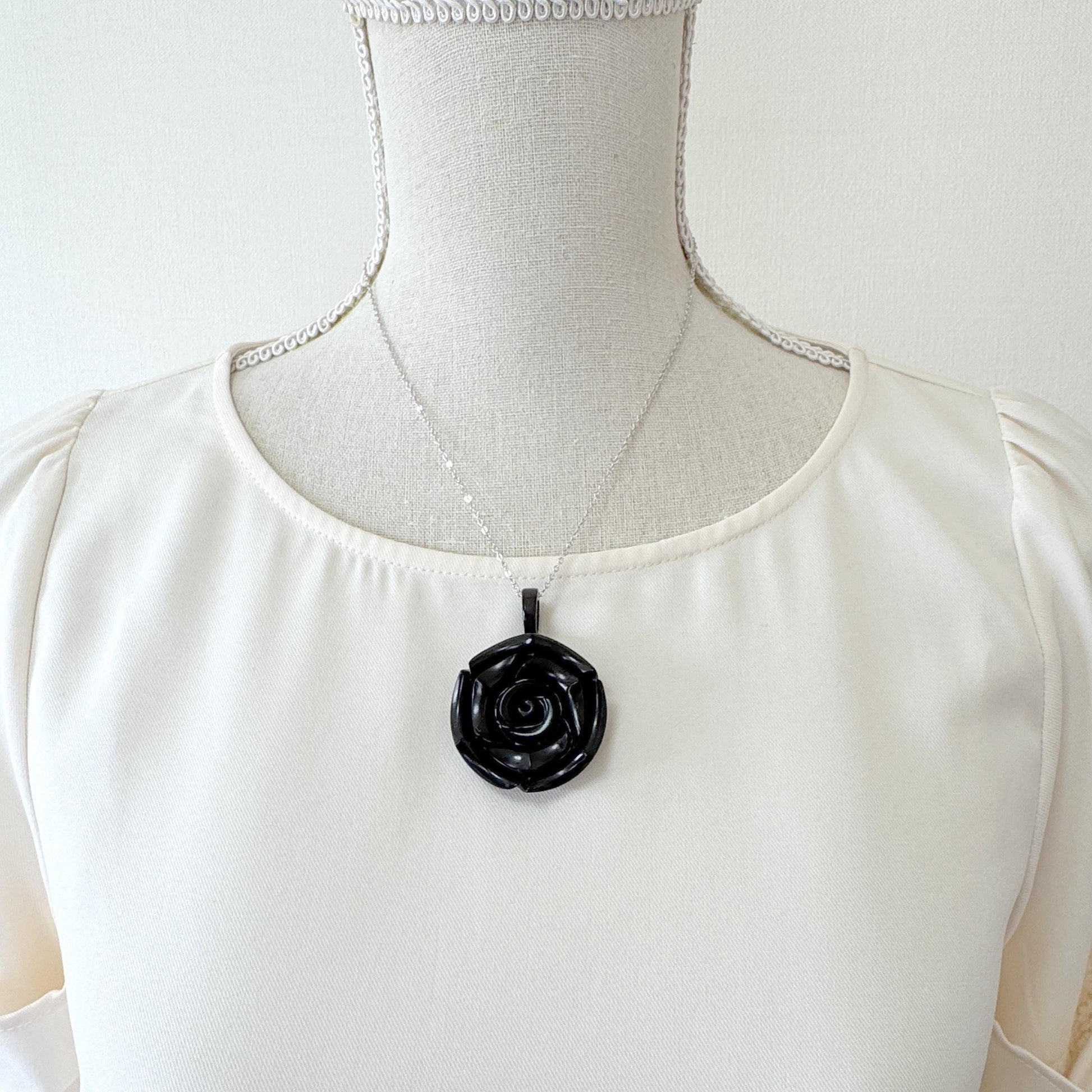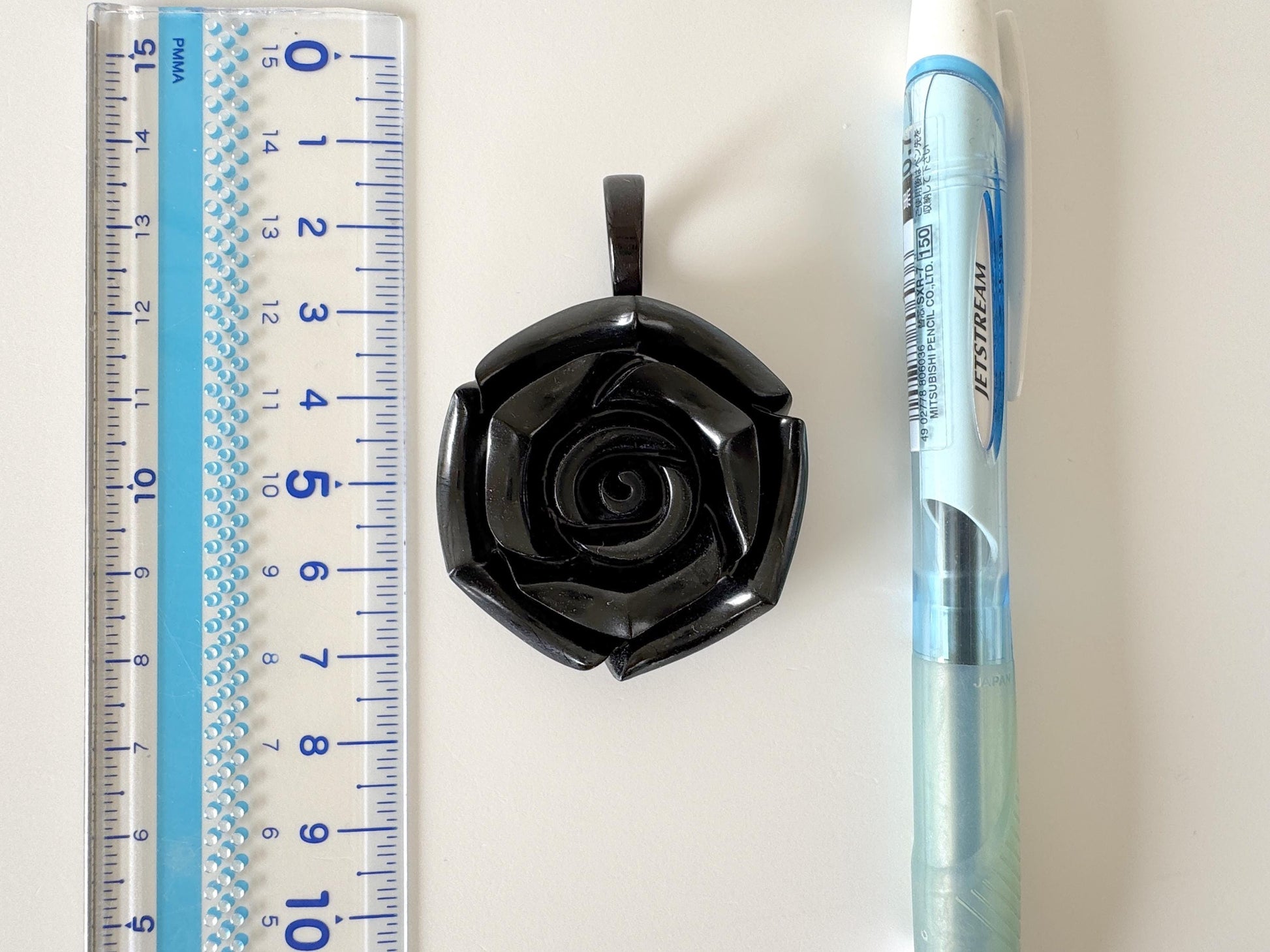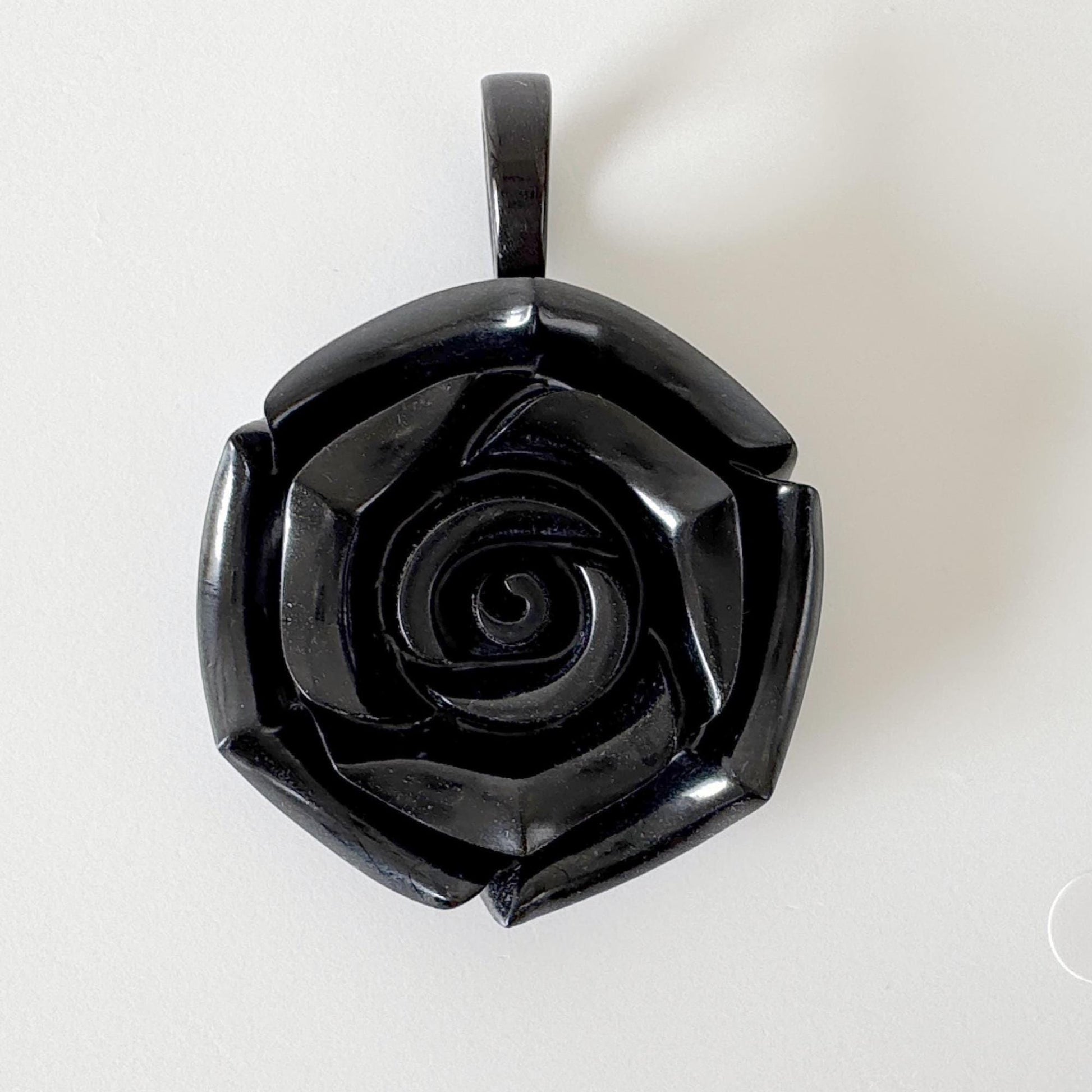 Jet Rose Carving Pendant, 40mm Diameter Rose, Price per Piece