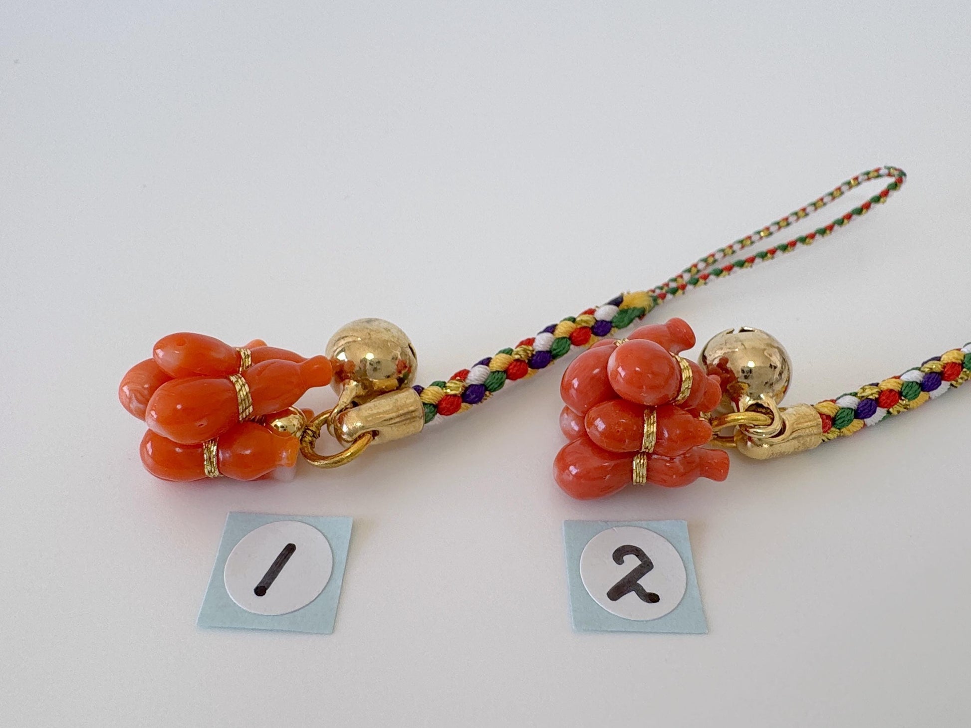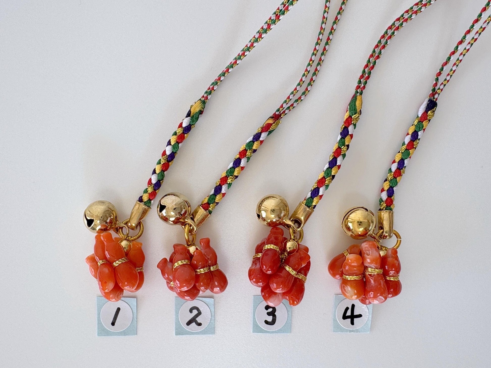 Lucky charm, Natural Aka (red) coral Six Calabash key strap, Netsuke strap, Natural color precious coral