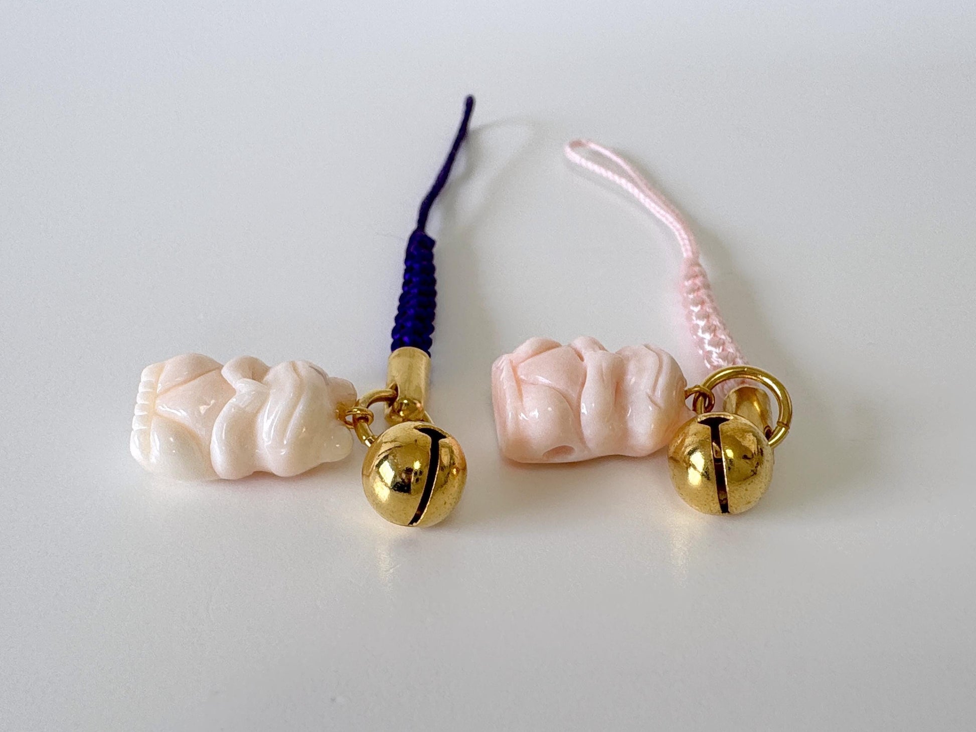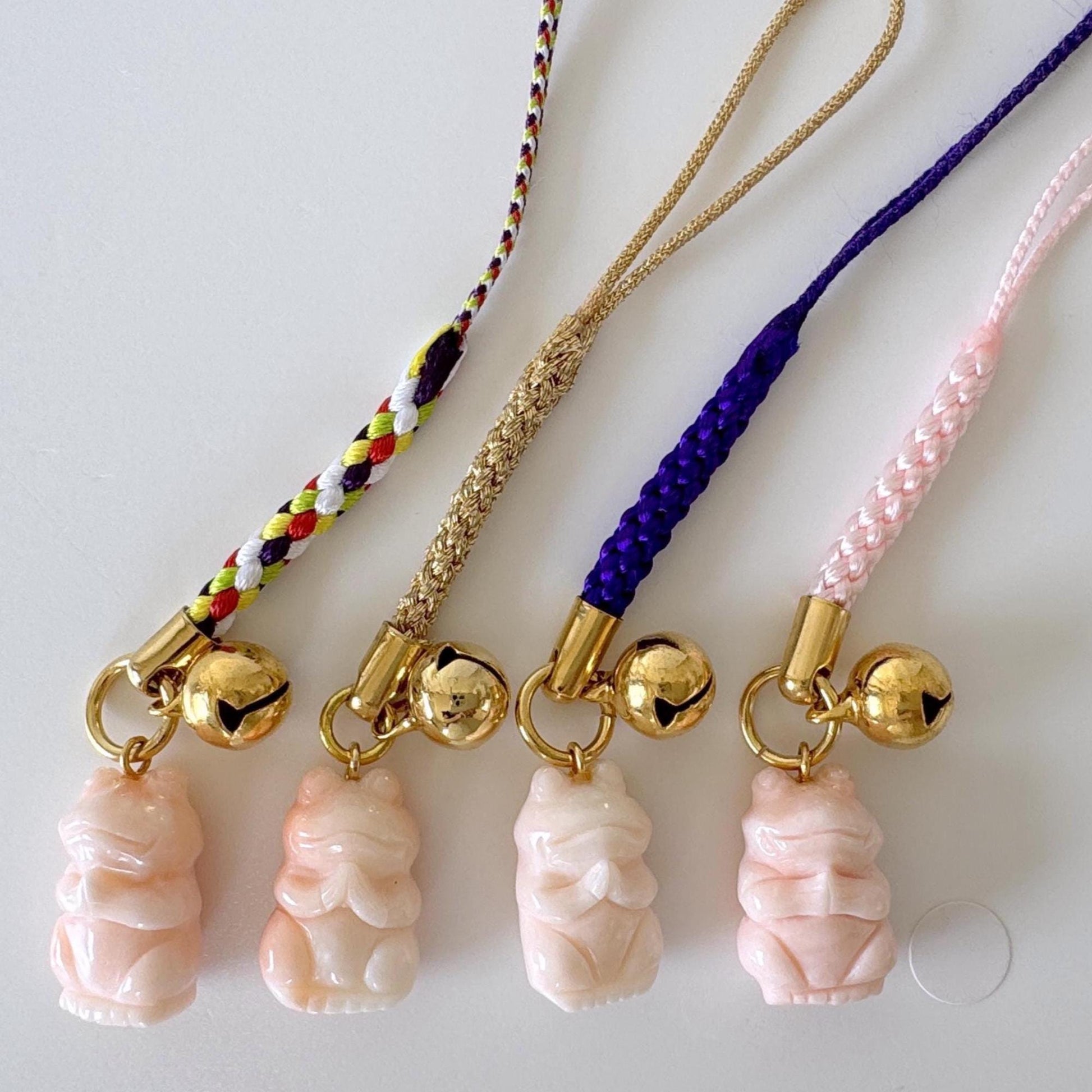 Lucky charm, Natural Deep sea coral Praying Frog key strap, Netsuke strap, Natural color precious coral