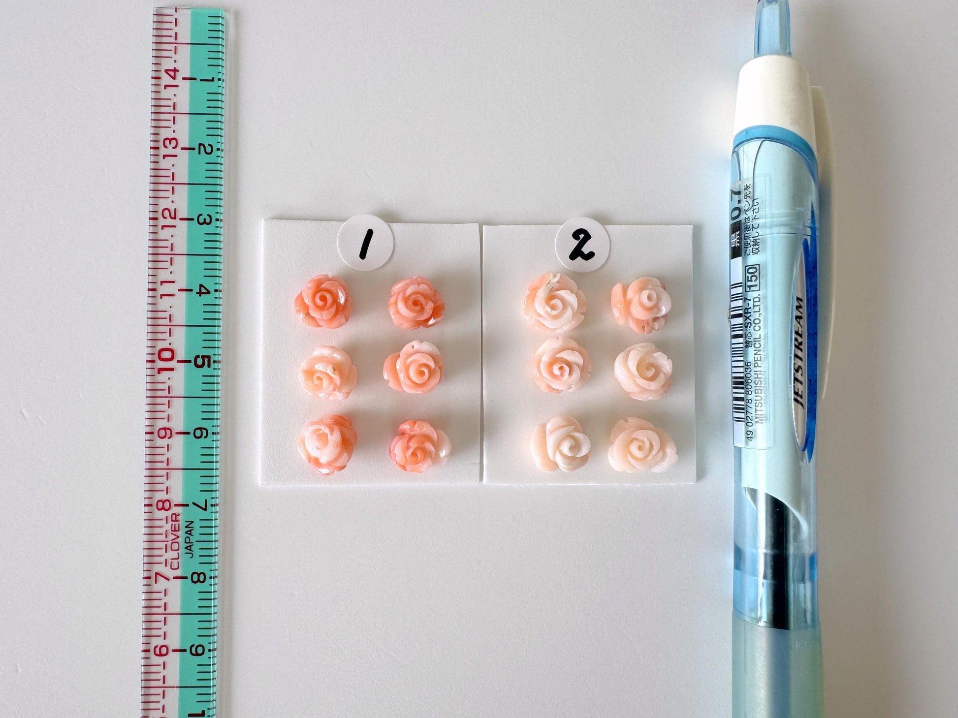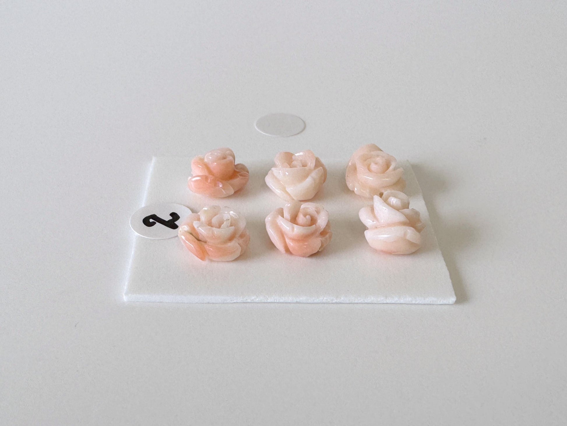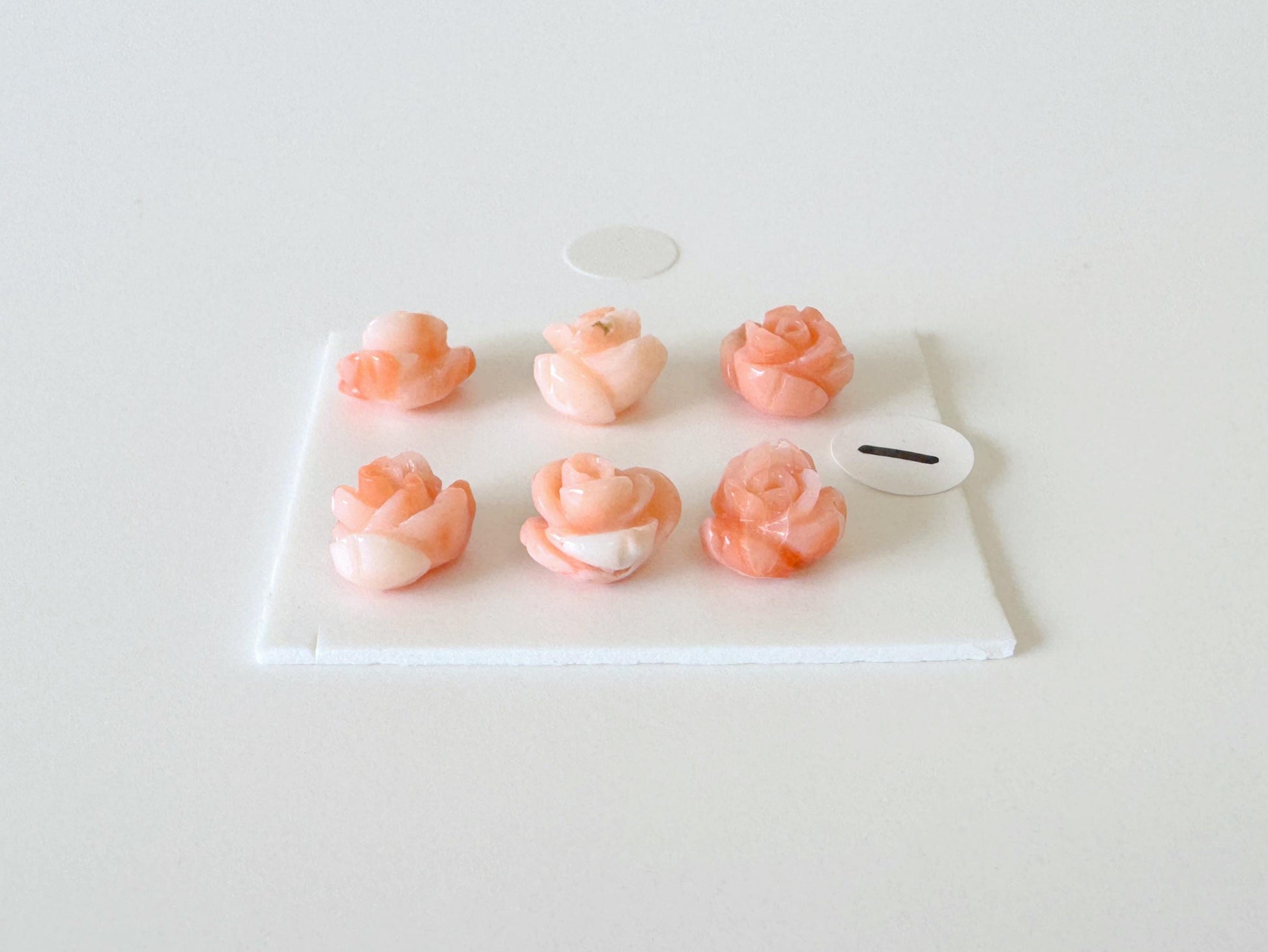 Mix set of 6 pcs of Natural Pink Deep Sea Coral Rose Carvings 7-9mm, Natural color, Value priced for reason of defects, For Jewelry Making