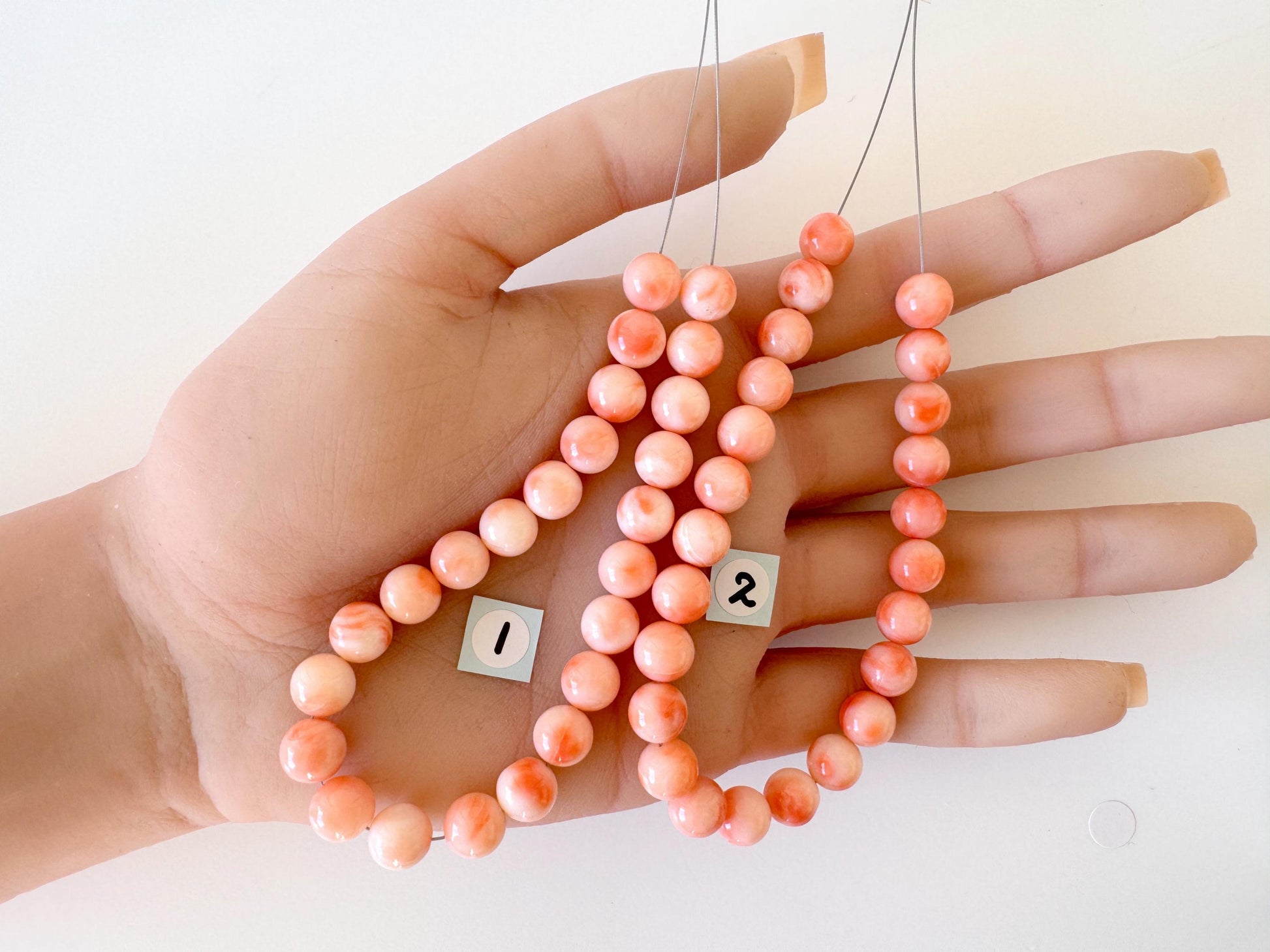 ※As can be seen on most of the deep sea coral, there are natural cracks and streaks on the surface of some beads.