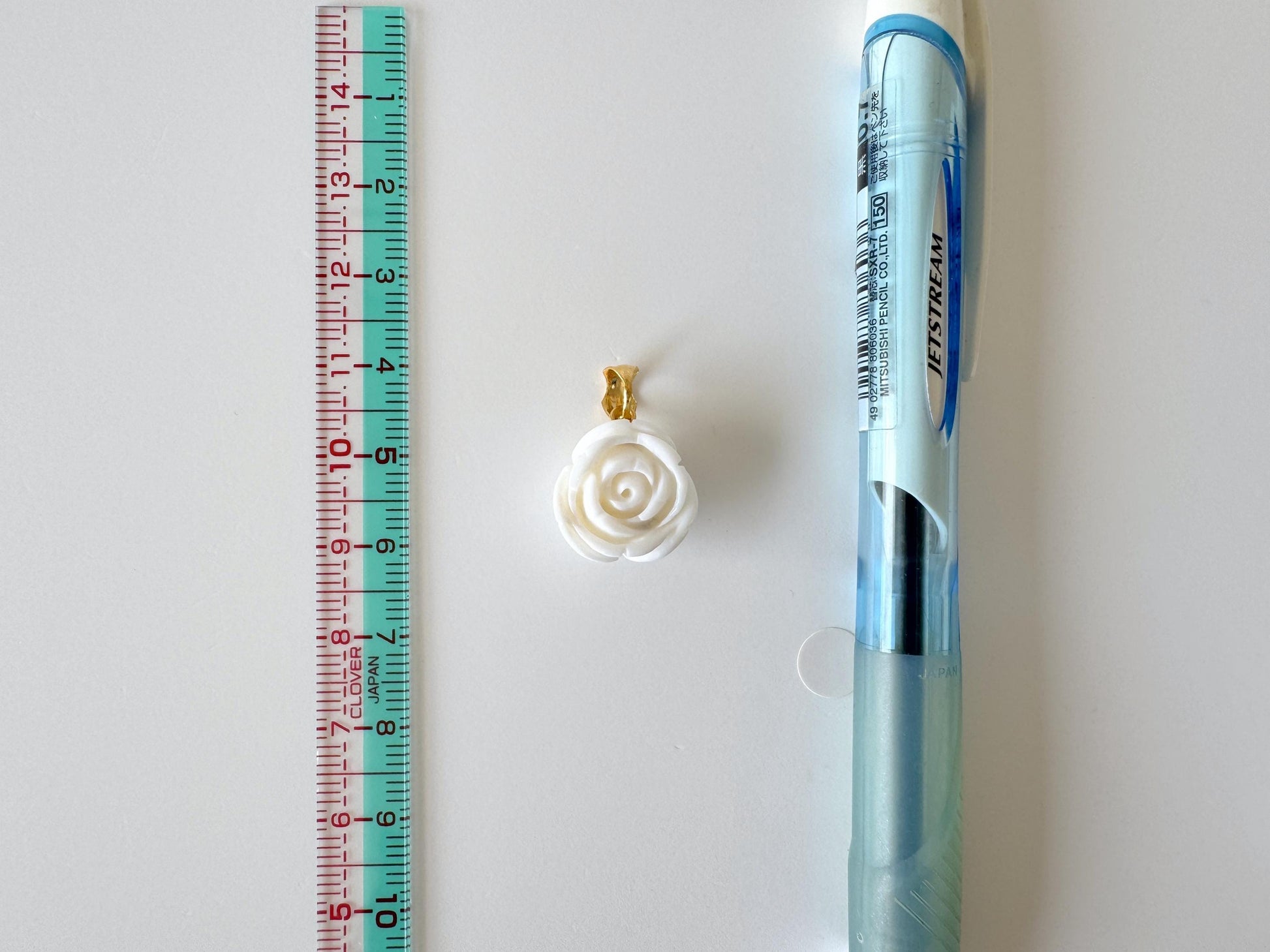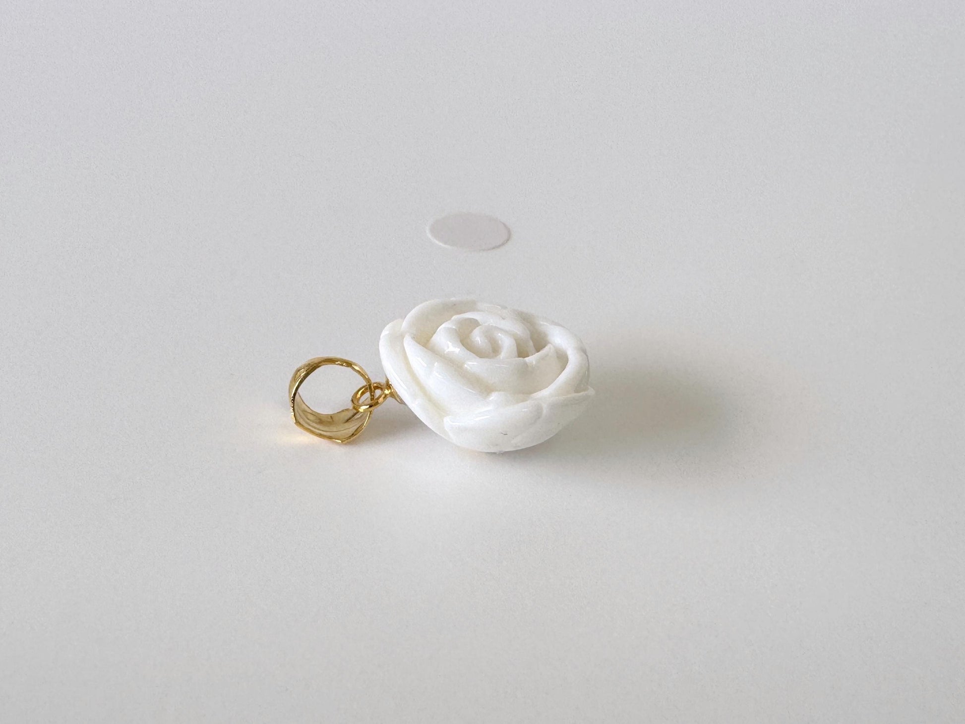 Natural White Coral Rose Pendant, 15.3x15.3mm Rose, Natural White Color Coral, Silver (gold plated) Bail, Genuine Precious Coral Pendant