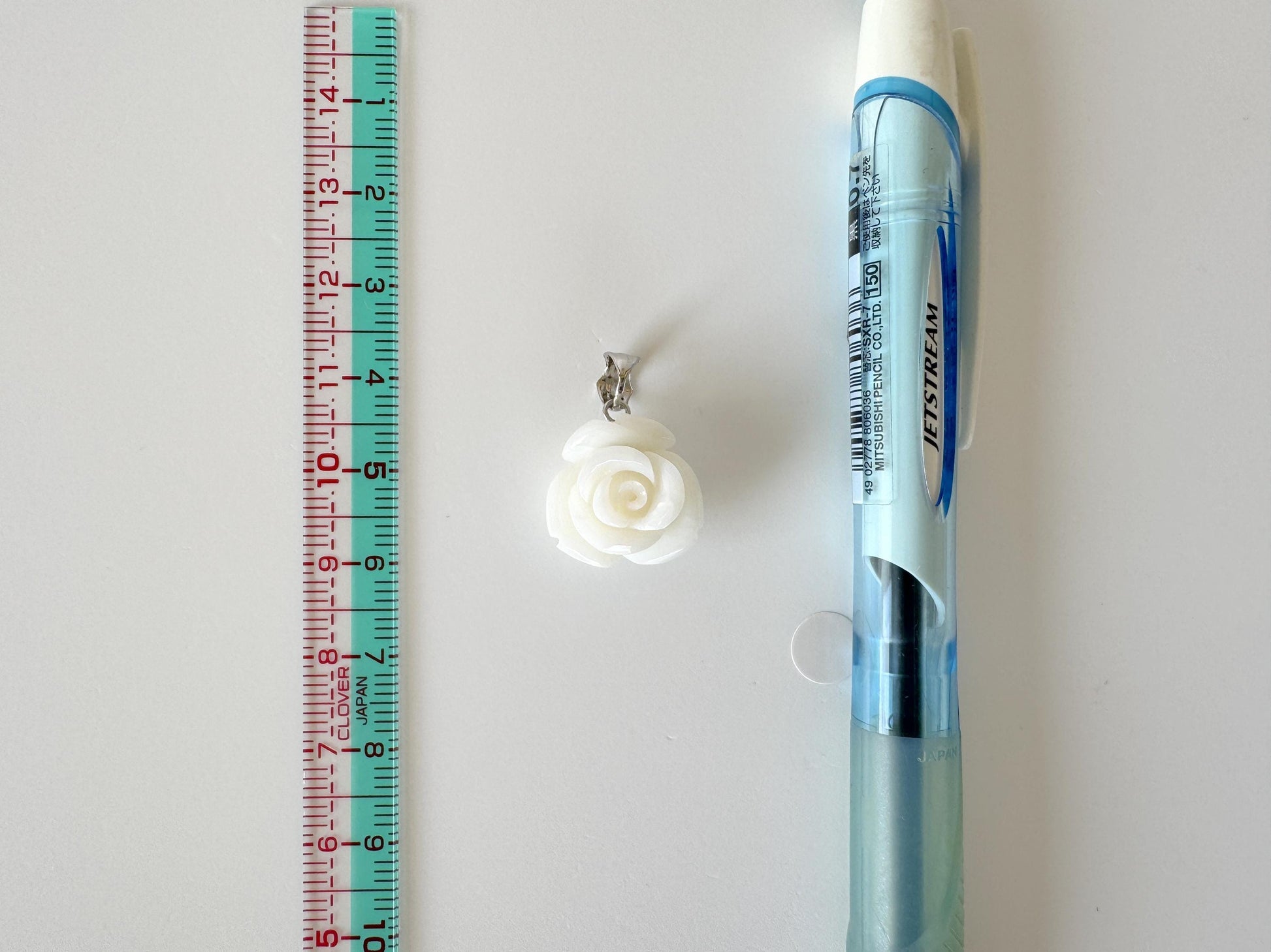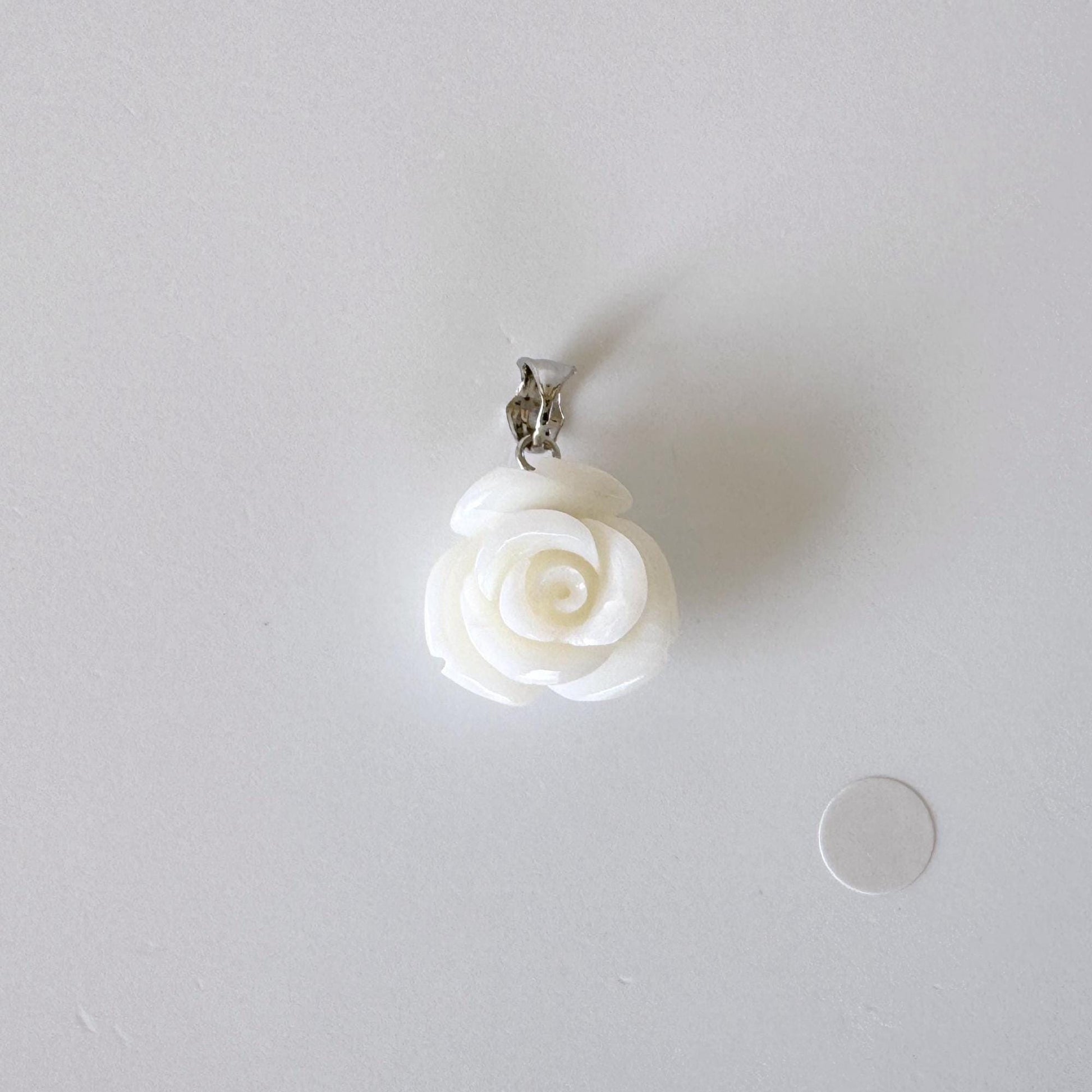 Natural White Coral Rose Pendant, 16x16.3mm Rose, Natural White Color Coral, Silver (rhodium plated) Bail, Genuine Precious Coral Pendant