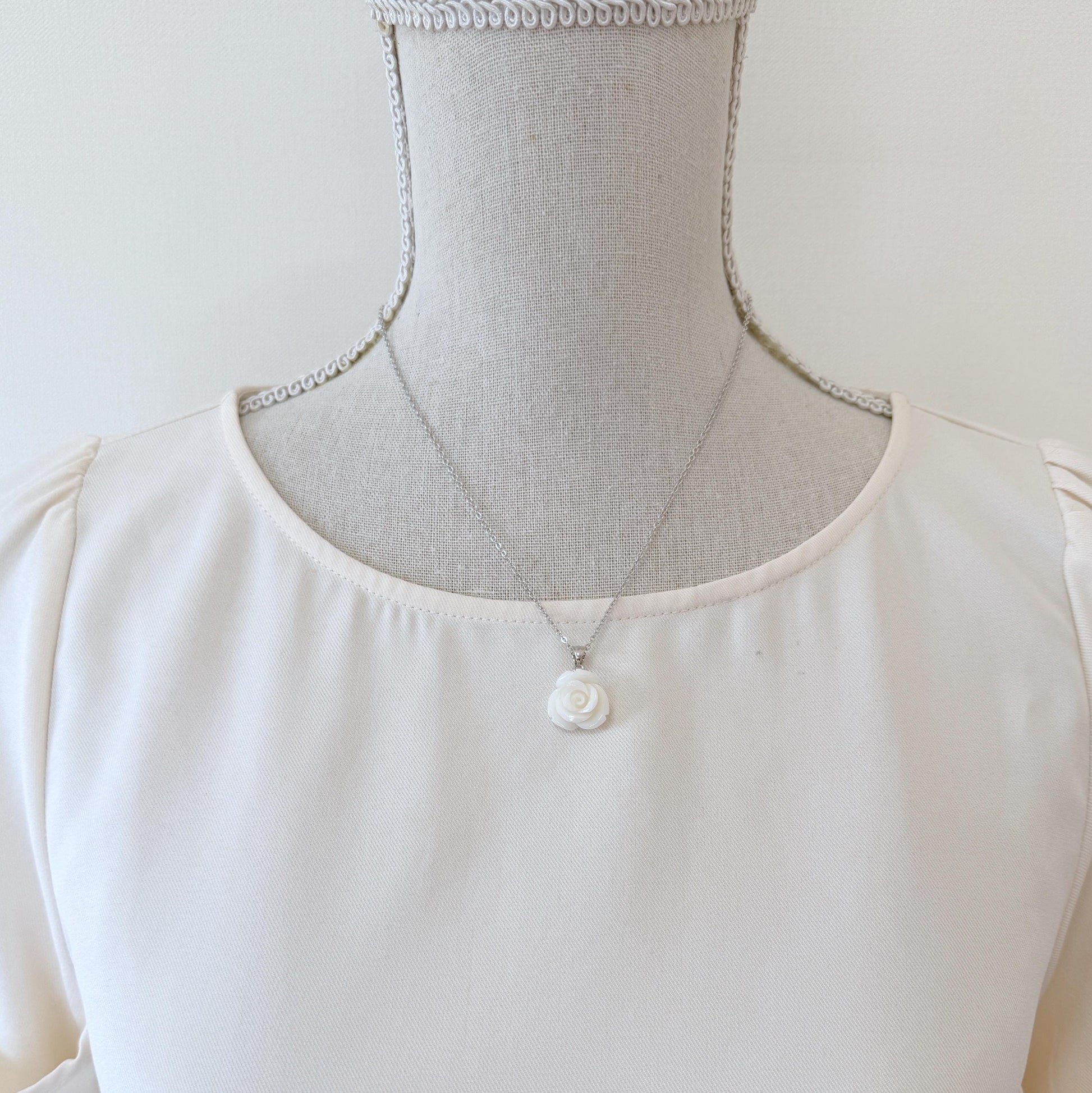 Natural White Coral Rose Pendant, 15x15mm Rose, Natural White Color Coral, Silver (rhodium plated) Bail, Genuine Precious Coral Pendant