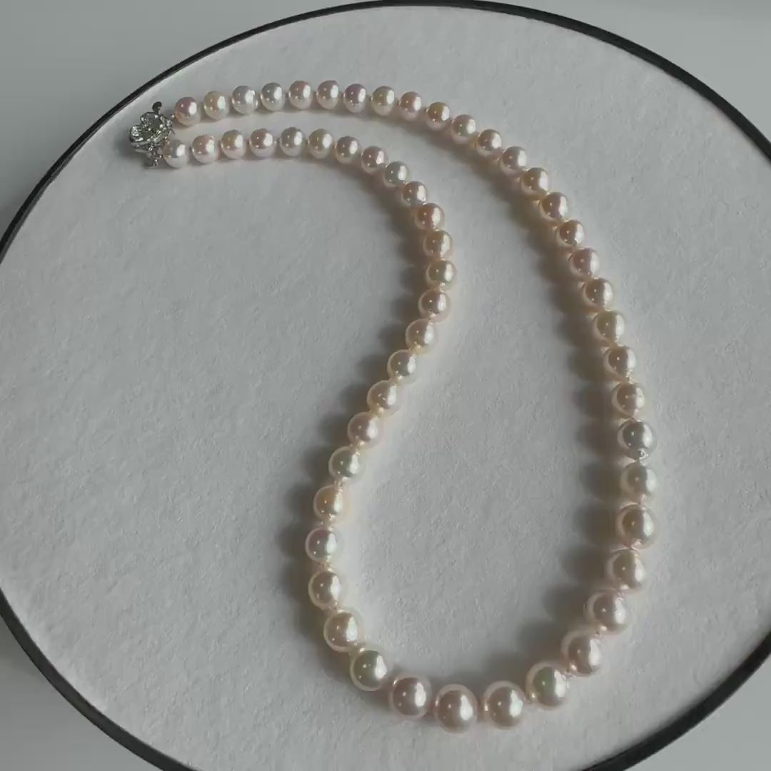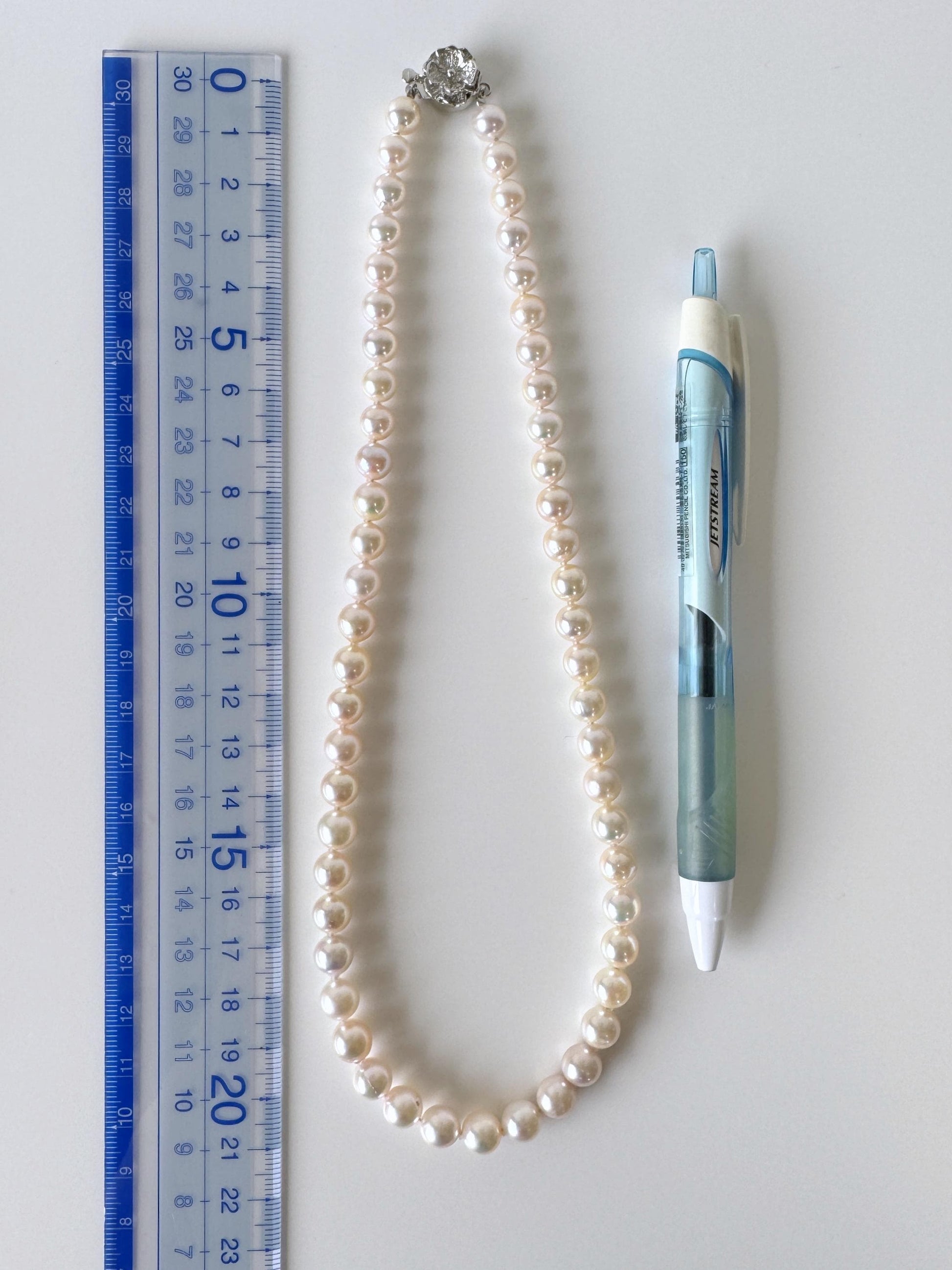 Necklace, 6.9-8.3mm Japanese White Akoya Pearl Necklace with Silver Clasp, Genuine Akoya Pearl, 45cm, 17.7in, Cultured Salt water pearl