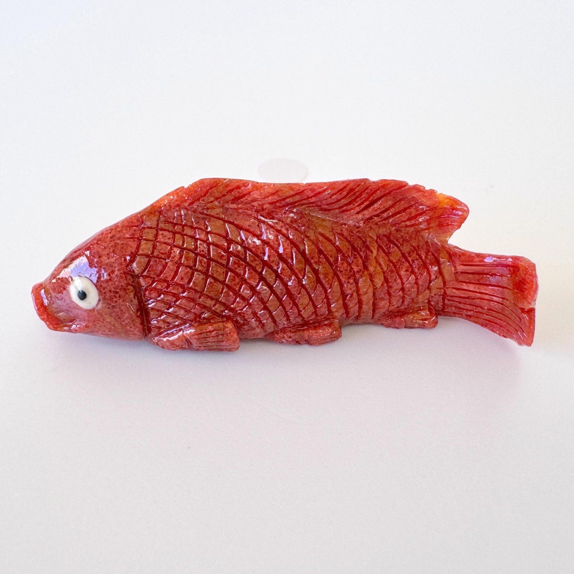 55mm Natural Sponge Coral Carp Carving Loose, Apple Coral Fish Carving, For Display, For Decoration, For Accessory Making
