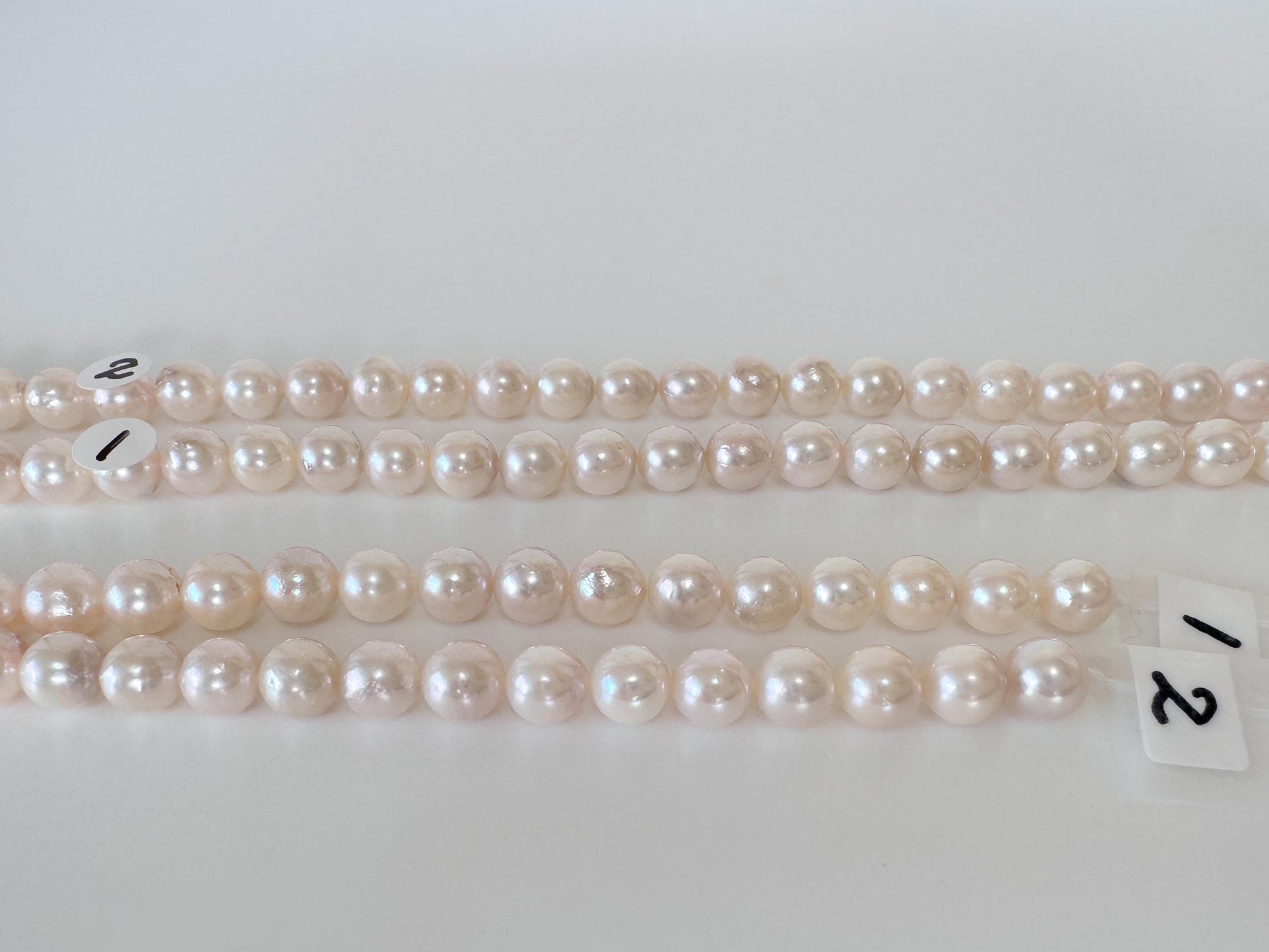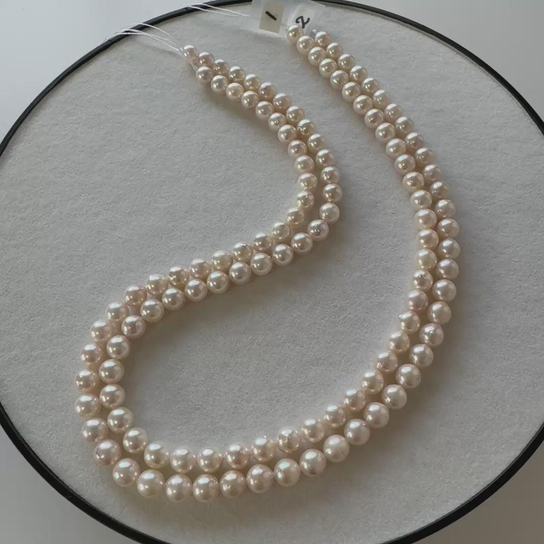 6.5-7mm Japanese White/Pink Akoya Pearl Beads, Genuine Akoya Pearl, Full Strand, 40cm , 15.7", Cultured Salt water pearl