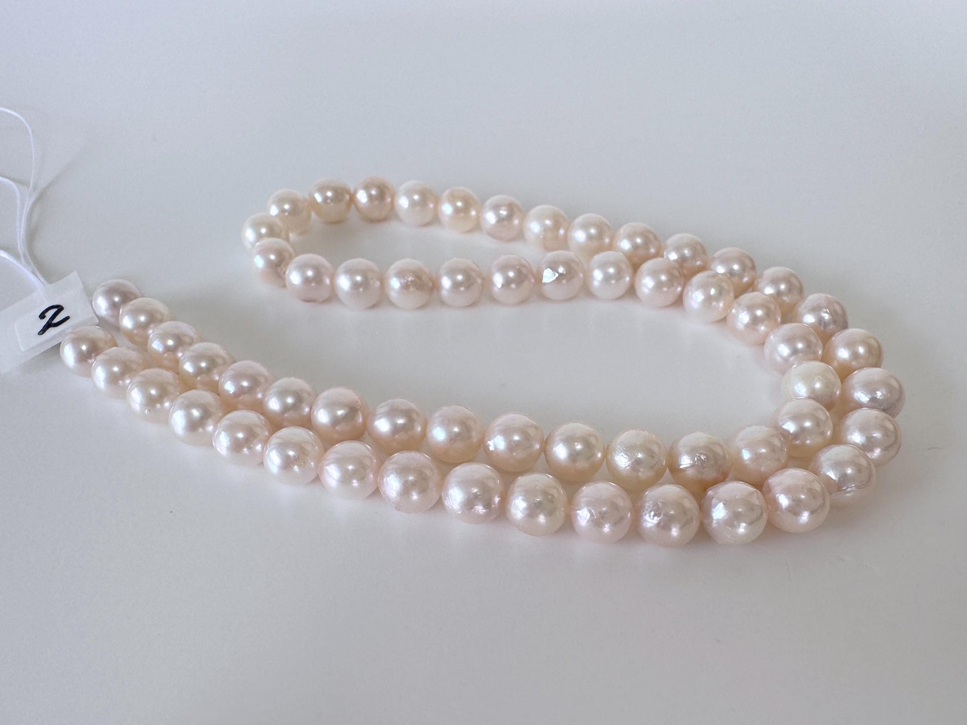 Akoya Pearl Strand: 6.5-7mm White/Pink Cultured Saltwater Pearls