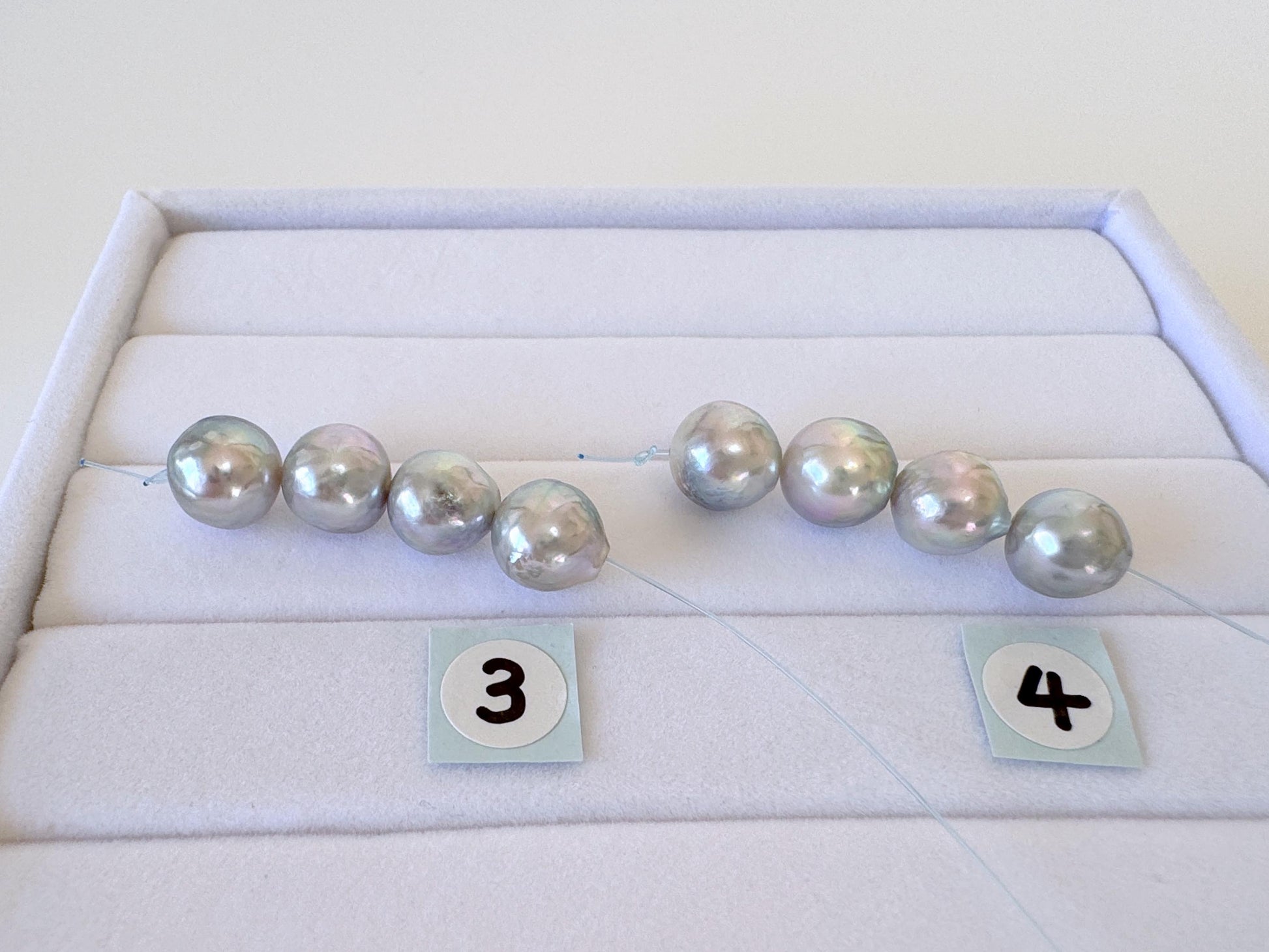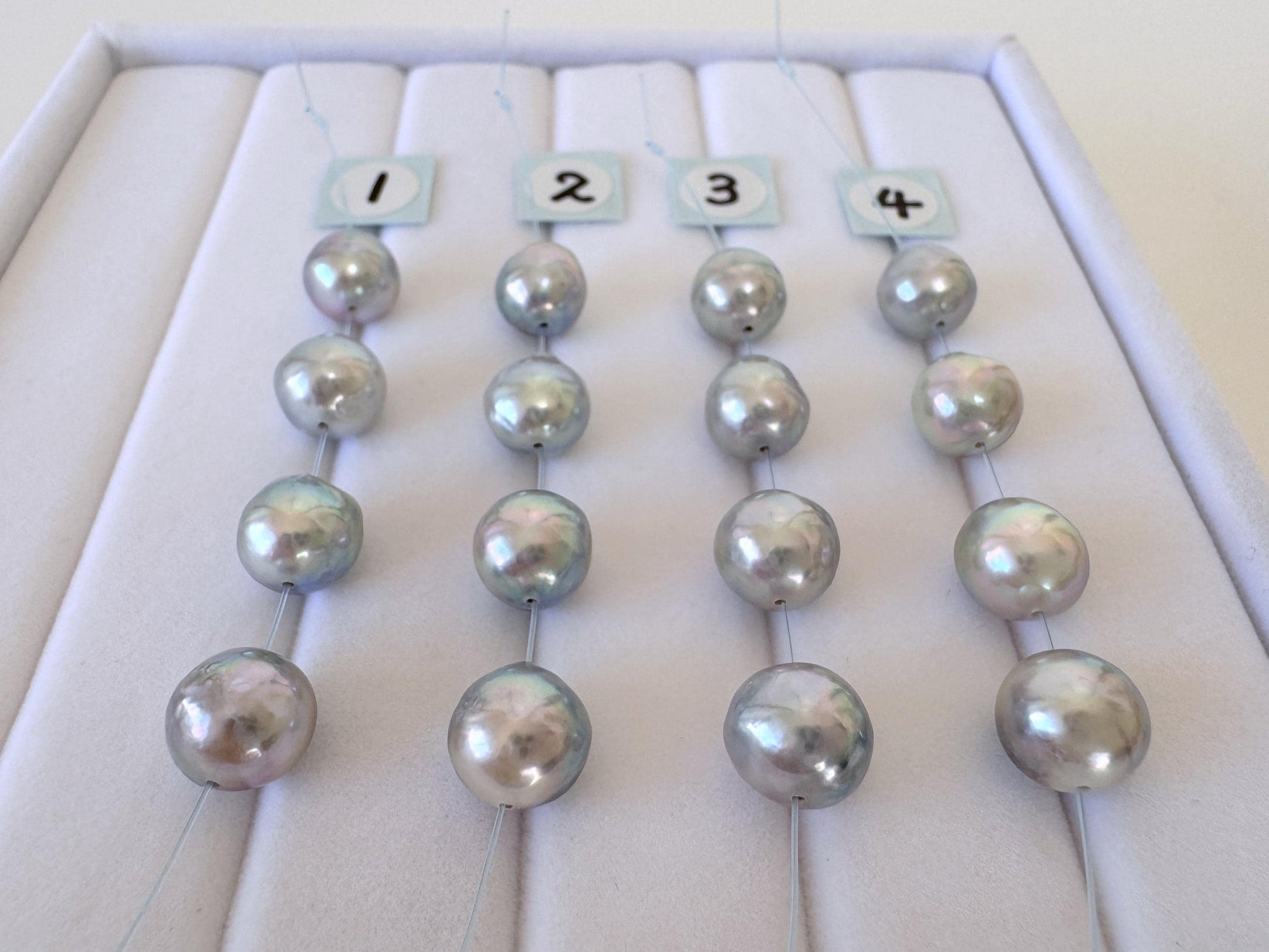 Japanese Akoya Pearl Beads: Natural Blue Silver, Saltwater Cultured (7.5-8mm, Mini Strand of 4 Pieces)