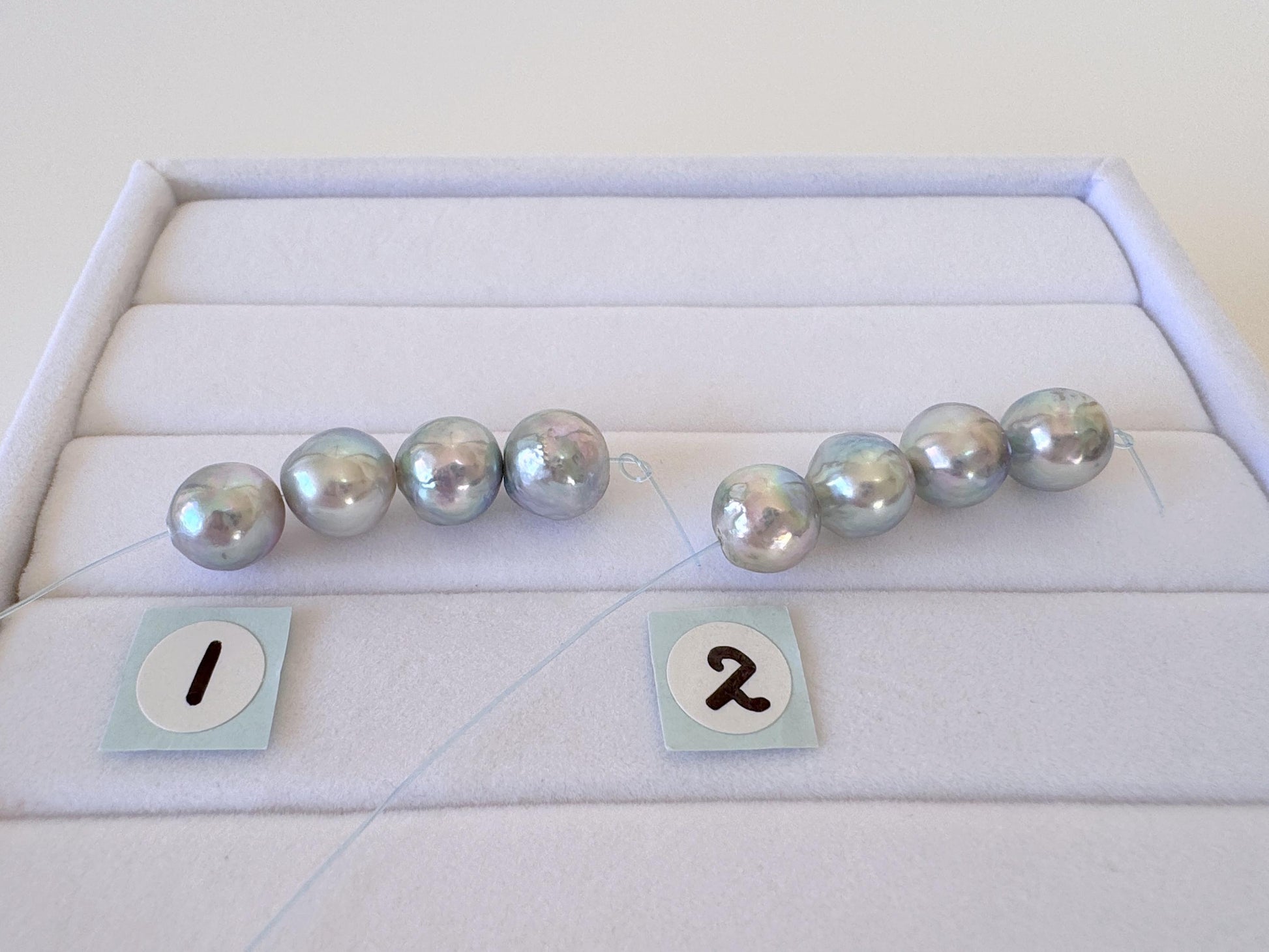 Japanese Natural blue/silver color Akoya Pearl Beads, 7.5-8mm, Mini Strand, Short Strand of 4 Pieces, Cultured in Sea Water