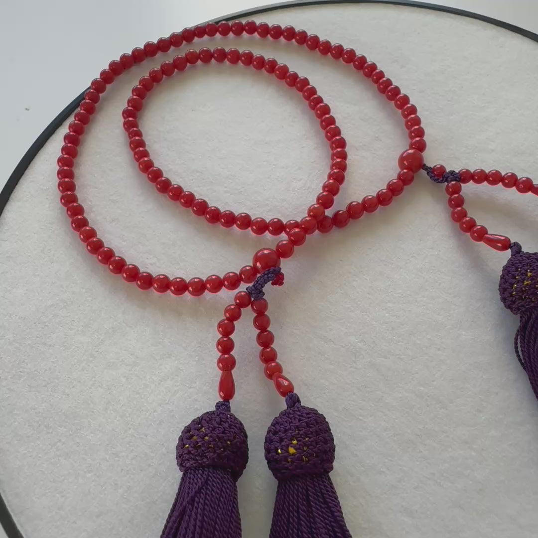 Japanese Rosary, Coral Prayer Beads, Natural Mediterranean Red Coral, 4.5-4.7mm Round Beads, 108 Pcs., Pure Silk, Japanese Style Rosary