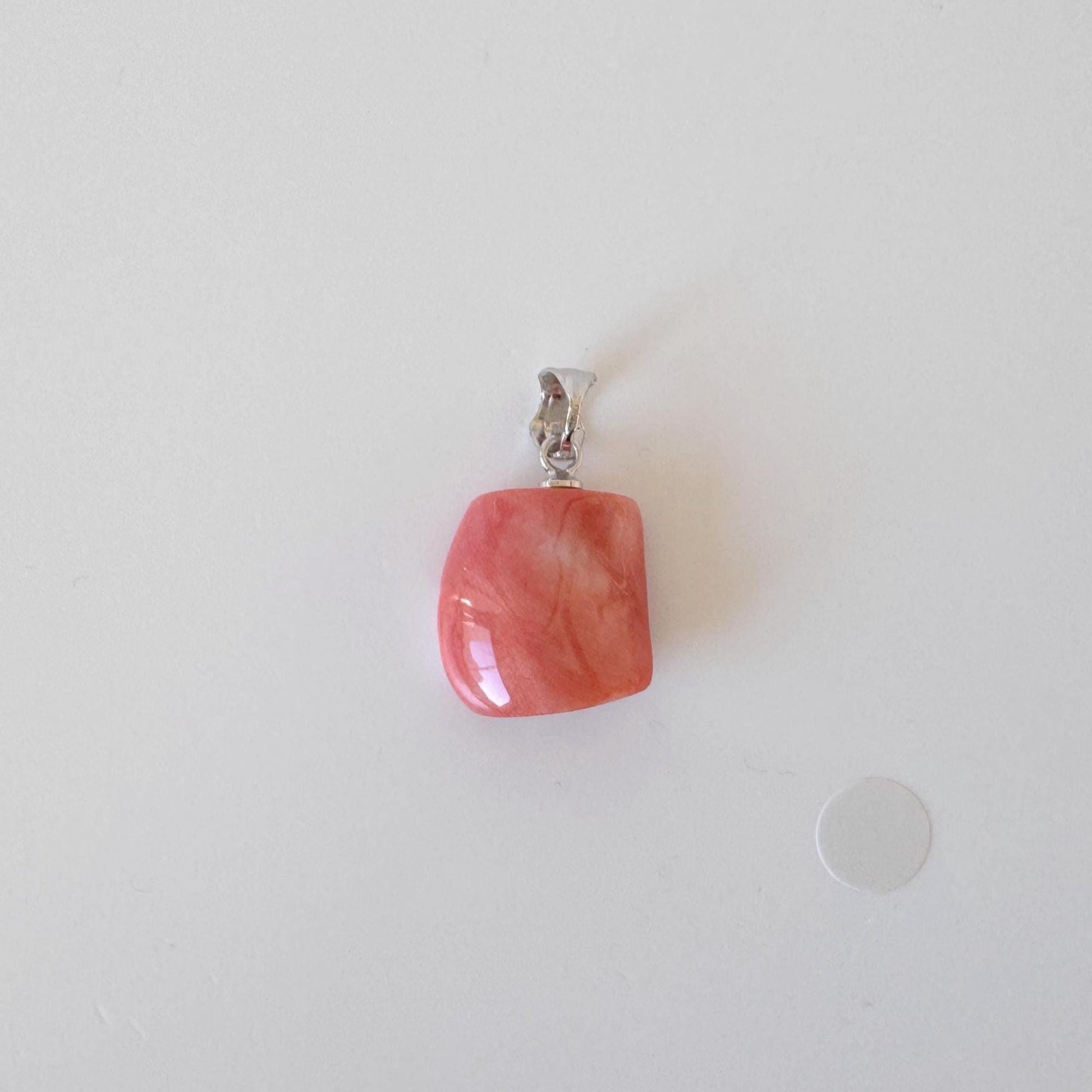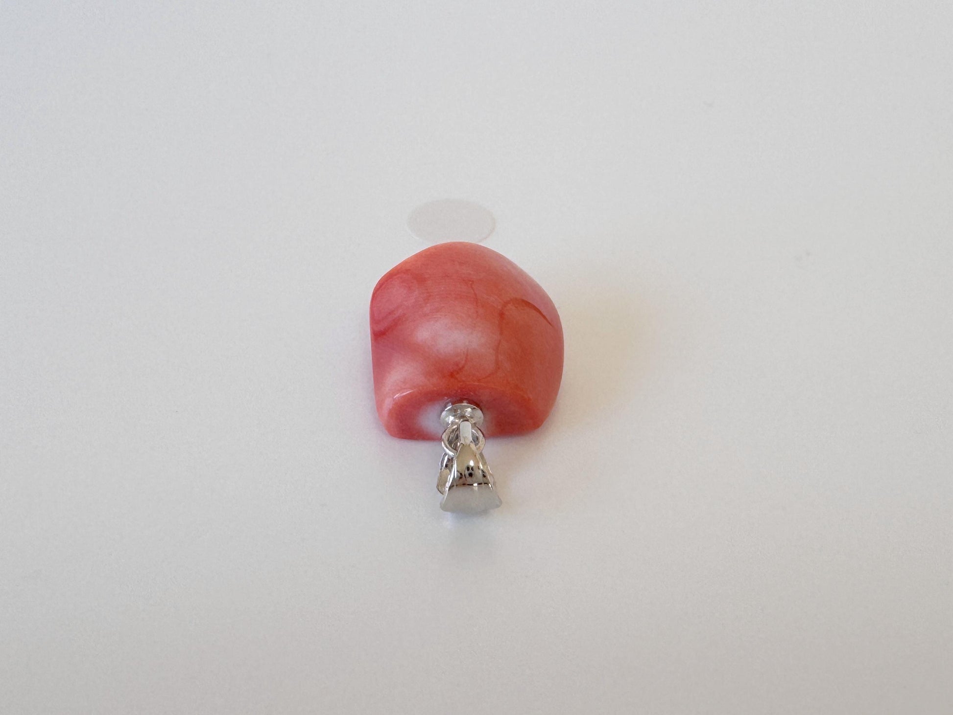 Natural Unique Shaped Japanese Momo Coral Pendant, Natural Orange Color Coral, Silver Bail (Gold-Plated)