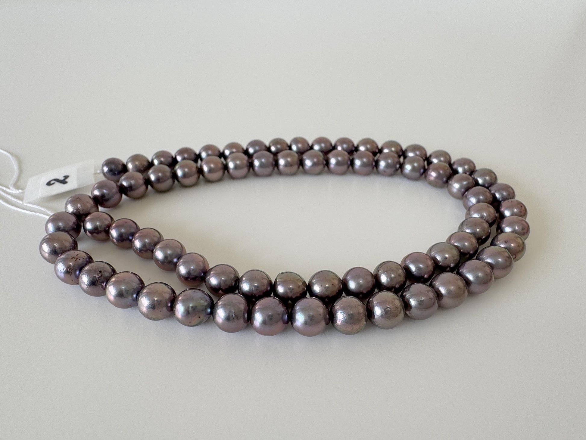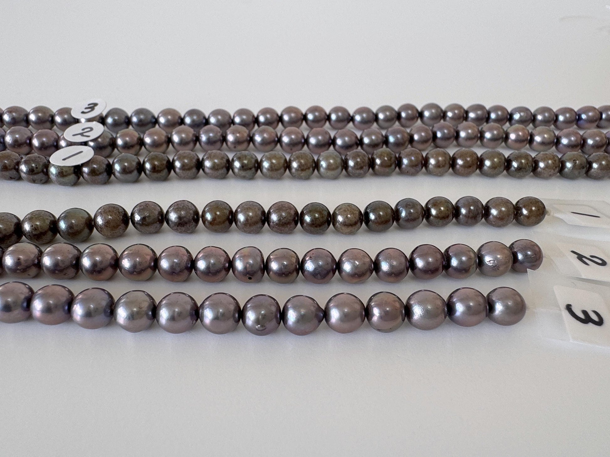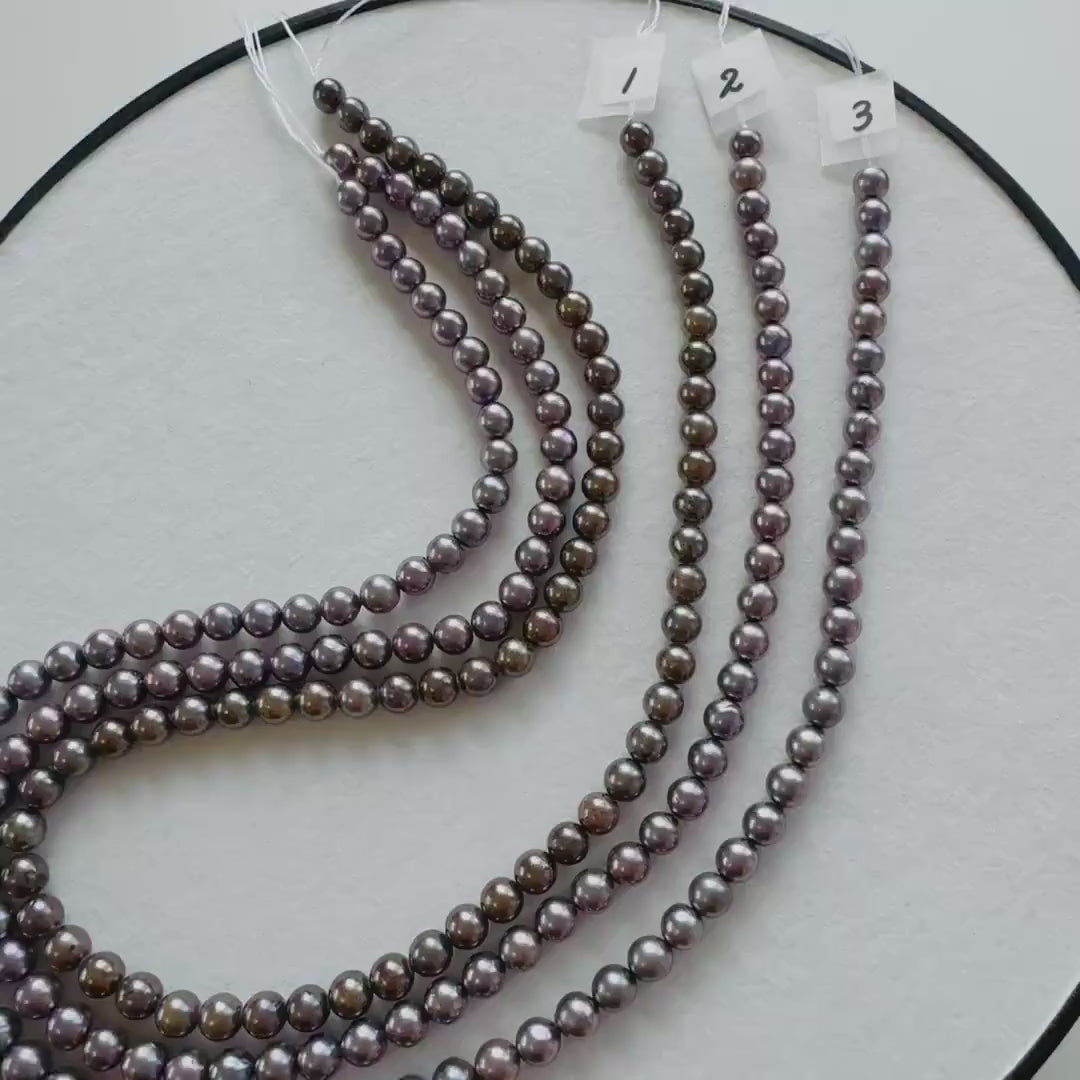5.5-6mm Japanese Black/Black peacock Akoya Pearl Beads, Full Strand, 40cm , 15.7", Salt Water cultured pearl