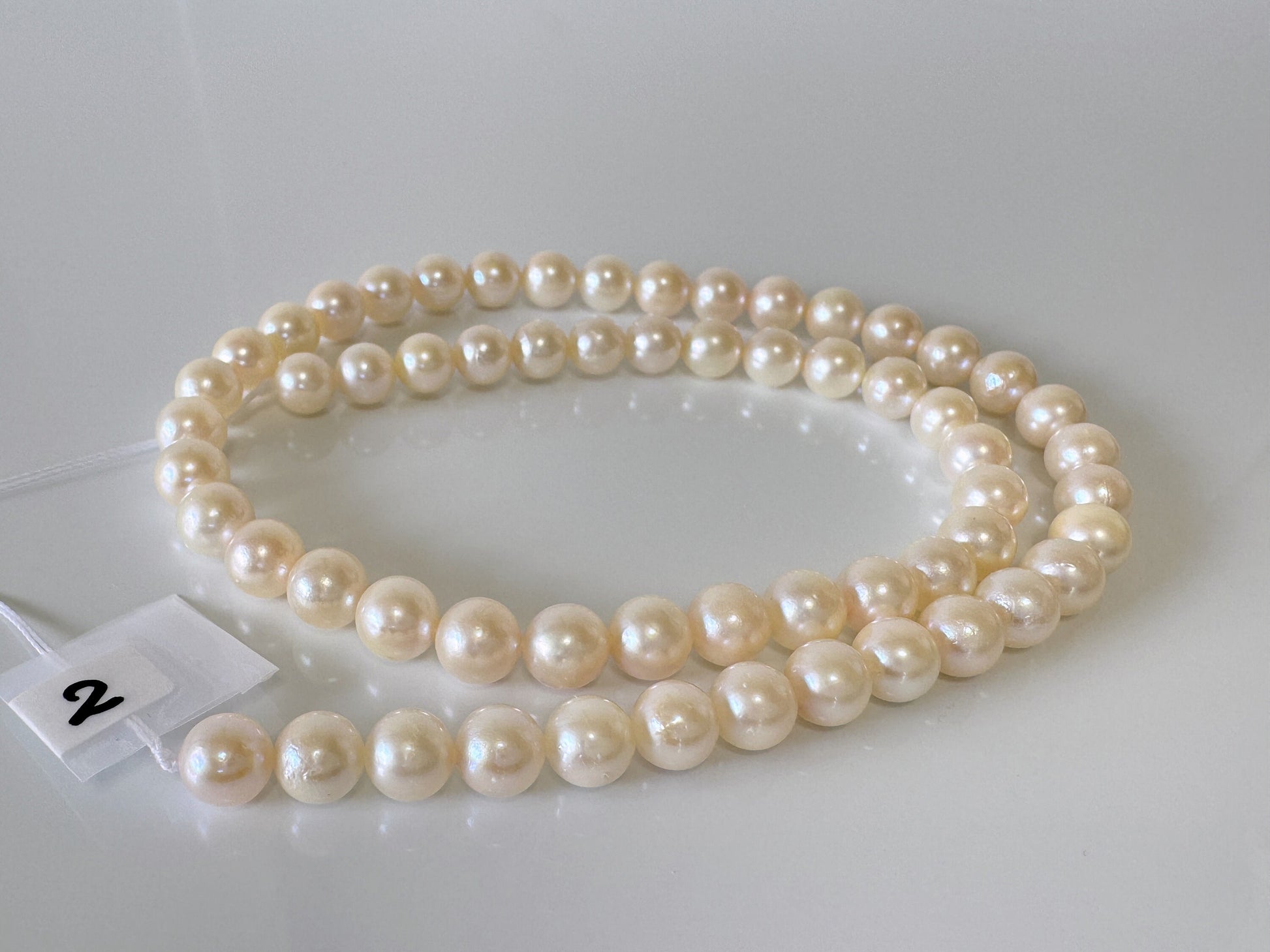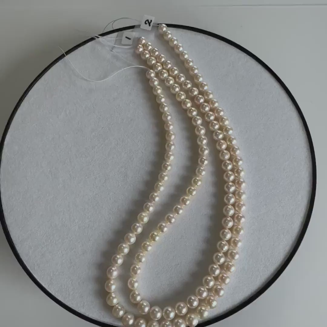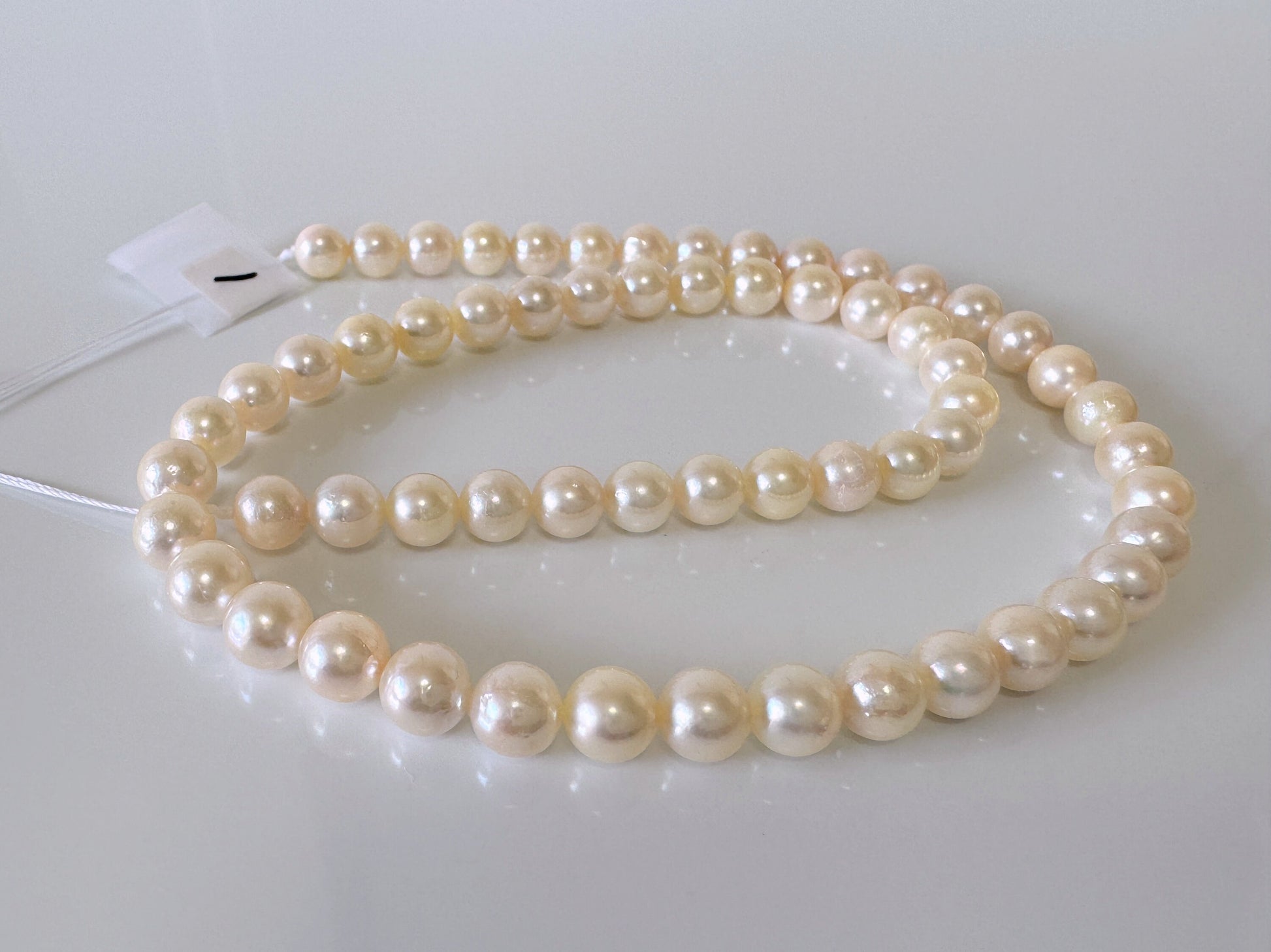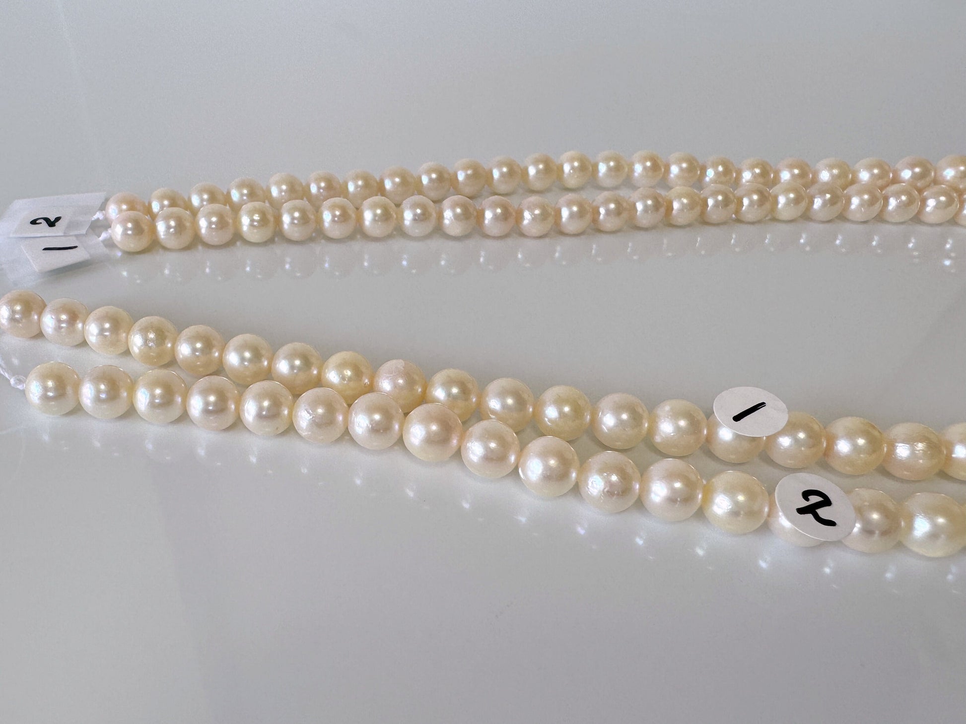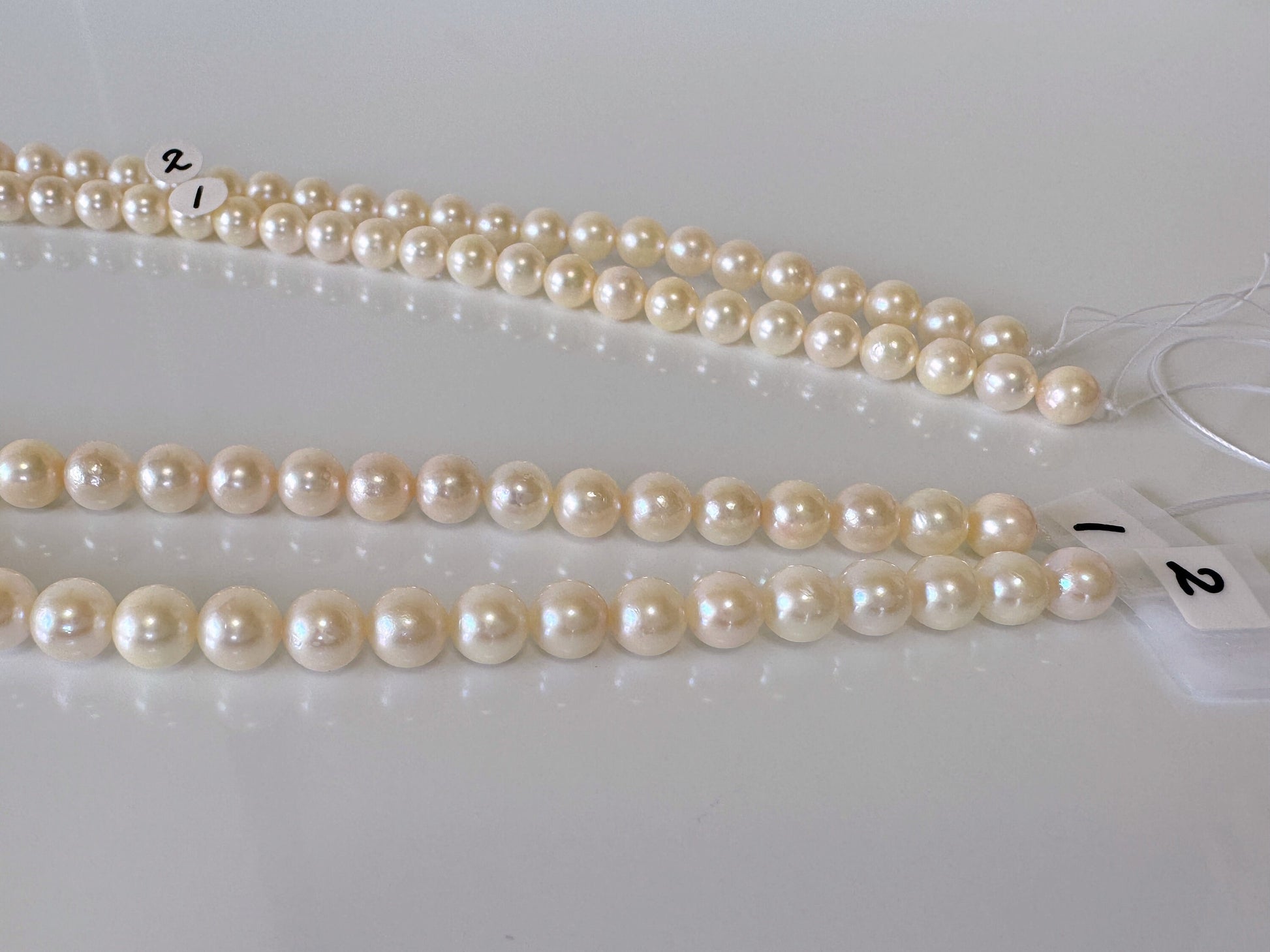 6.5-7mm Japanese Cream White/Off-white Akoya Pearl Beads, Genuine Akoya Pearl, Full Strand, 40cm , 15.7", Cultured Salt water pearl