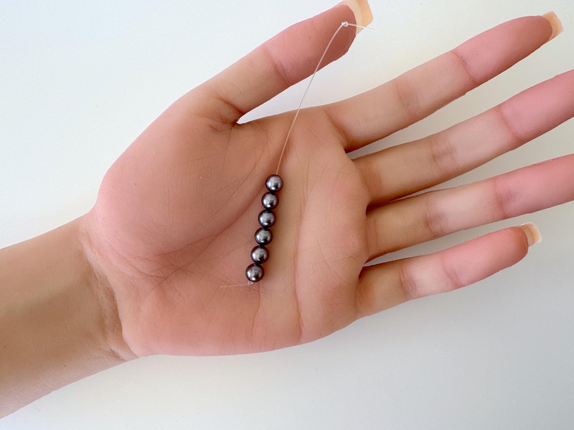 6 Pieces Short Strand of Japanese Peacock Black Akoya Pearl Beads, 5.7-5.9mm, Genuine Akoya Pearl, Cultured in Sea Water