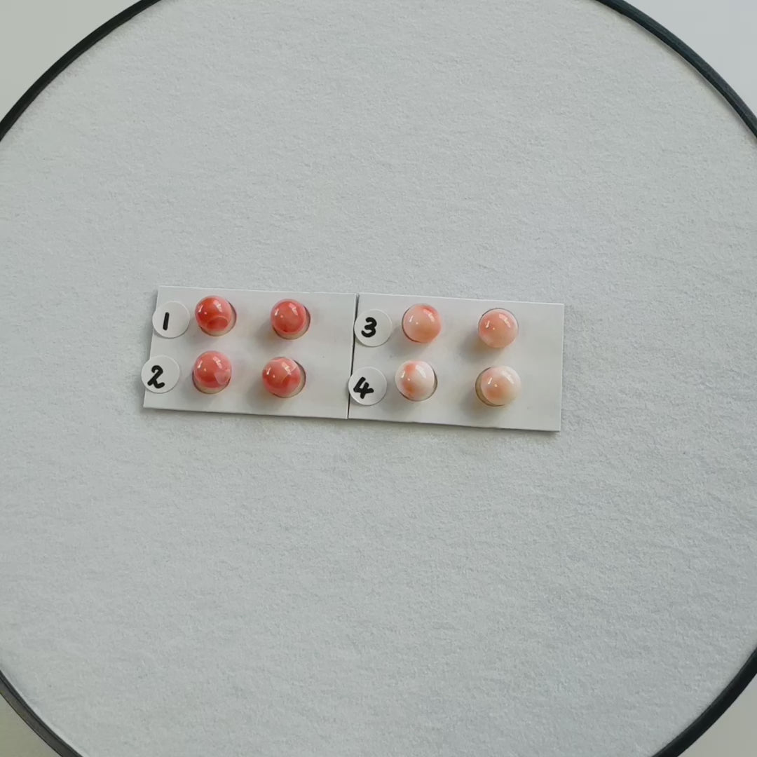 7.5-8mm Full Hole Natural deep sea coral round loose, for earring sets or pendant, price per pair