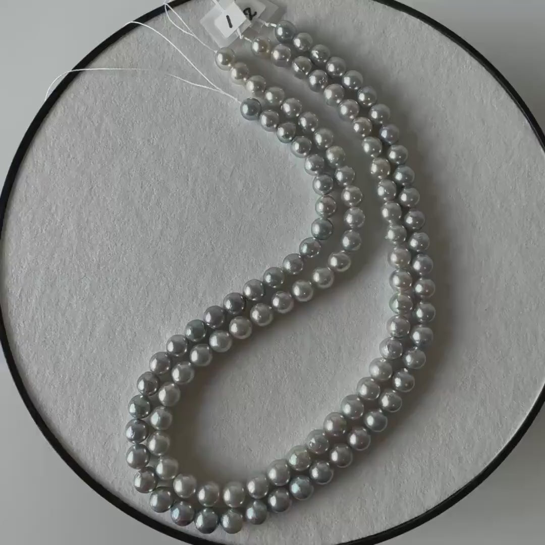7.5-8mm Japanese Akoya Pearl Beads, Natural Blue/Silver color pearl, Genuine Akoya Pearl, Full Strand 40cm , 15.7", Salt water pearl