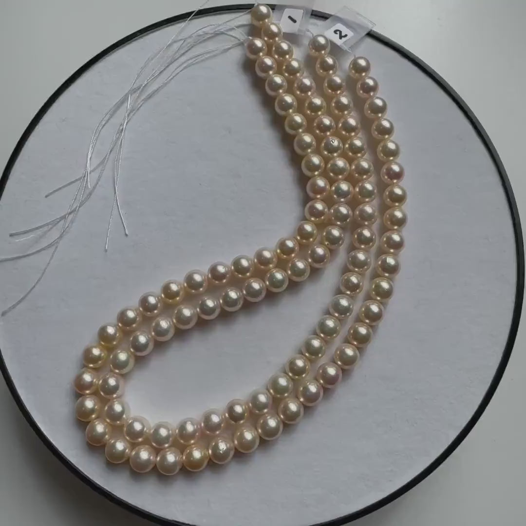 8.5-9mm Japanese Yellow Akoya Pearl Beads, Genuine Akoya Pearl, Full Strand, 40cm , 15.7", Salt water pearl